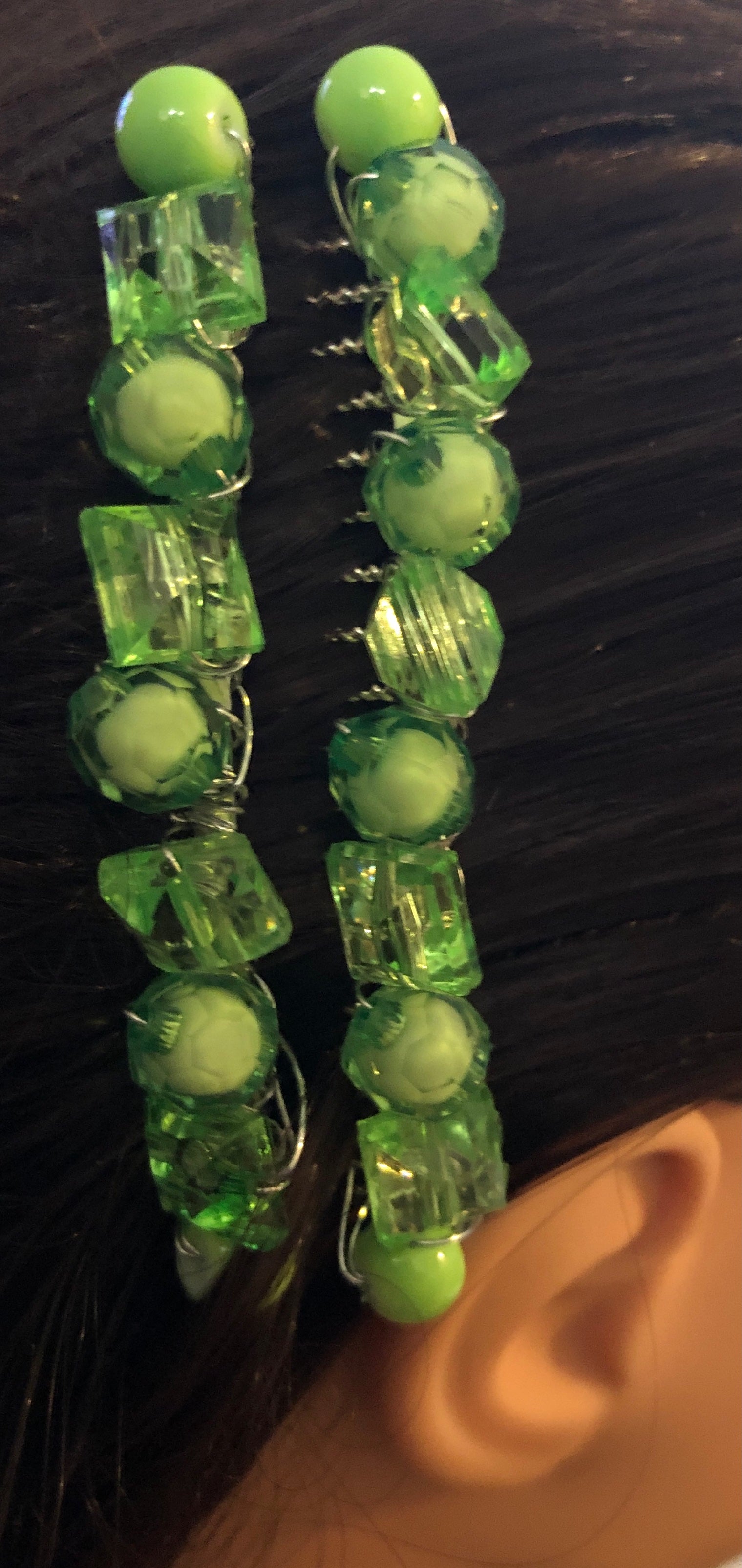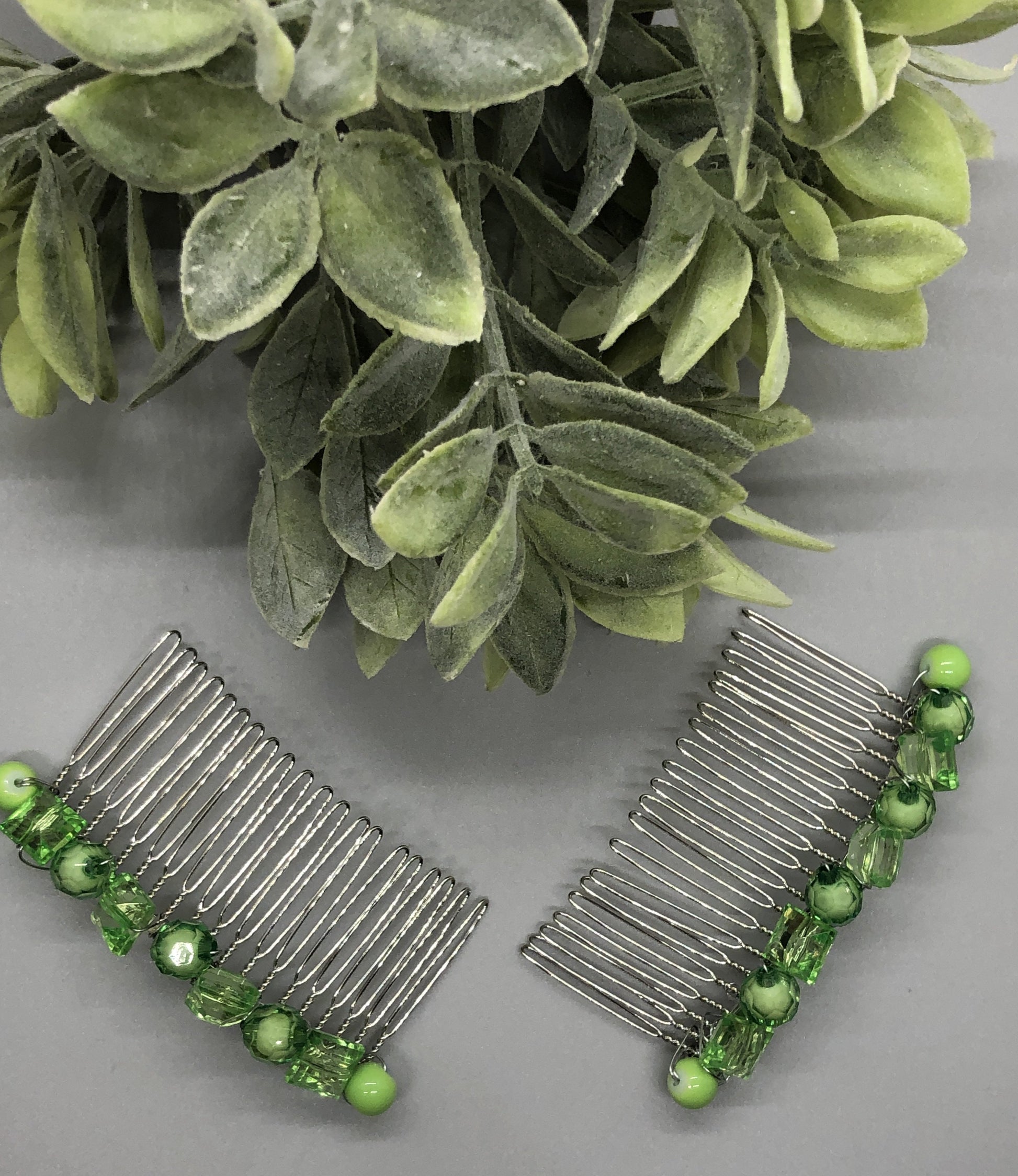 Lime Green Beaded Hair Comb 2pc Set Retro Bridal Wedding Party Prom