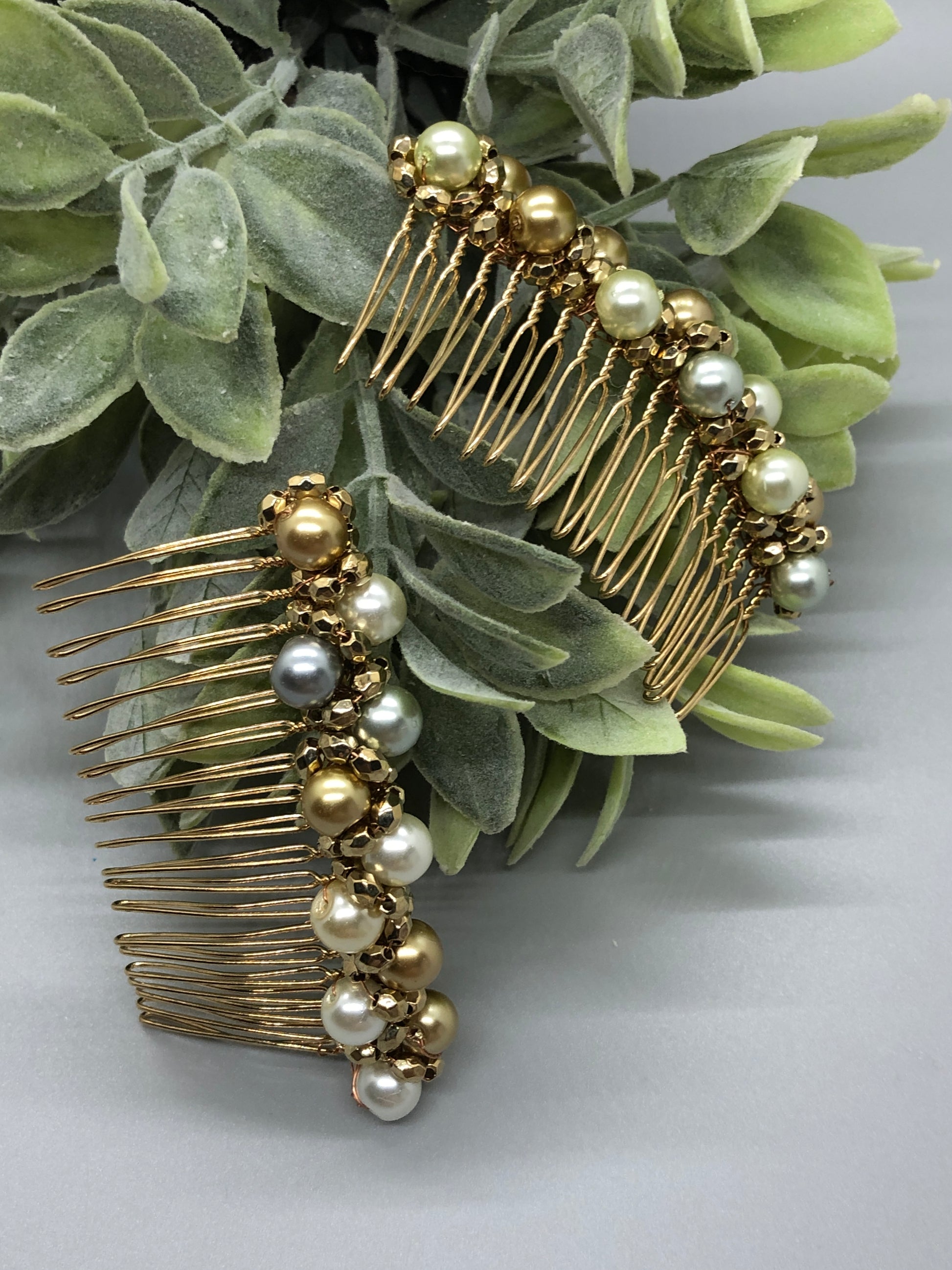 Metallic Earthy Tone Beaded Hair Comb Retro Bridal Wedding Party Prom