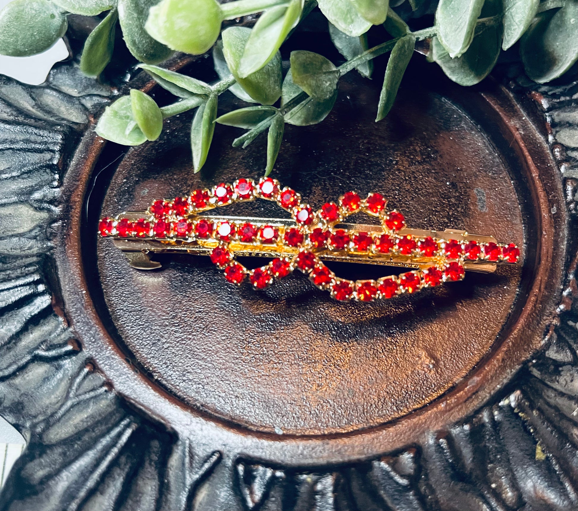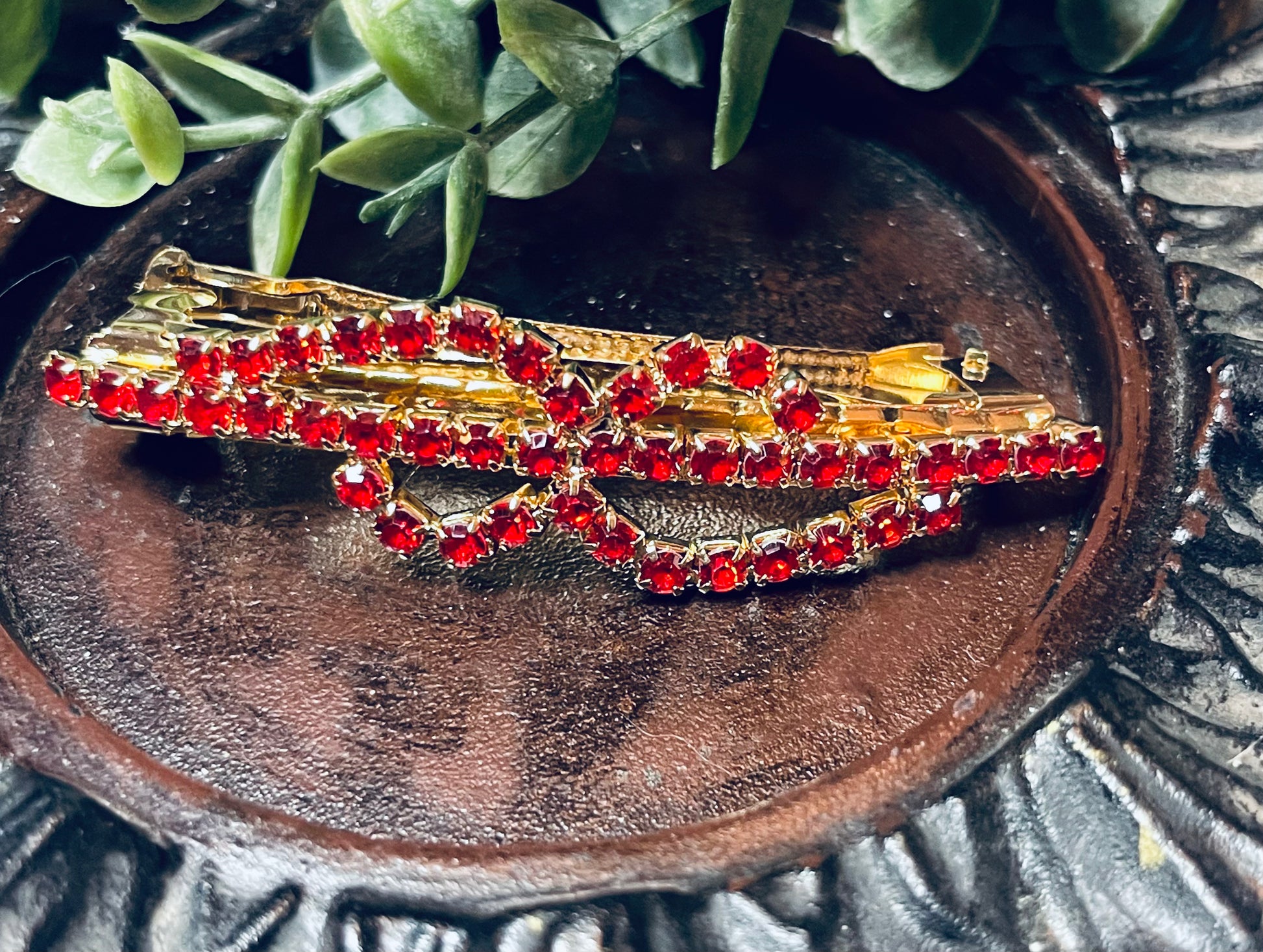 Ruby Red Crystal rhinestone barrette approximately 3.0” gold tone formal hair accessories gift wedding bridesmaid