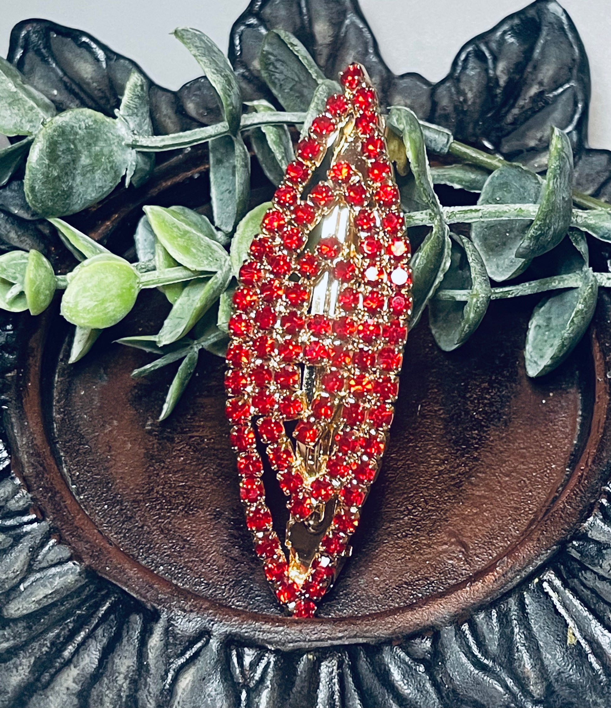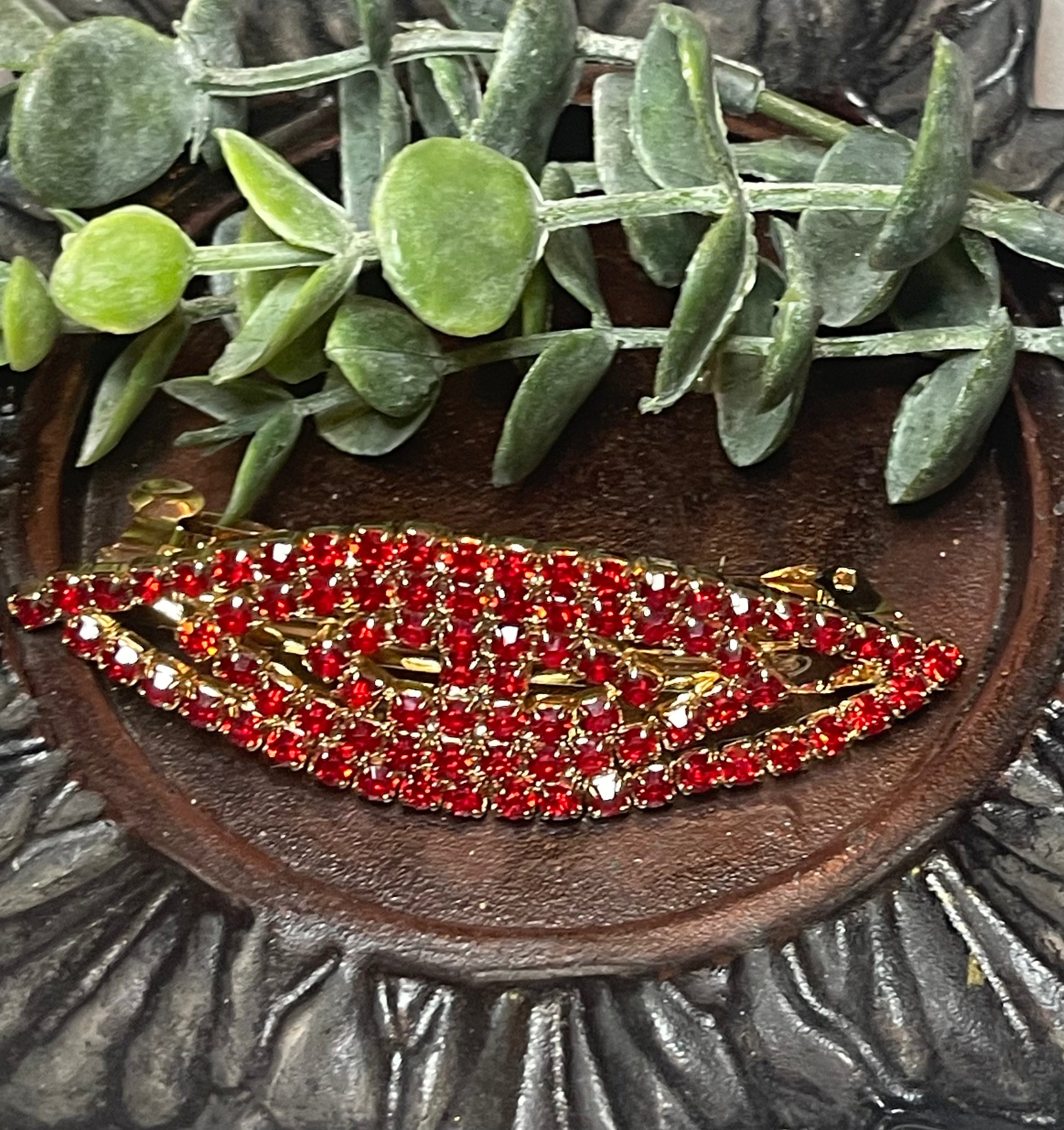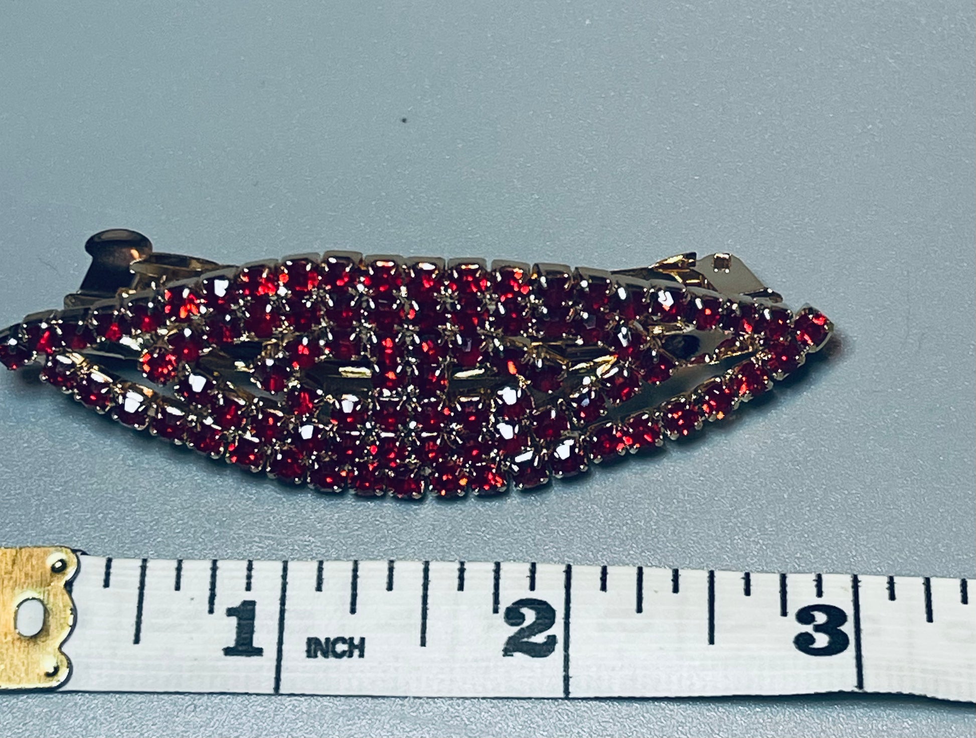 Ruby Red Crystal rhinestone barrette approximately 3.0” gold tone formal hair accessories gift wedding bridesmaid Prom birthday gifts
