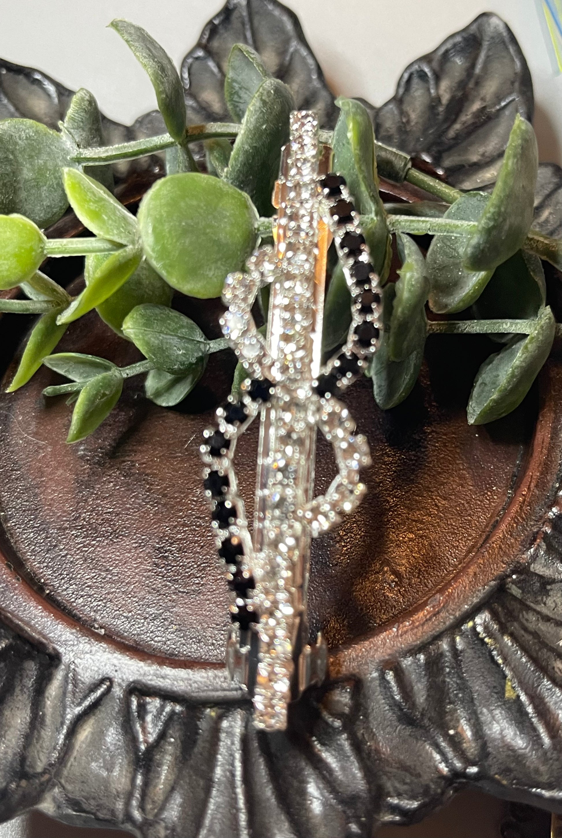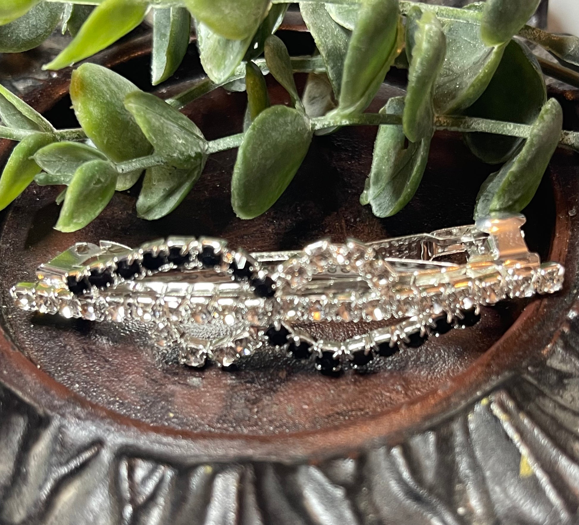 Black clear Crystal rhinestone barrette approximately 3.0” silver tone formal hair accessories gift wedding bridesmaid