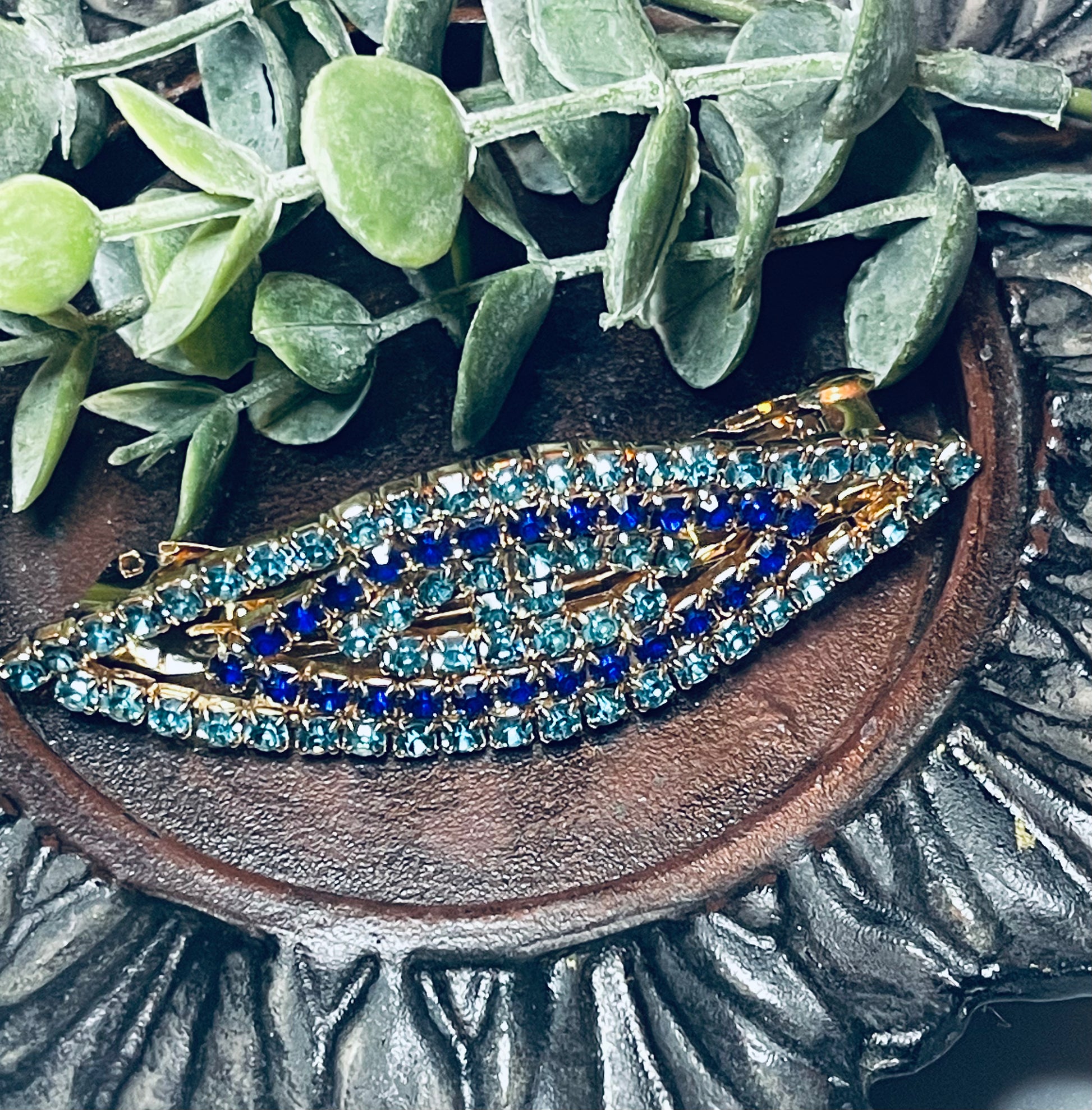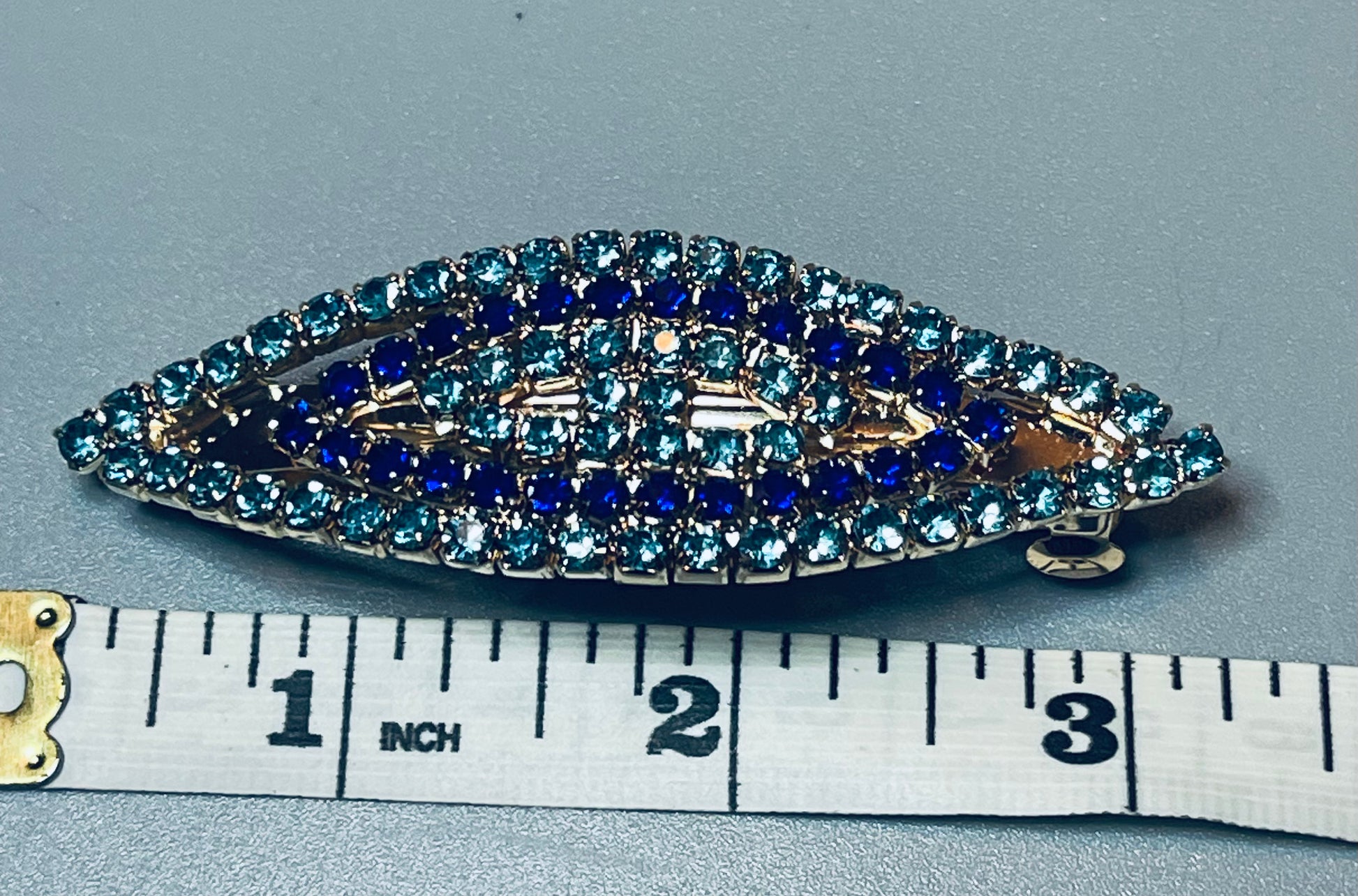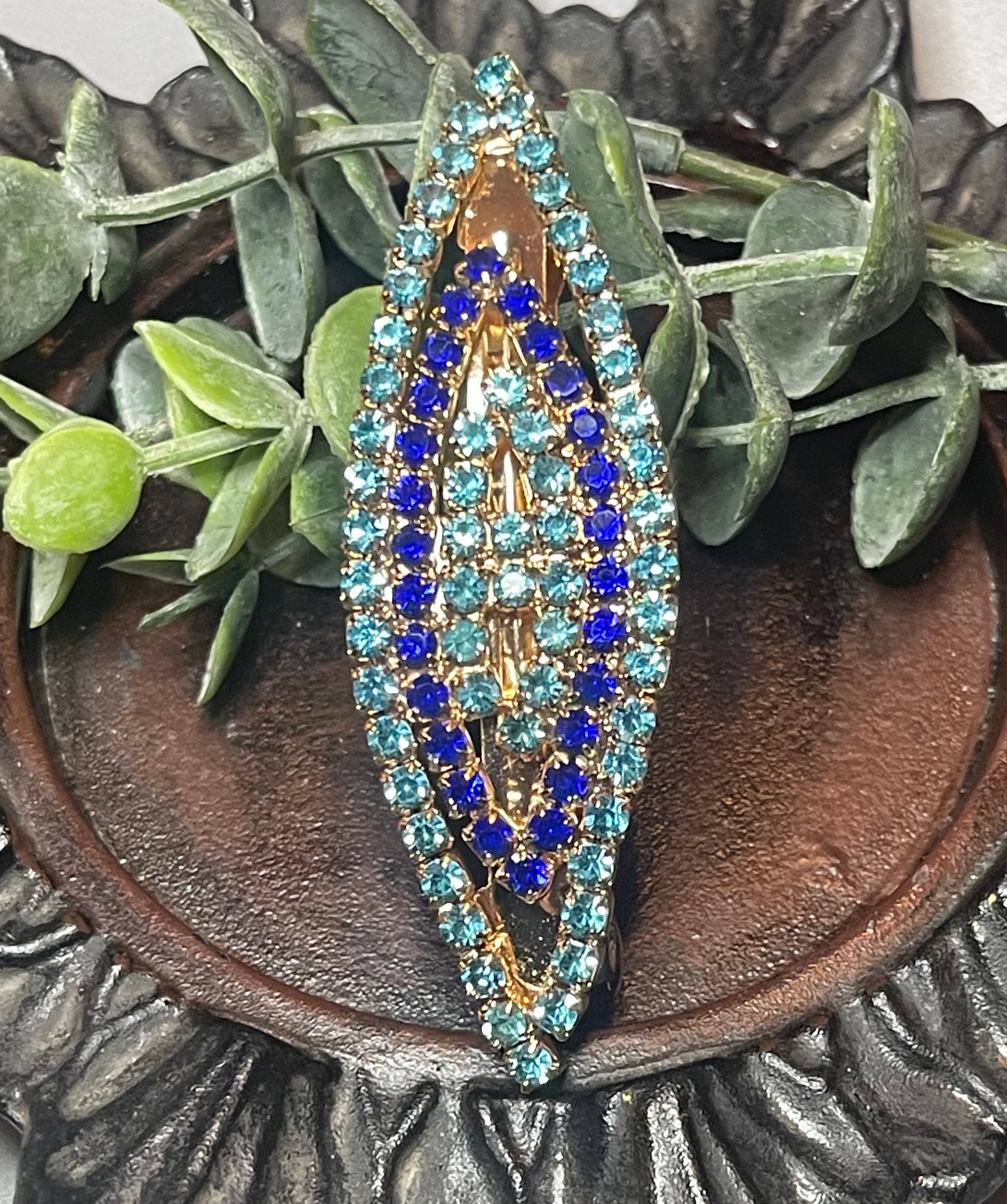 Teal blue Crystal rhinestone barrette approximately 3.0” gold tone formal hair accessories gift wedding bridesmaid Prom birthday gifts