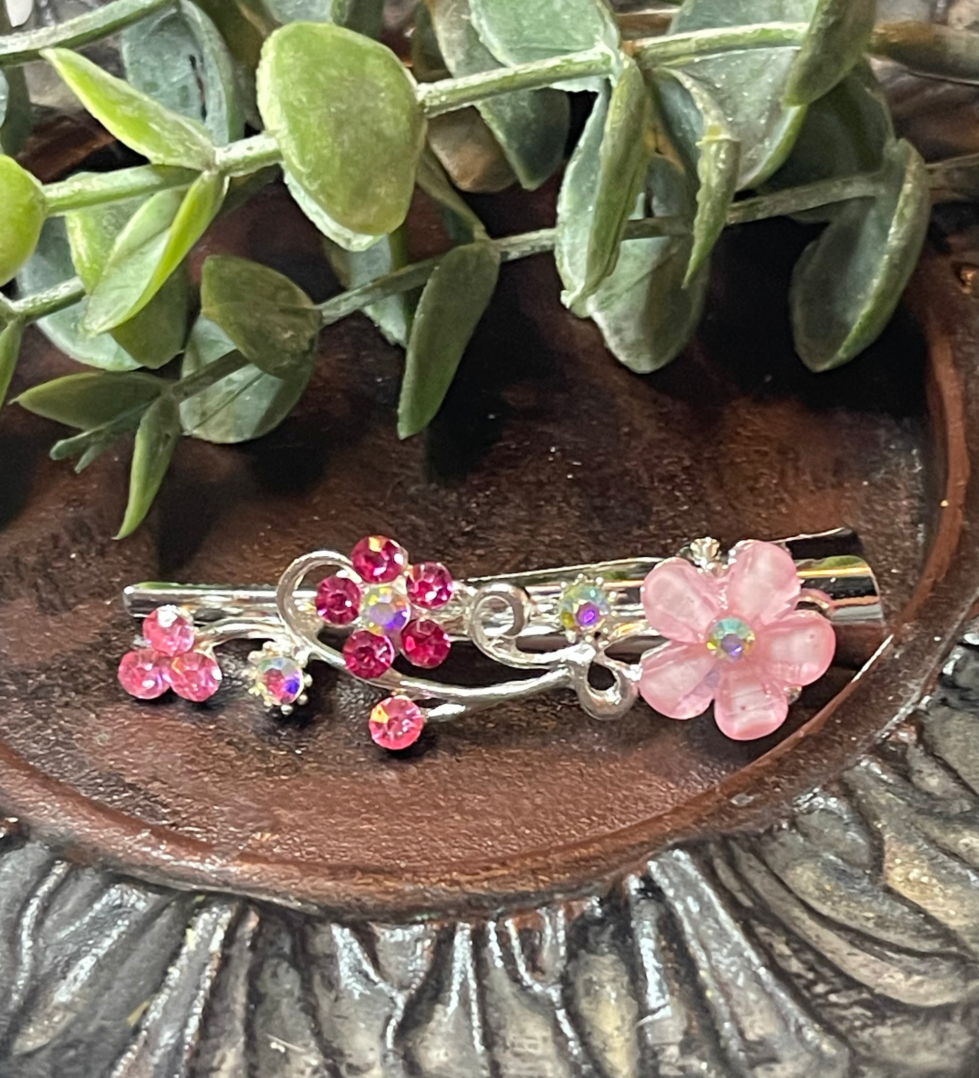 Flower alligator salon clip 2.5’’ gold toned with pink crystal rhinestones hair accessory