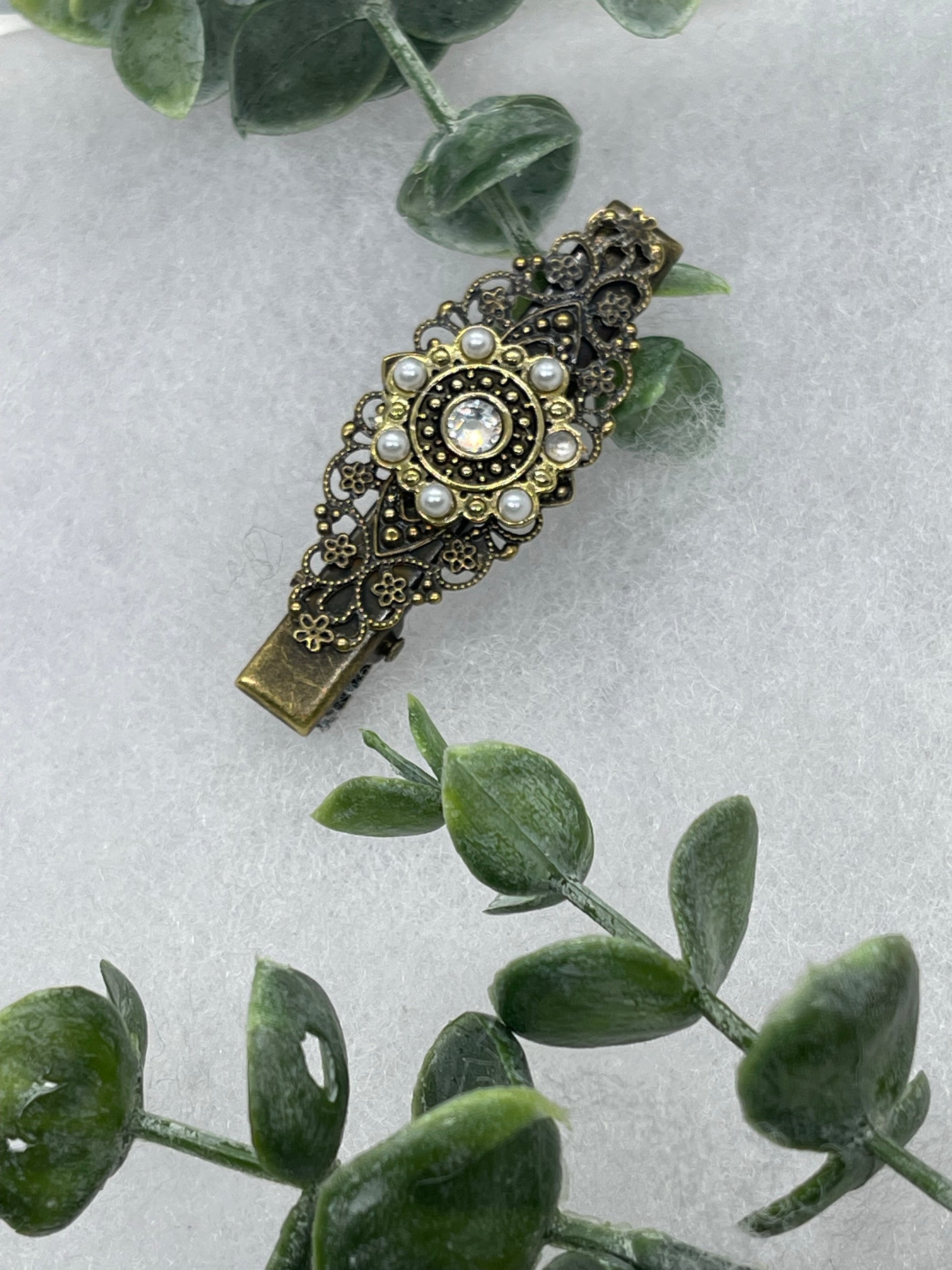 Cream crystal vintage antique style leaf hair alligator clip on a 2.5”Handmade hair accessory bridal wedding Retro Bridal Party Prom Birthday gifts
