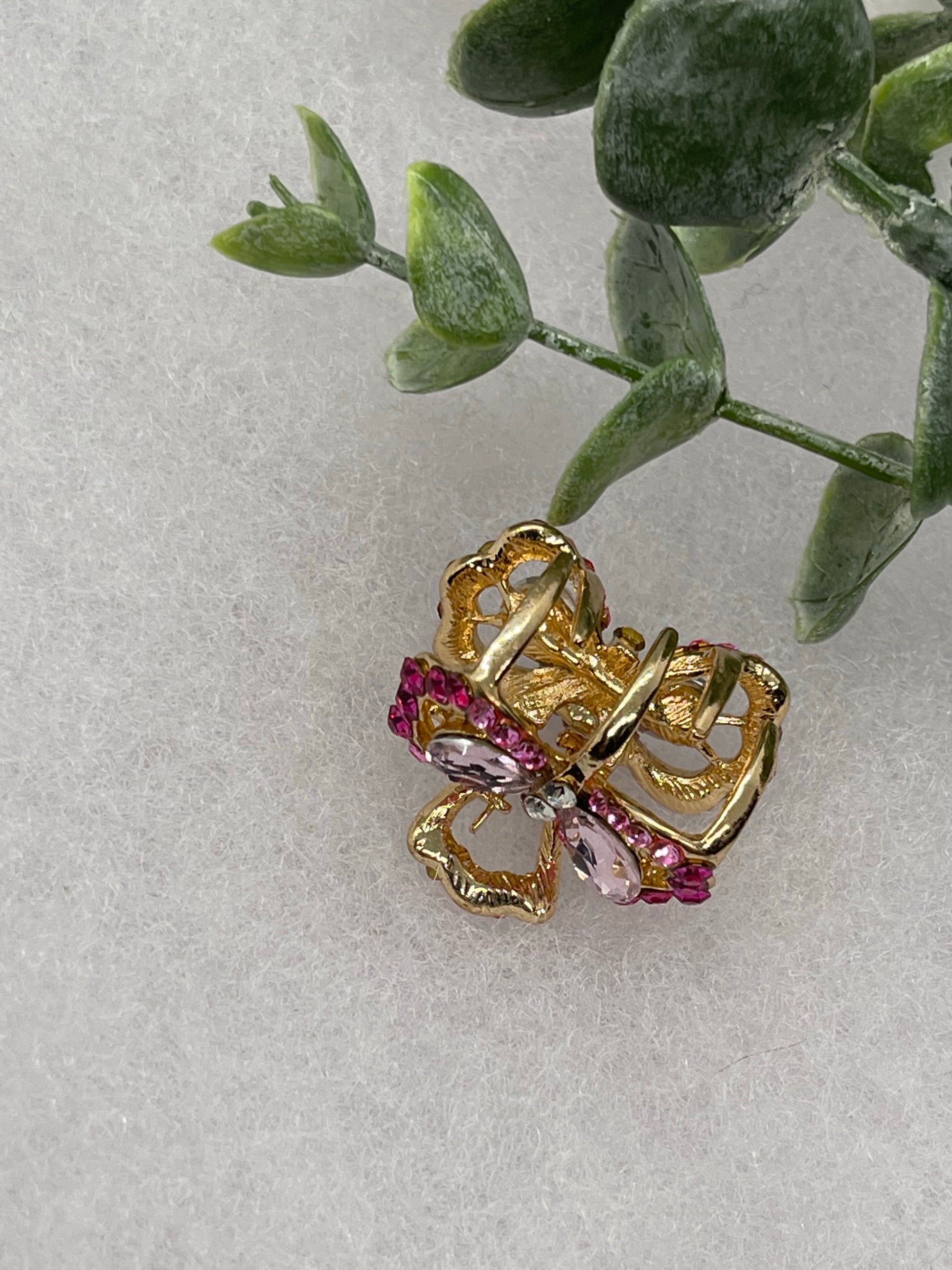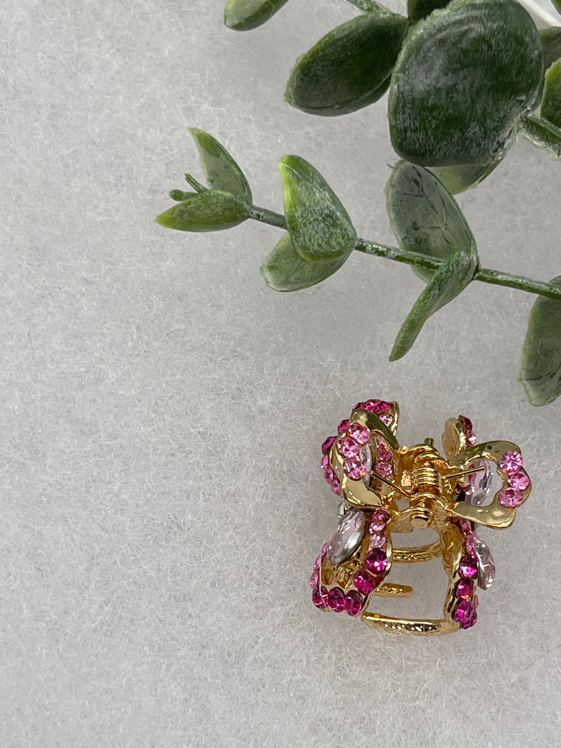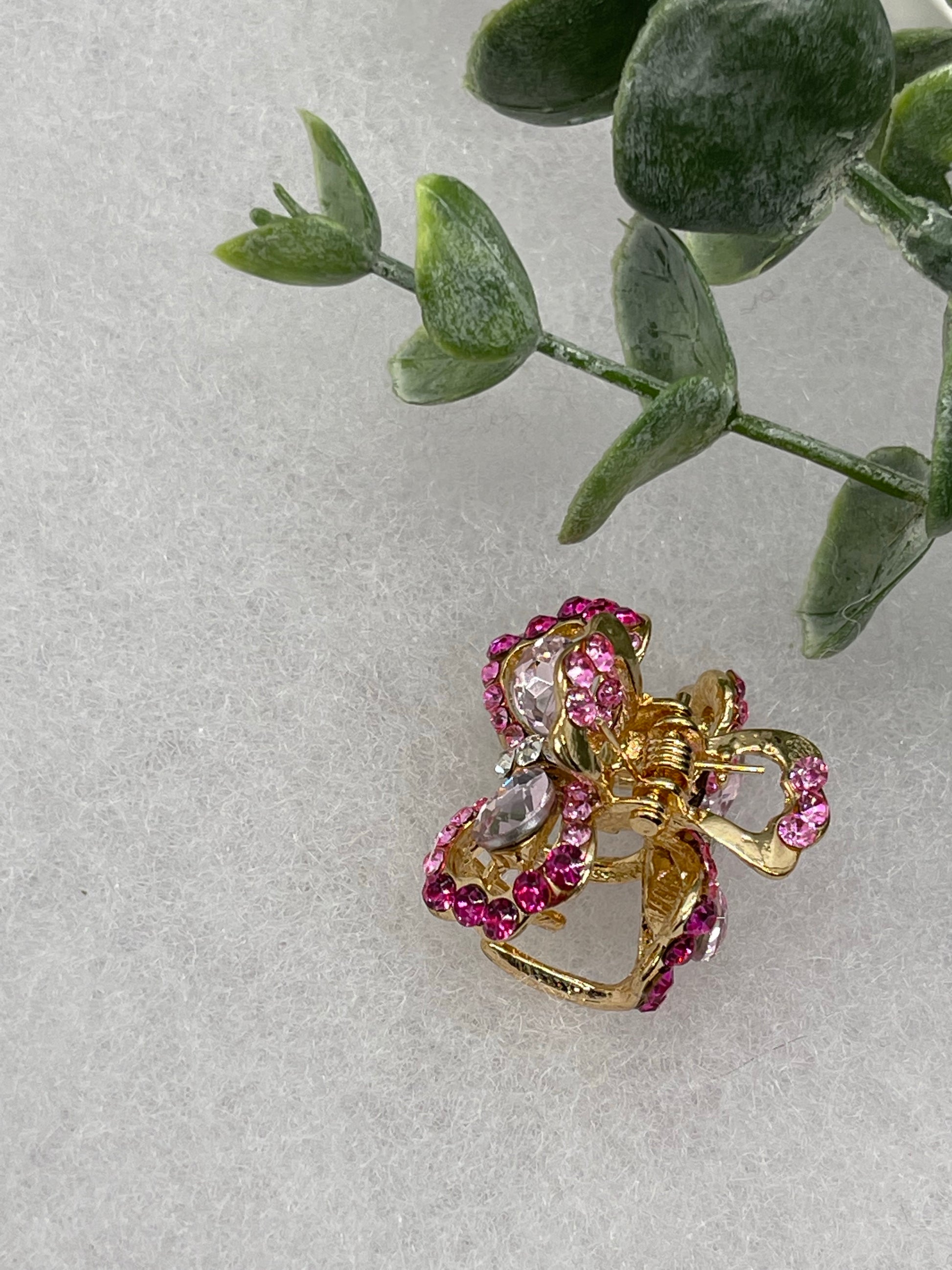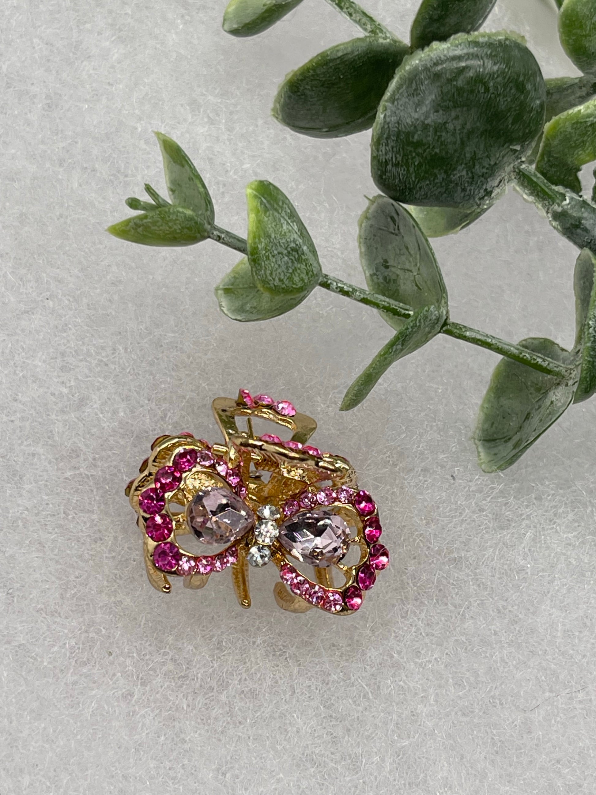 Pink crystal rhinestone approximately 1.0” gold tone hair claw wedding bridal shower engagement formal princess accessory accessories