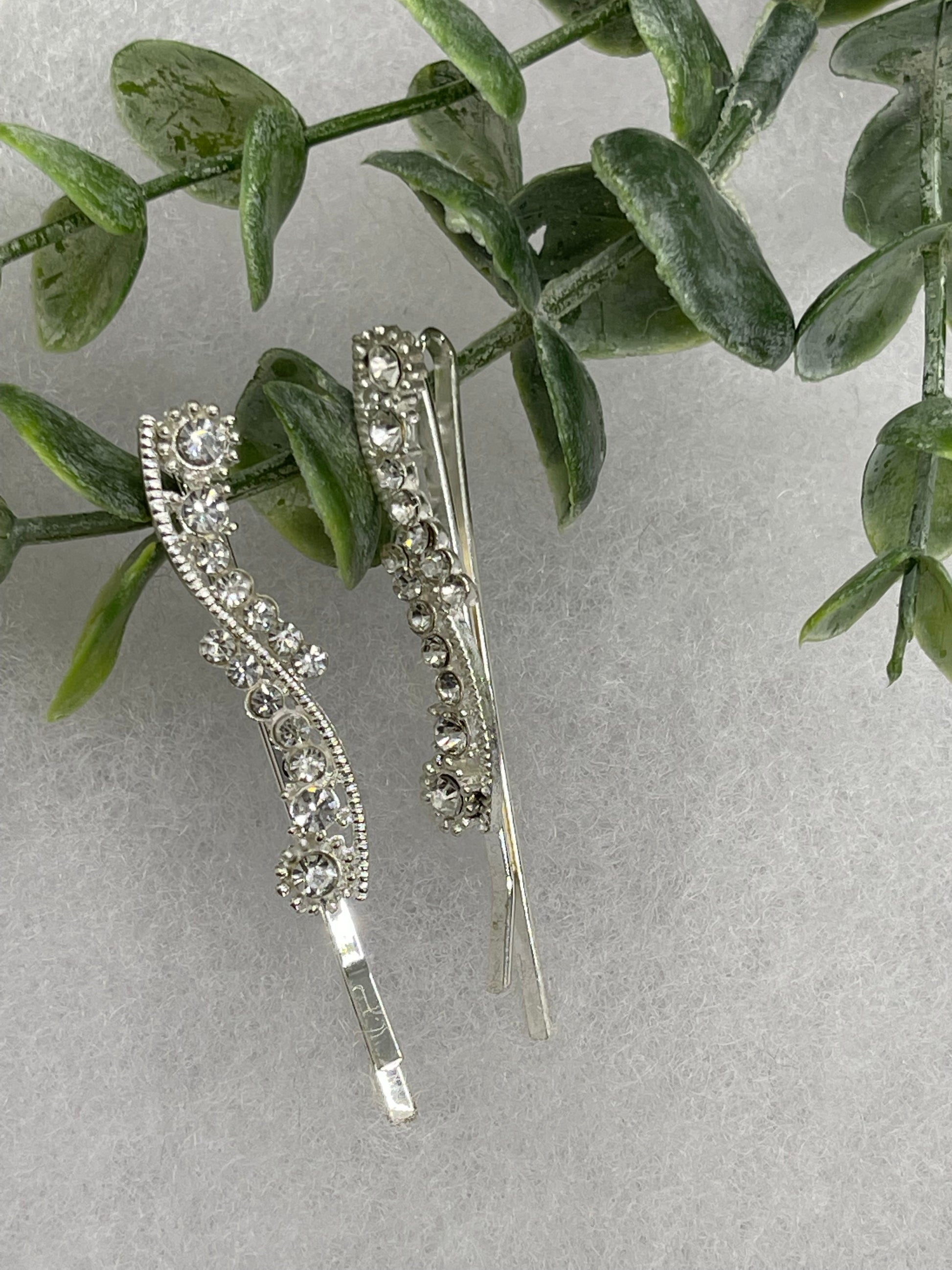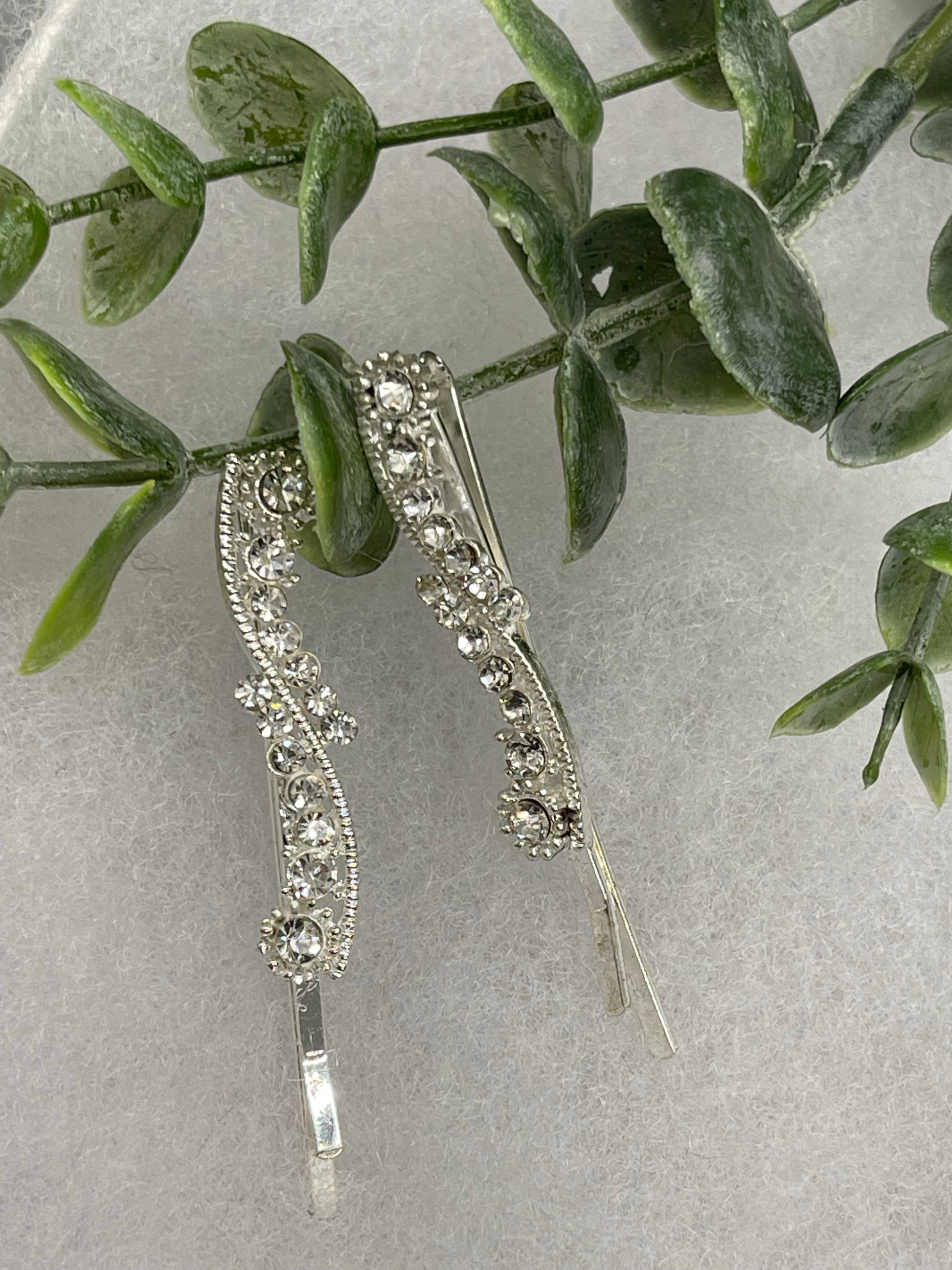 Clear crystal rhinestone approximately 2.0” silver tone hair pins 2 pc set wedding bridal shower engagement formal princess accessory accessories