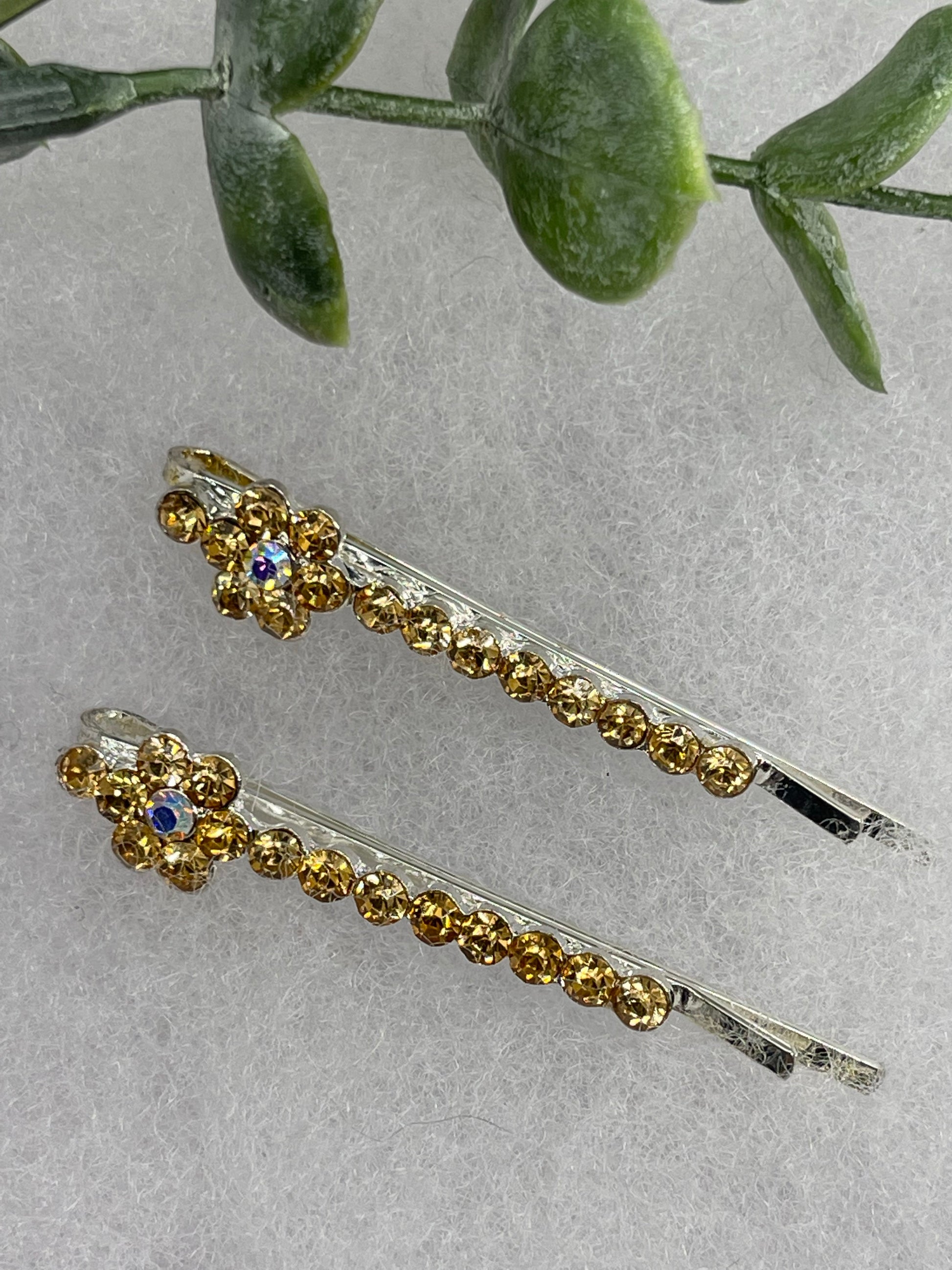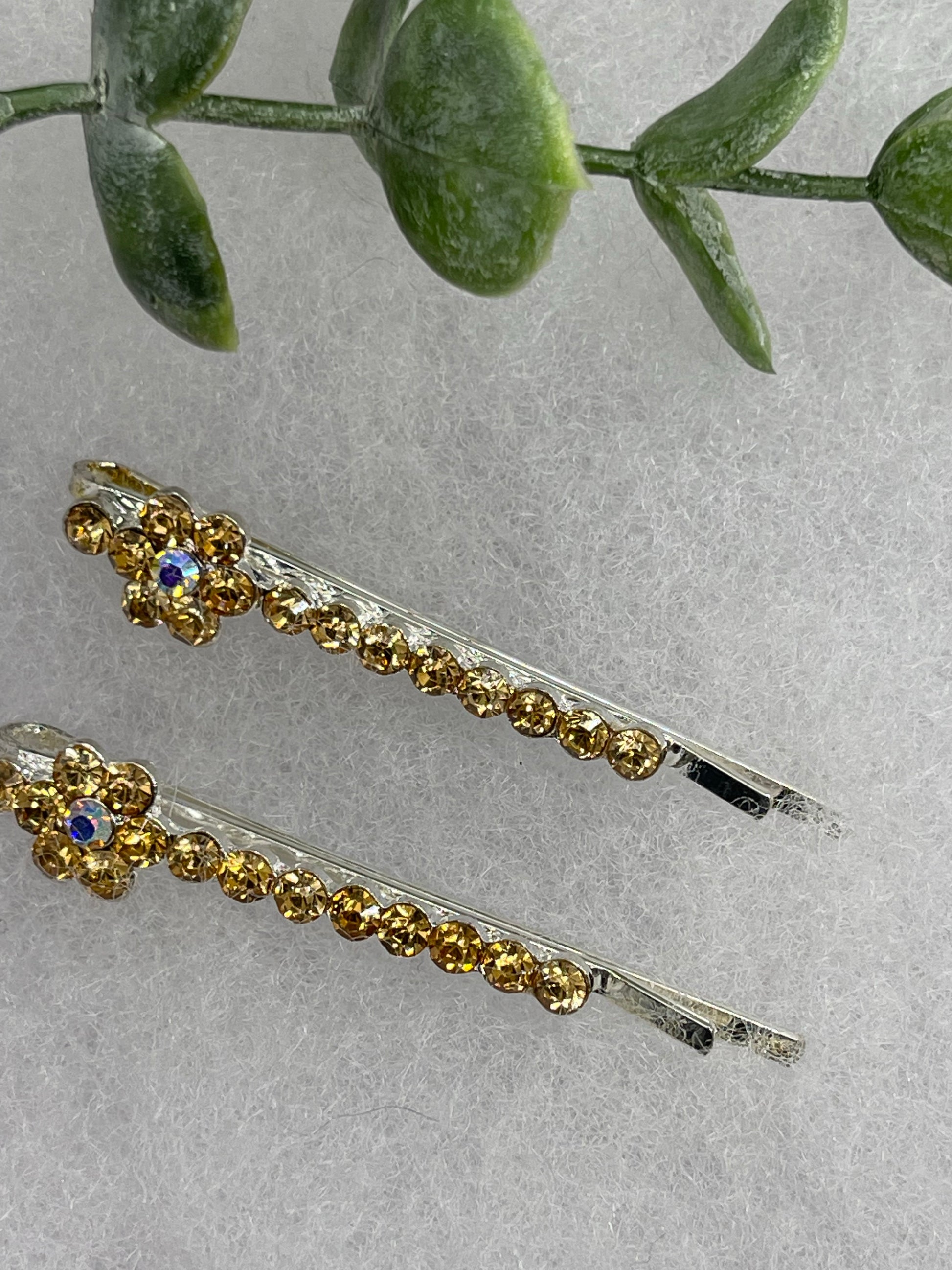 Gold crystal rhinestone approximately 2.0” silver tone hair pins 2 pc set wedding bridal shower engagement formal princess accessory accessories