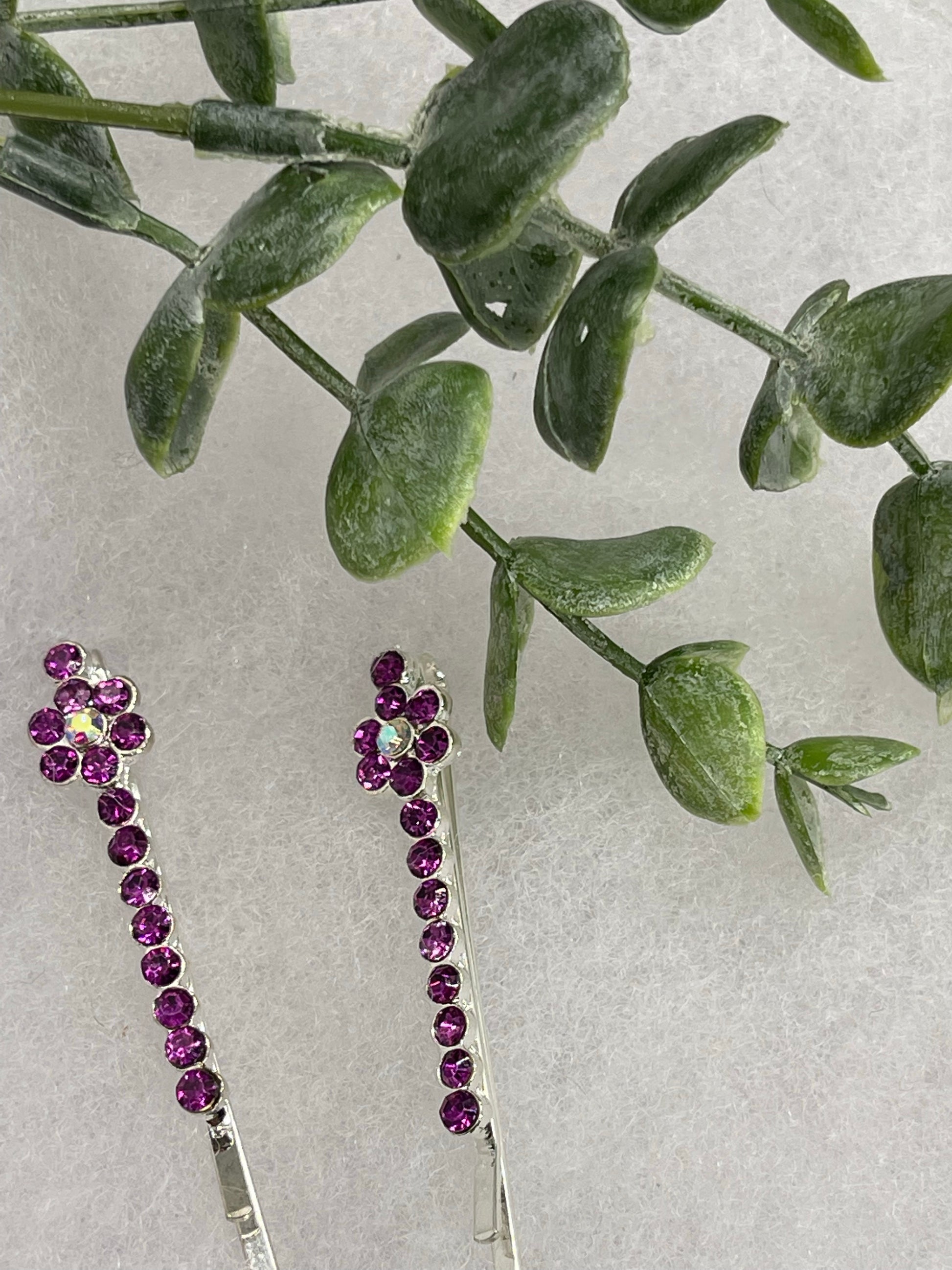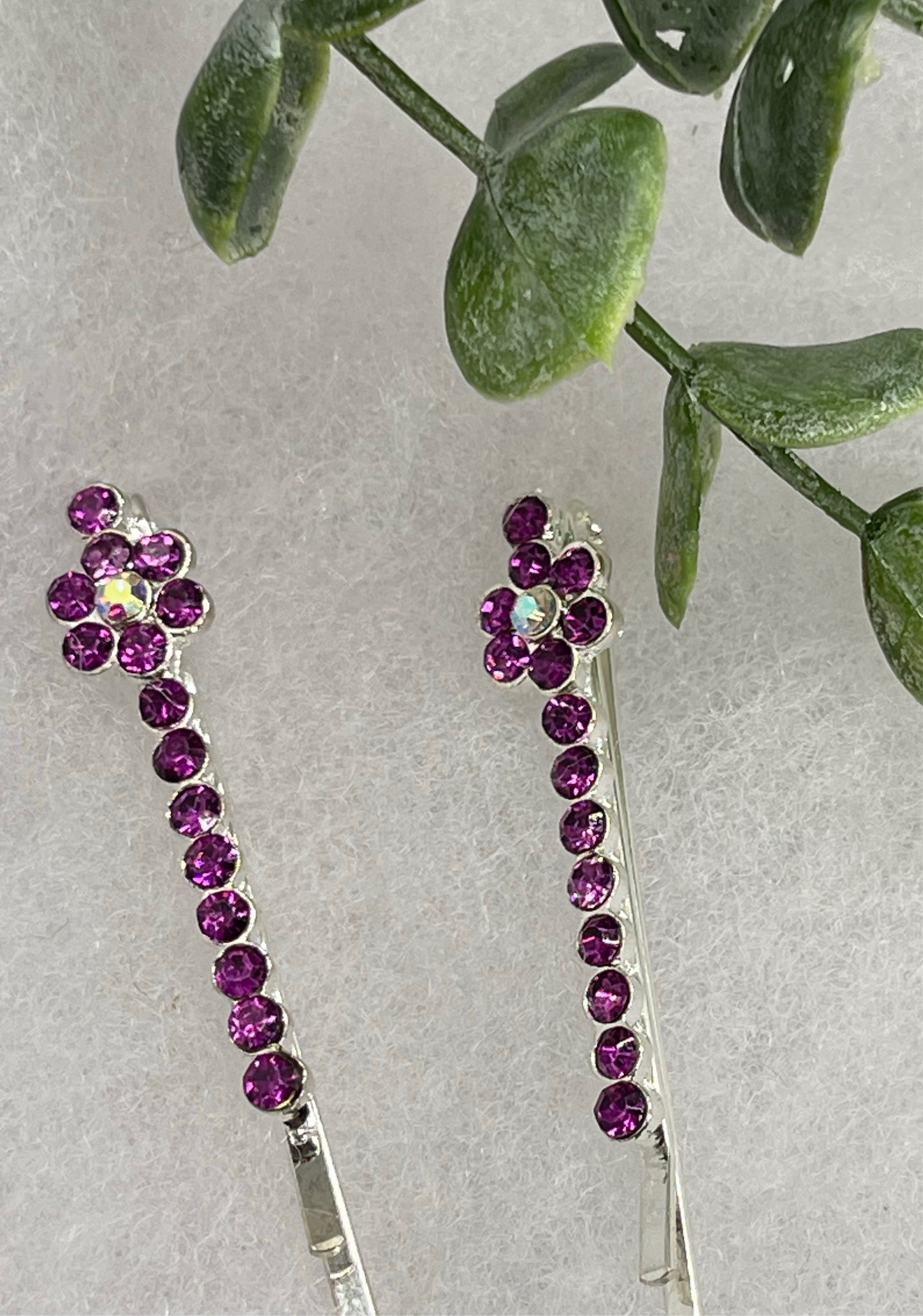 Purple crystal rhinestone approximately 2.0” silver tone hair pins 2 pc set wedding bridal shower engagement formal princess accessory accessories
