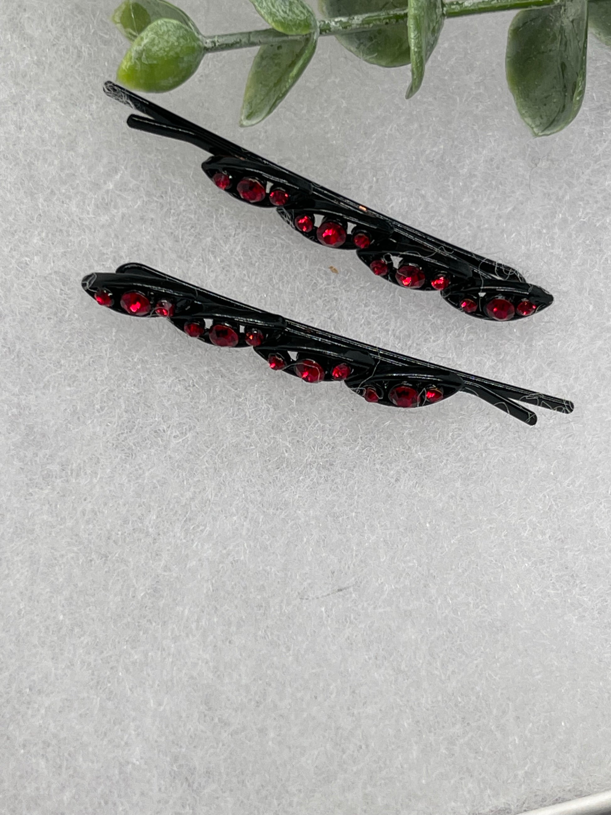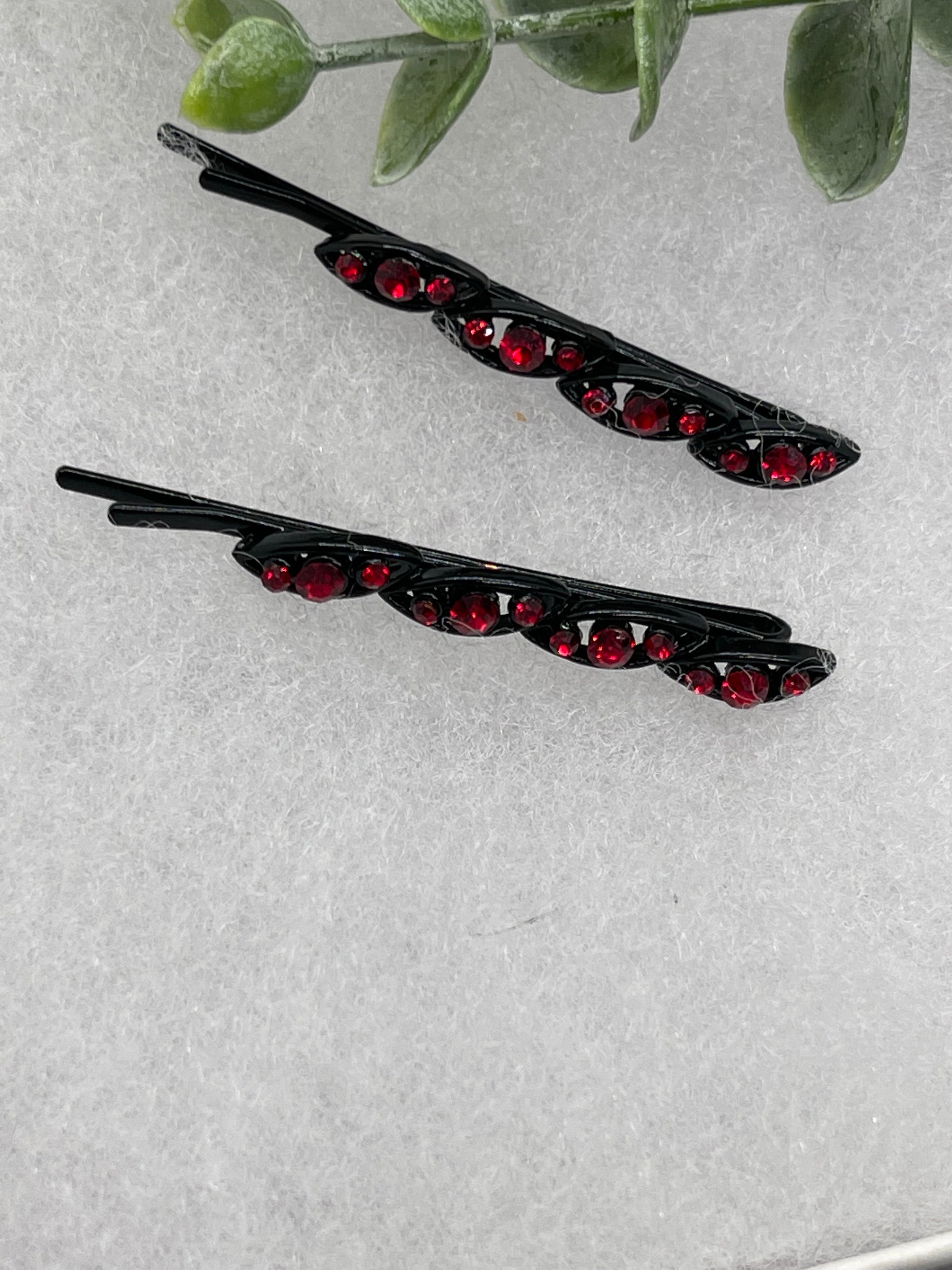 Ruby Red crystal rhinestone approximately 2.5” black tone hair pins 2 pc set wedding bridal shower engagement formal princess accessory accessories