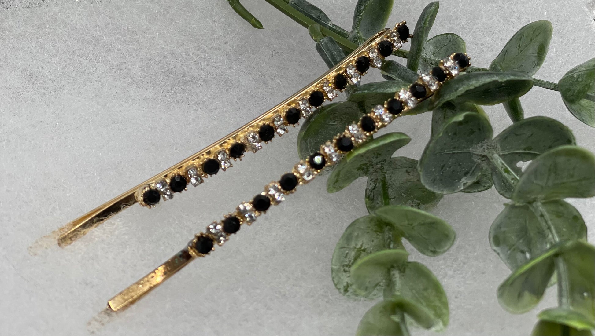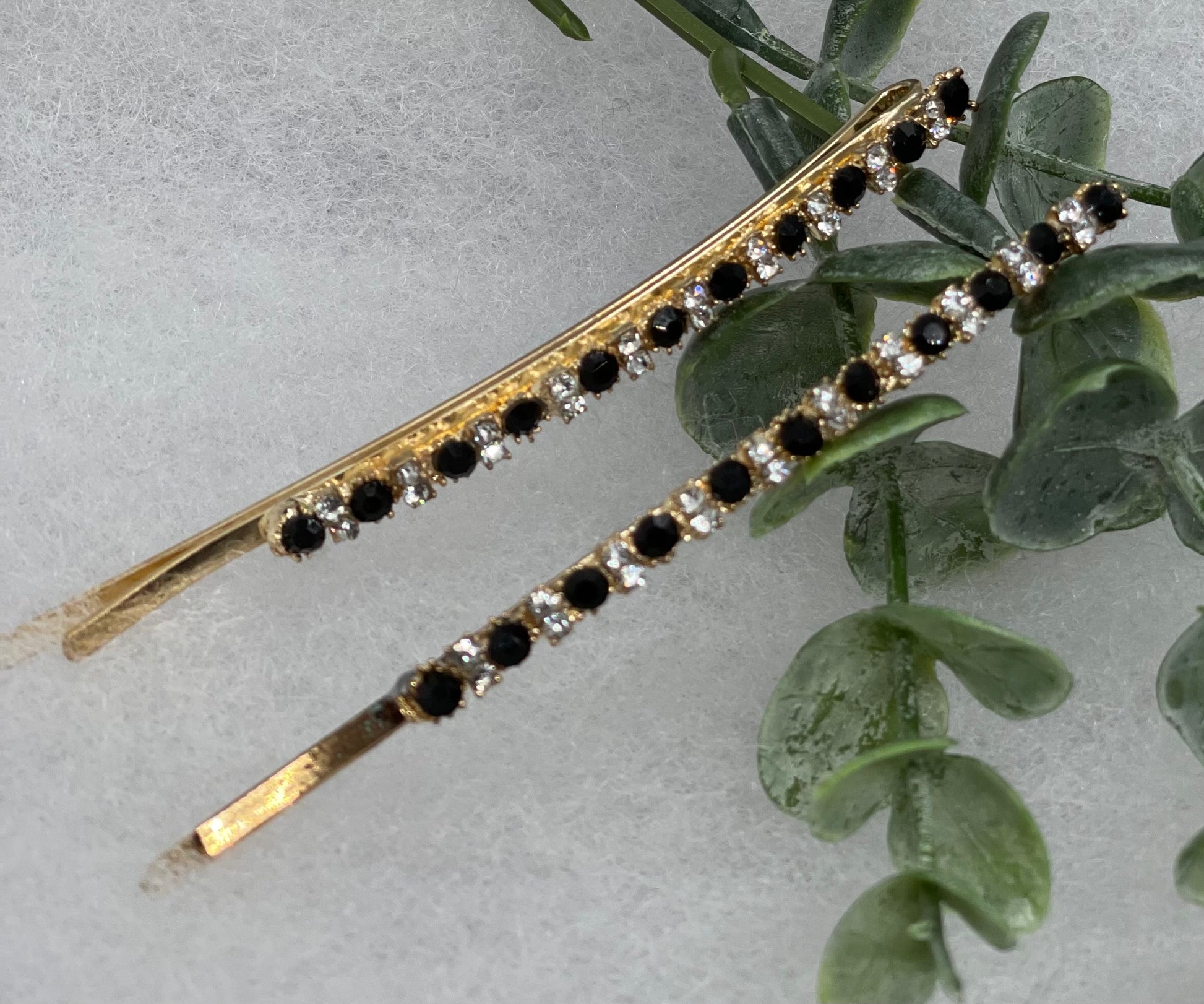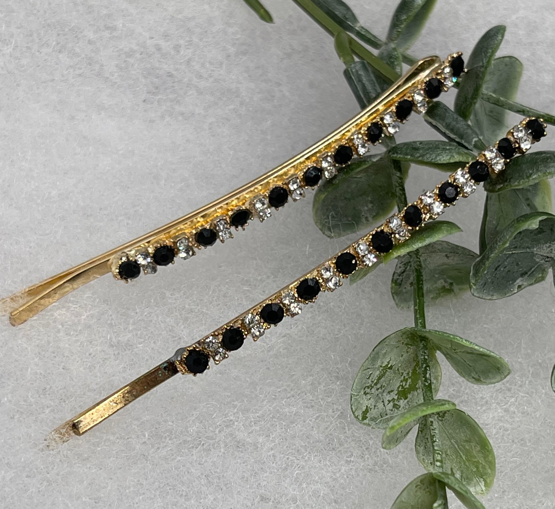 Black crystal rhinestone approximately 3.5” large gold tone hair pins 2 pc set wedding bridal shower engagement formal princess accessory accessories