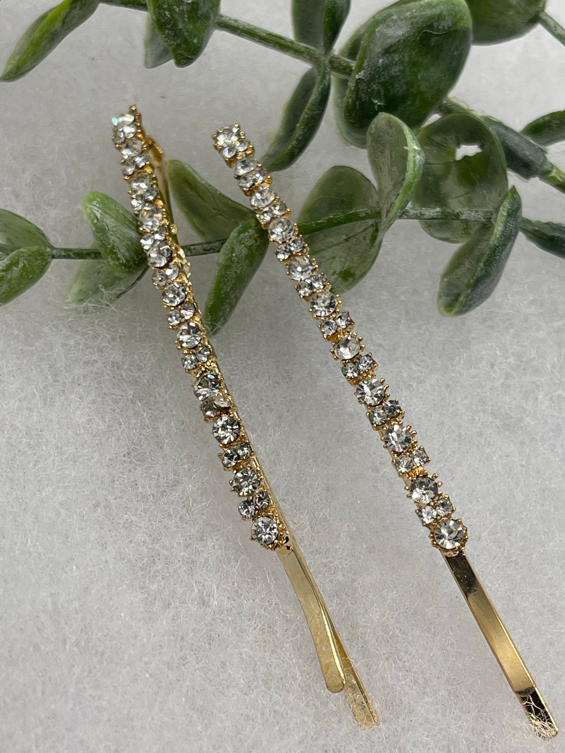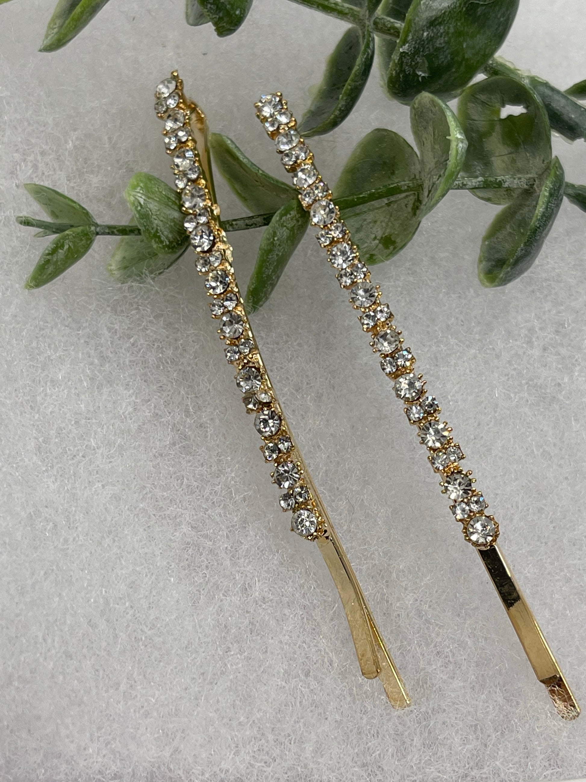 Clear Crystal crystal rhinestone approximately 3.5” large gold tone hair pins 2 pc set wedding bridal shower