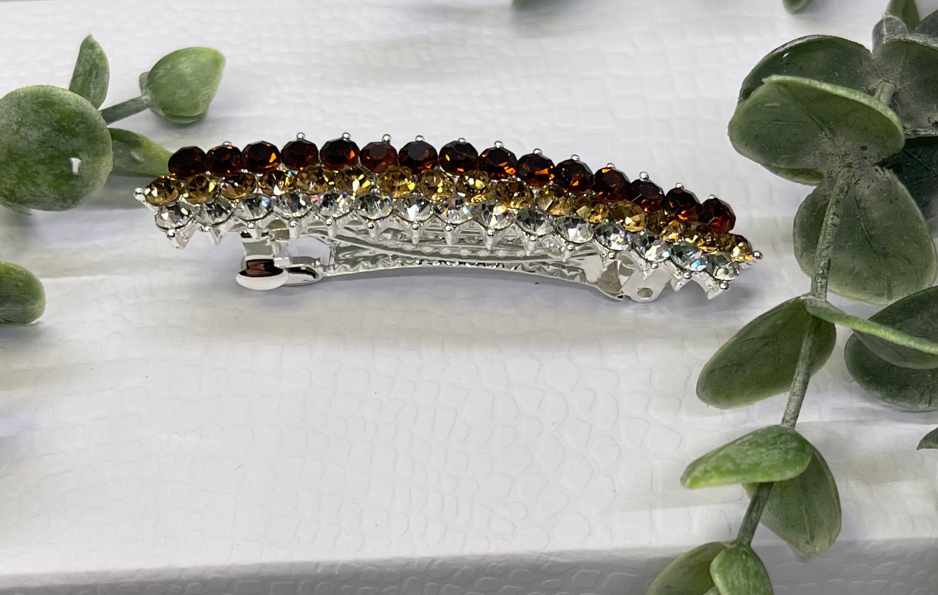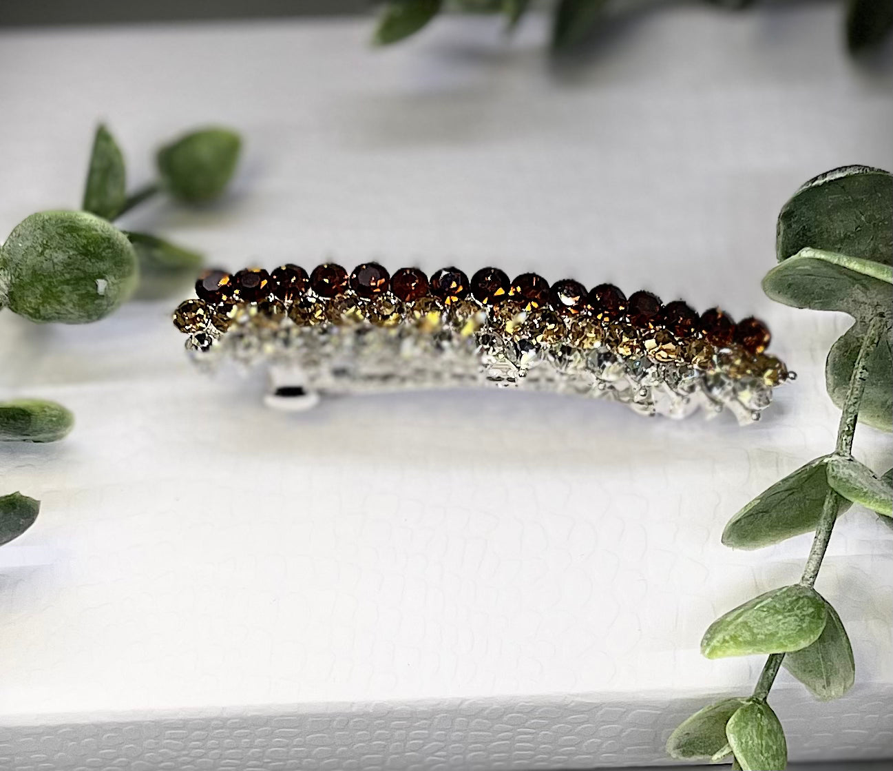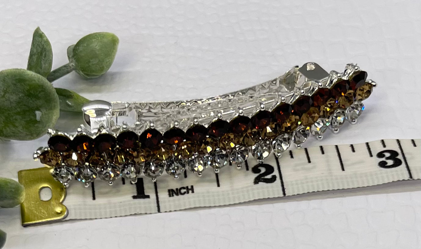 Brown Crystal rhinestone barrette approximately 3.0” sinverted tone formal hair accessories gift wedding