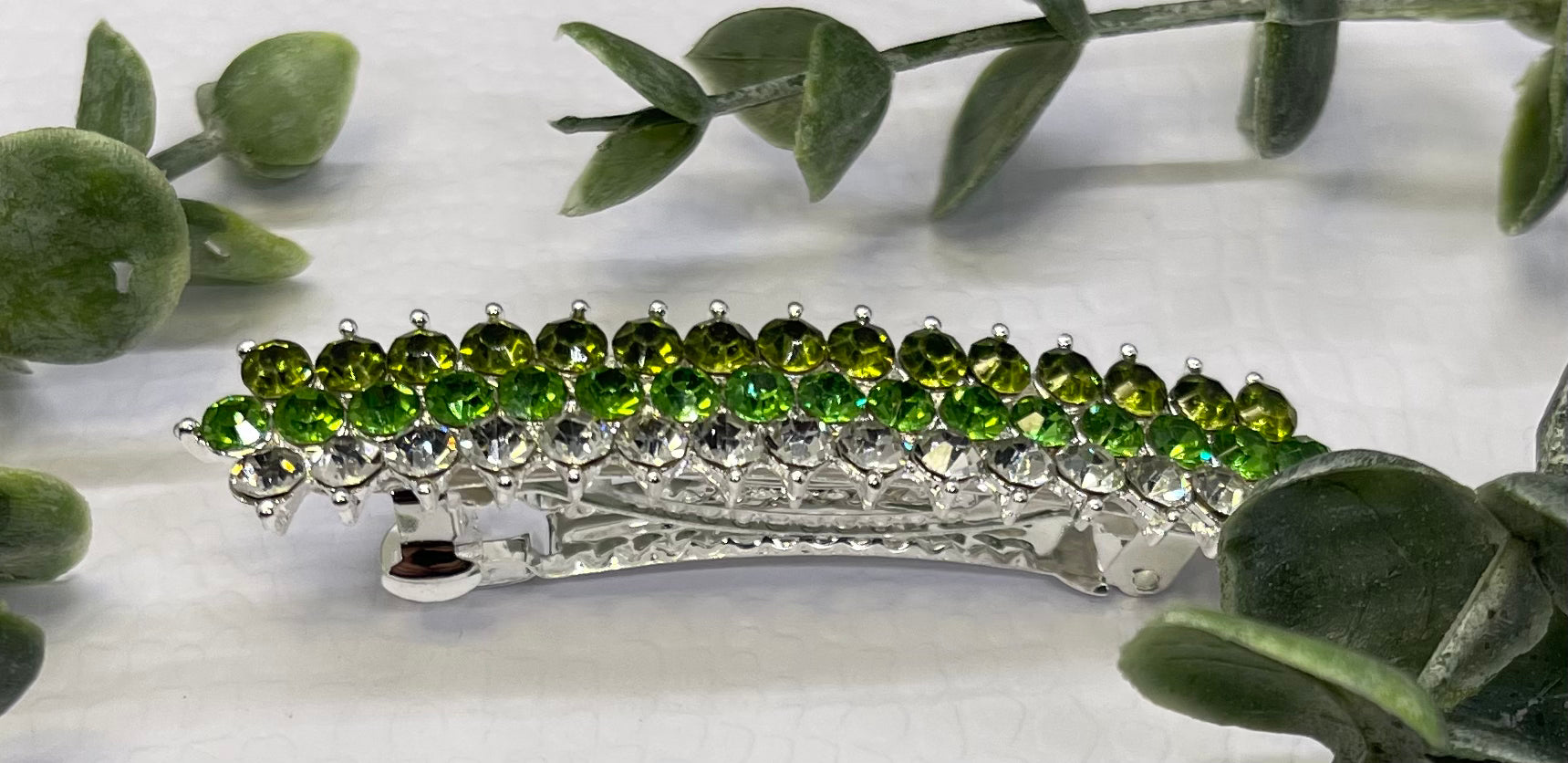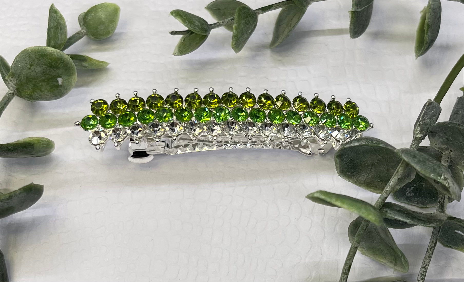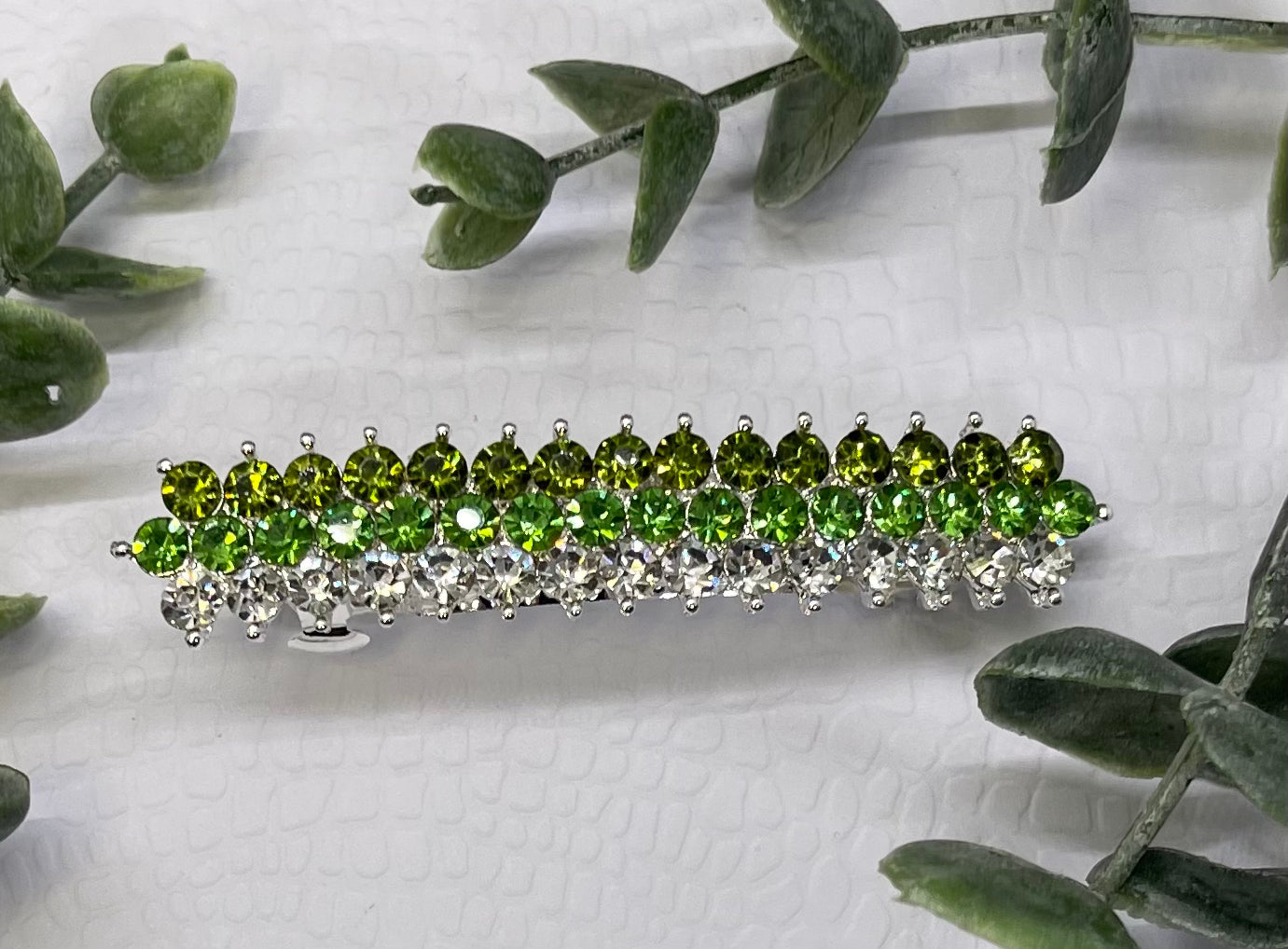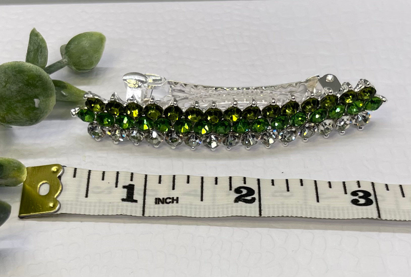 Green Crystal rhinestone barrette approximately 3.0” silver tone formal hair accessories gift wedding bridesmaid