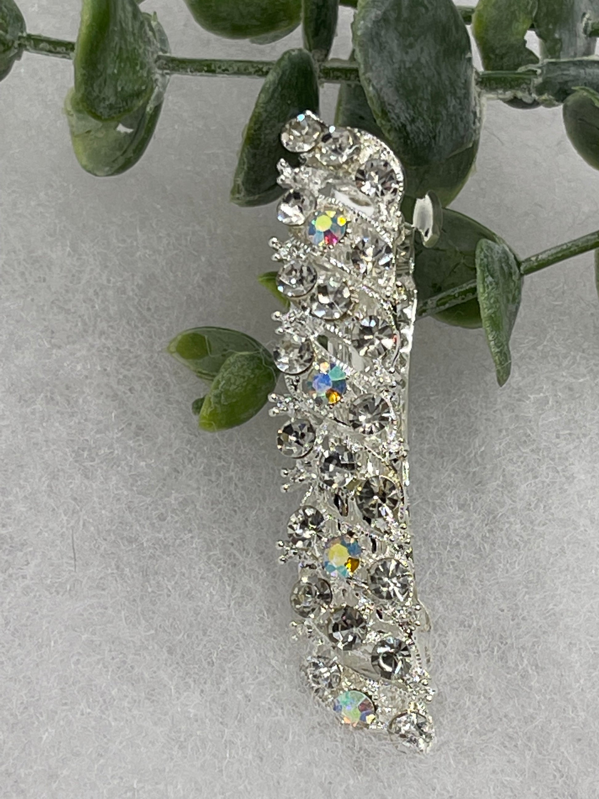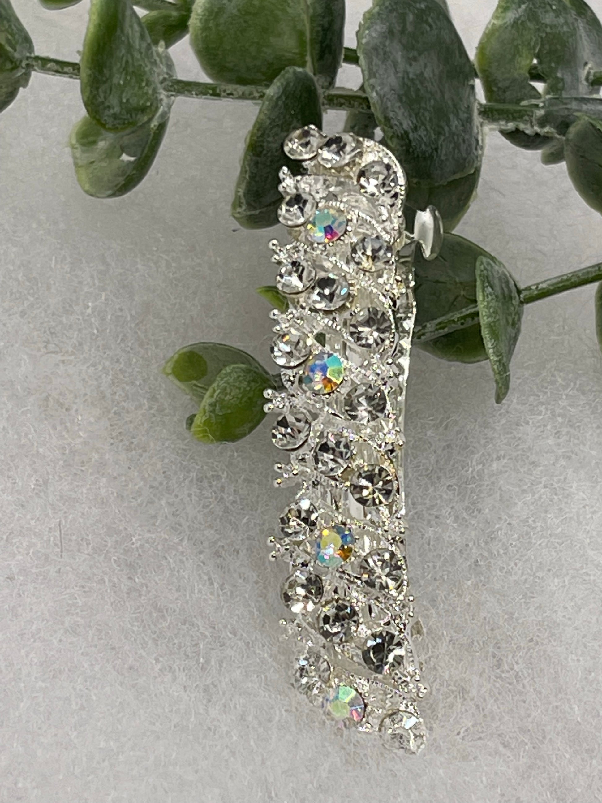 Clear crystal Iridescent Crystal rhinestone barrette approximately 3.0” wedding bridal shower engagement formal princess accessory at