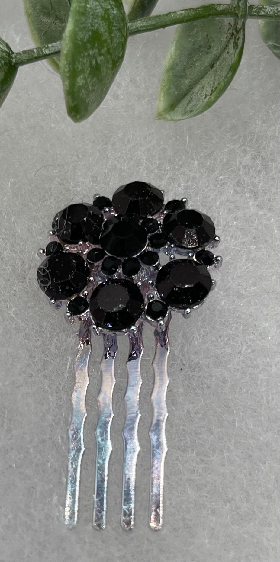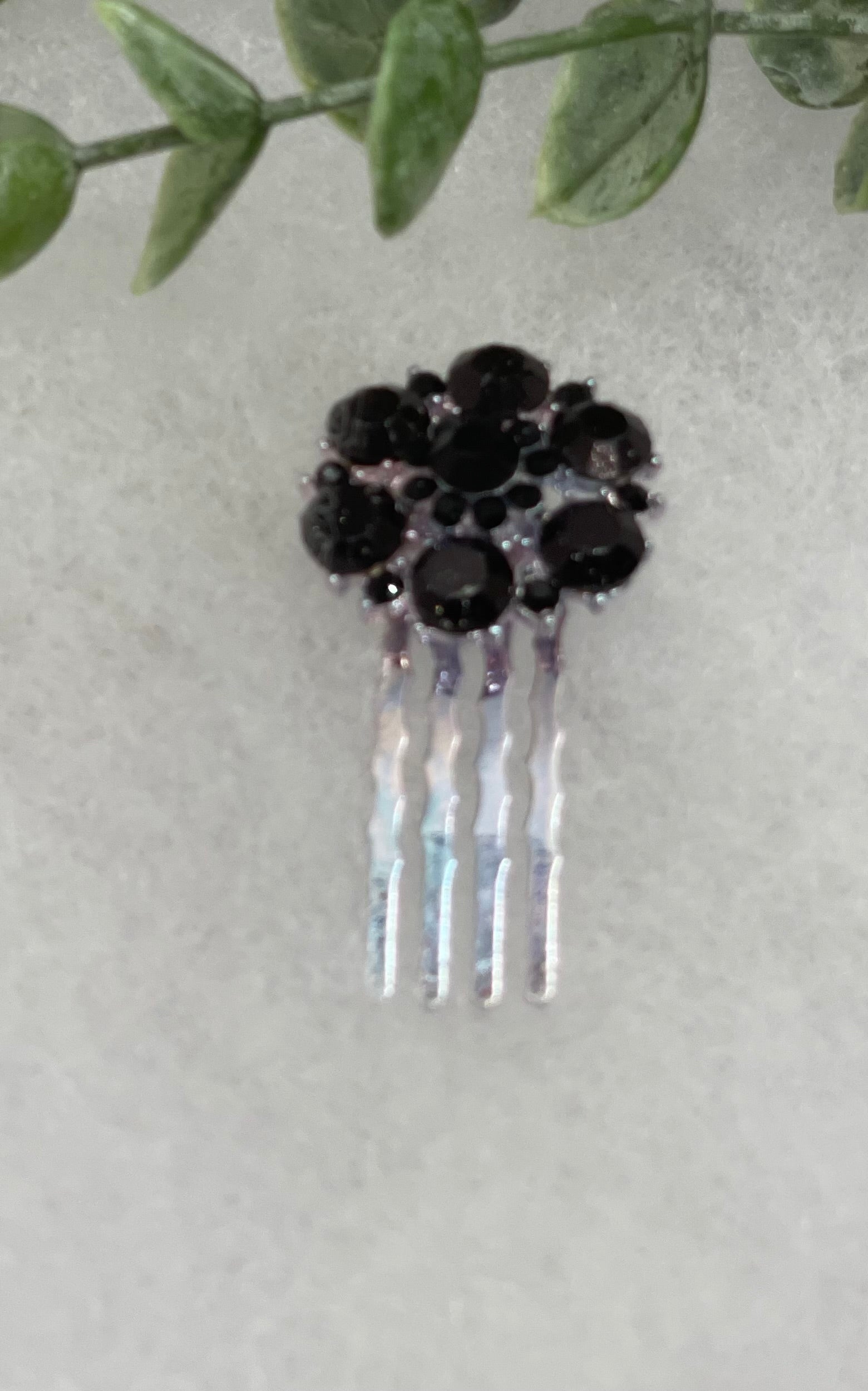 Black crystal rhinestone flower approximately 2.0” hair side comb wedding bridal shower engagement formal princess accessory accessories