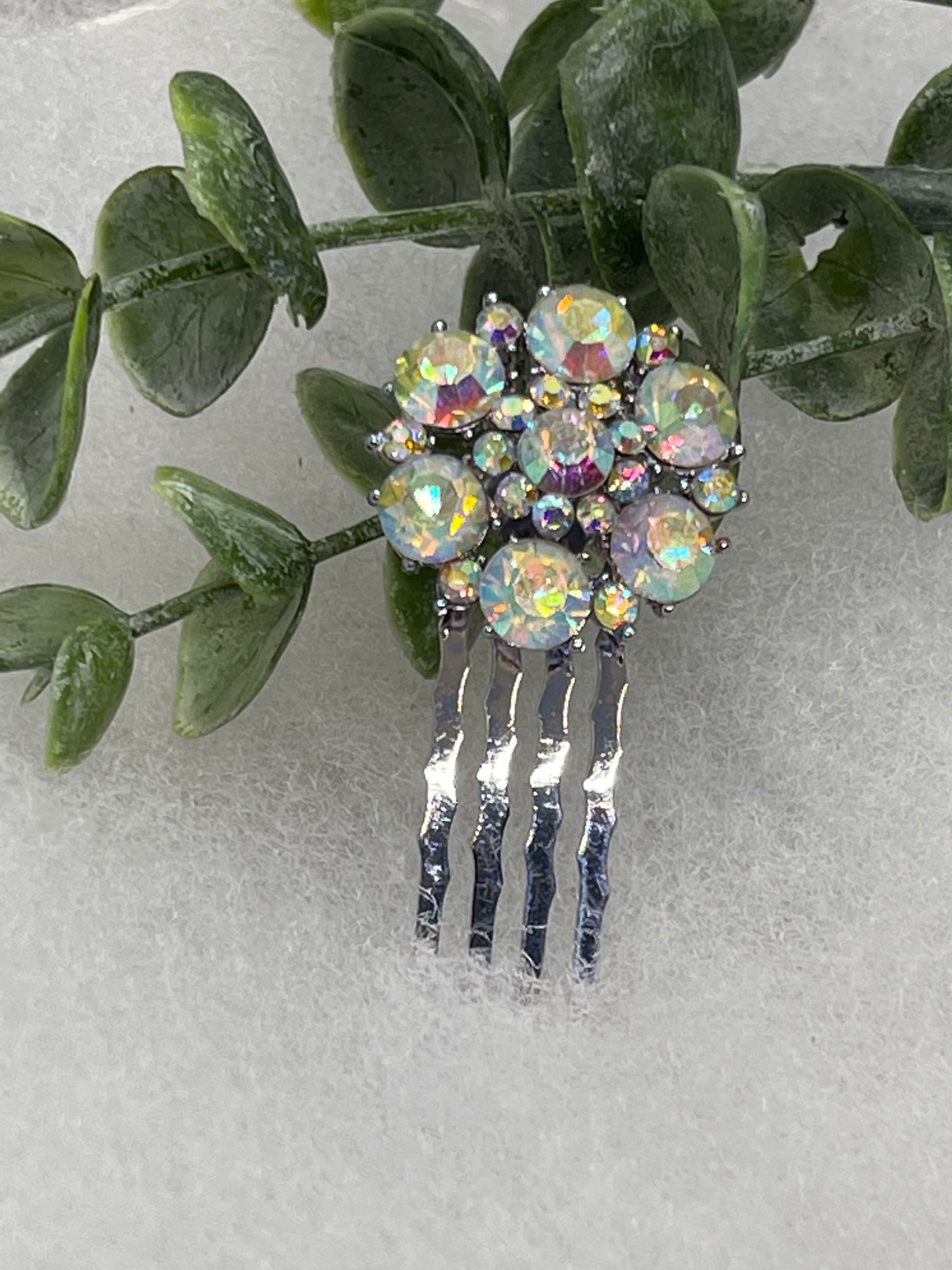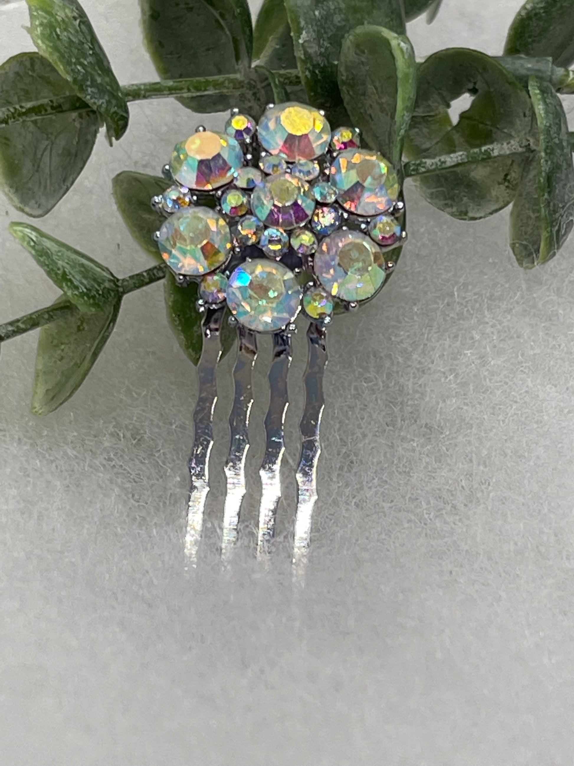 Iridescent crystal rhinestone flower approximately 2.0” hair side comb wedding bridal shower engagement formal princess accessory accessories