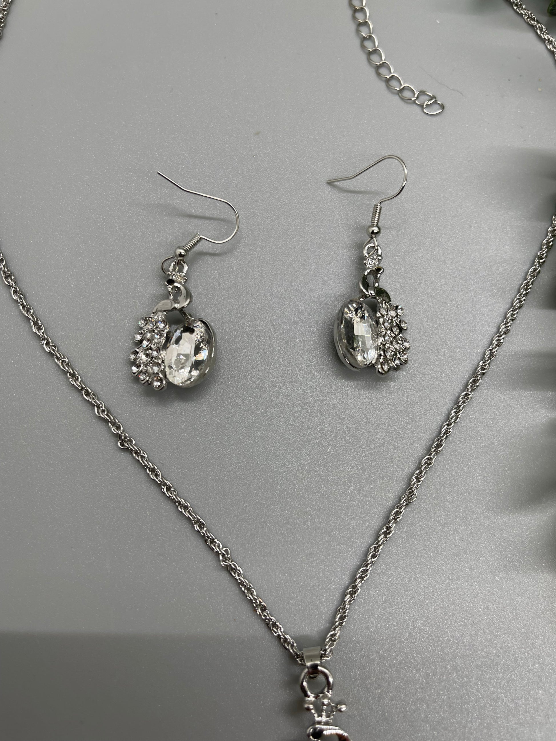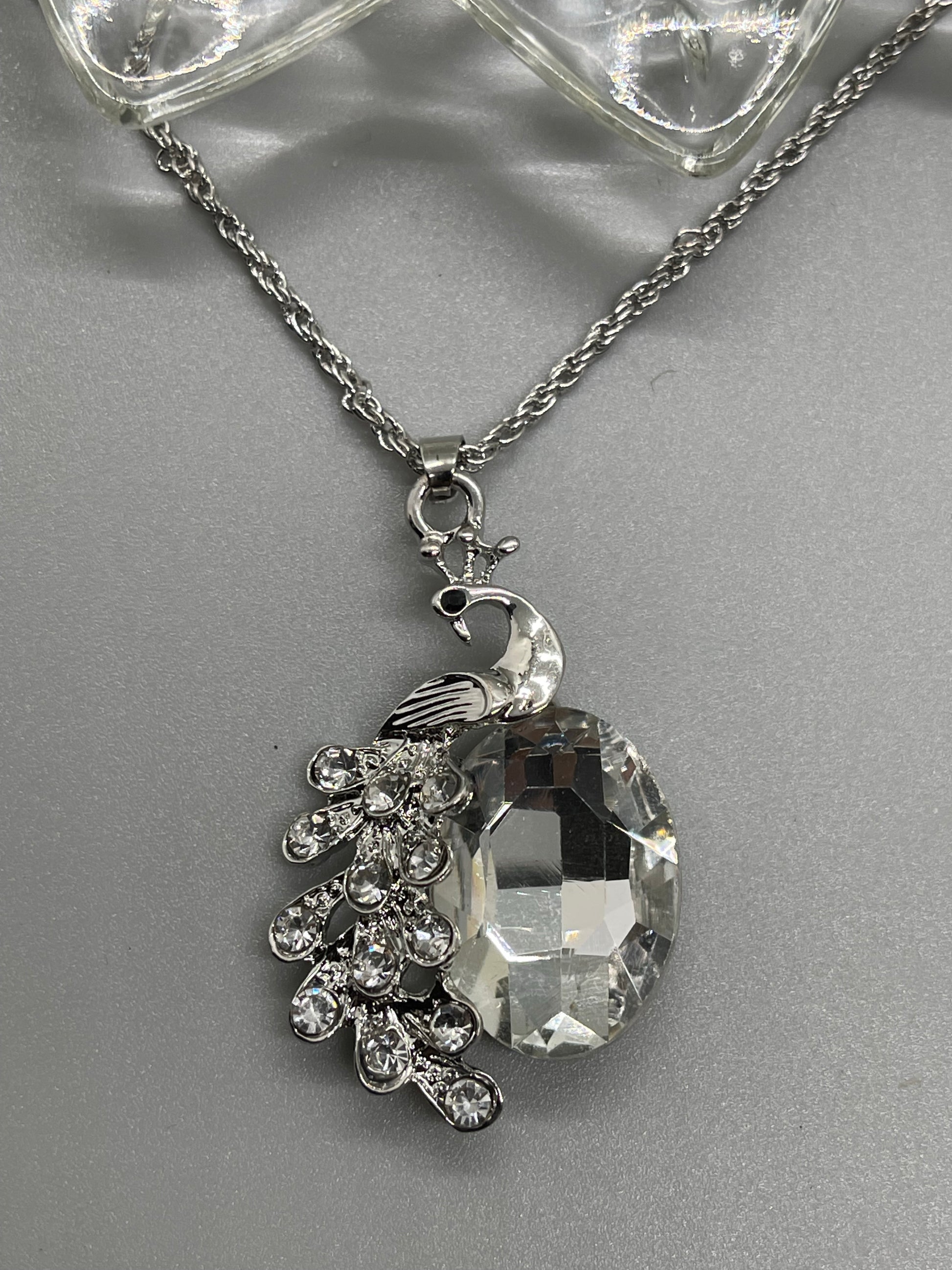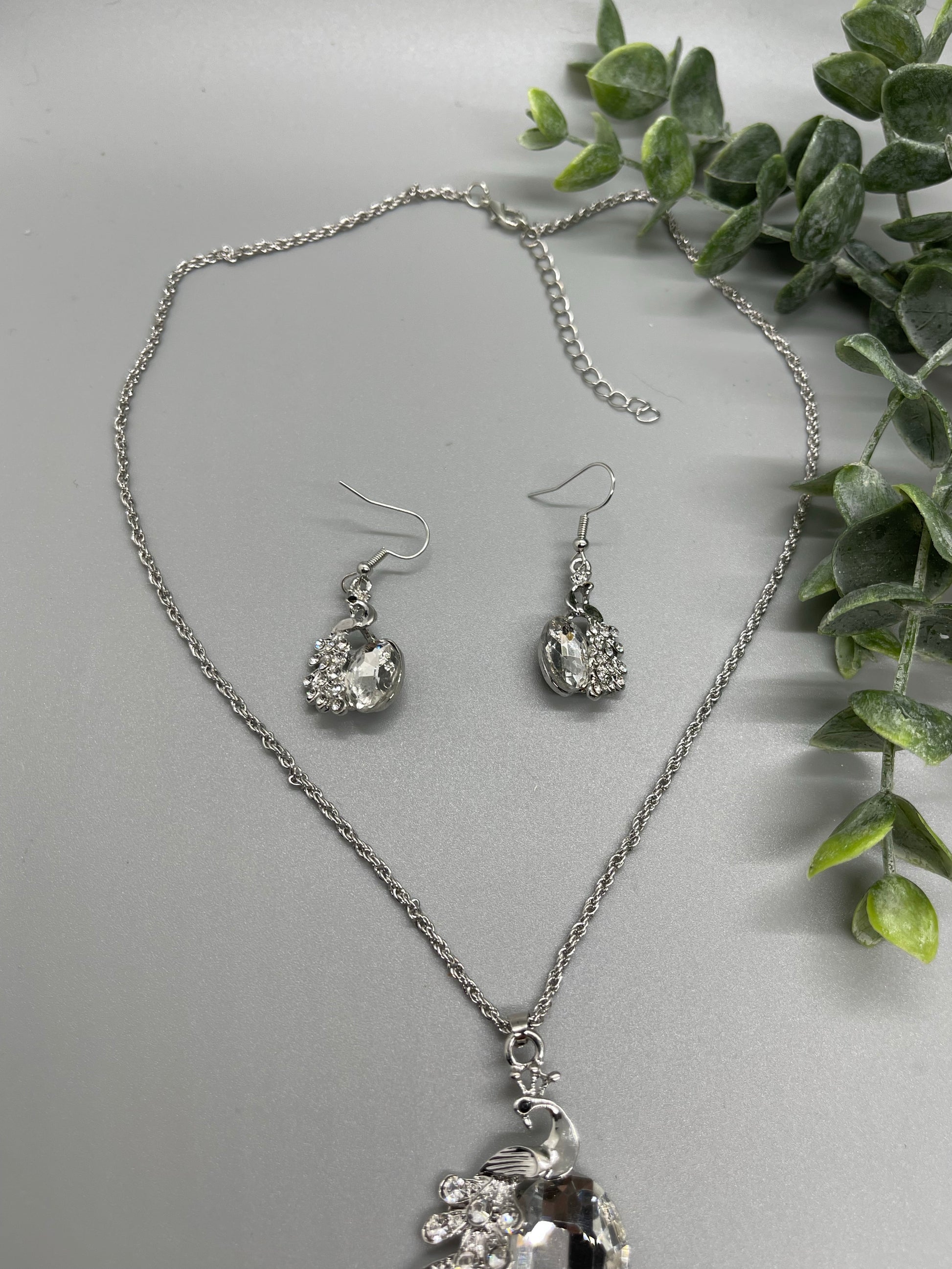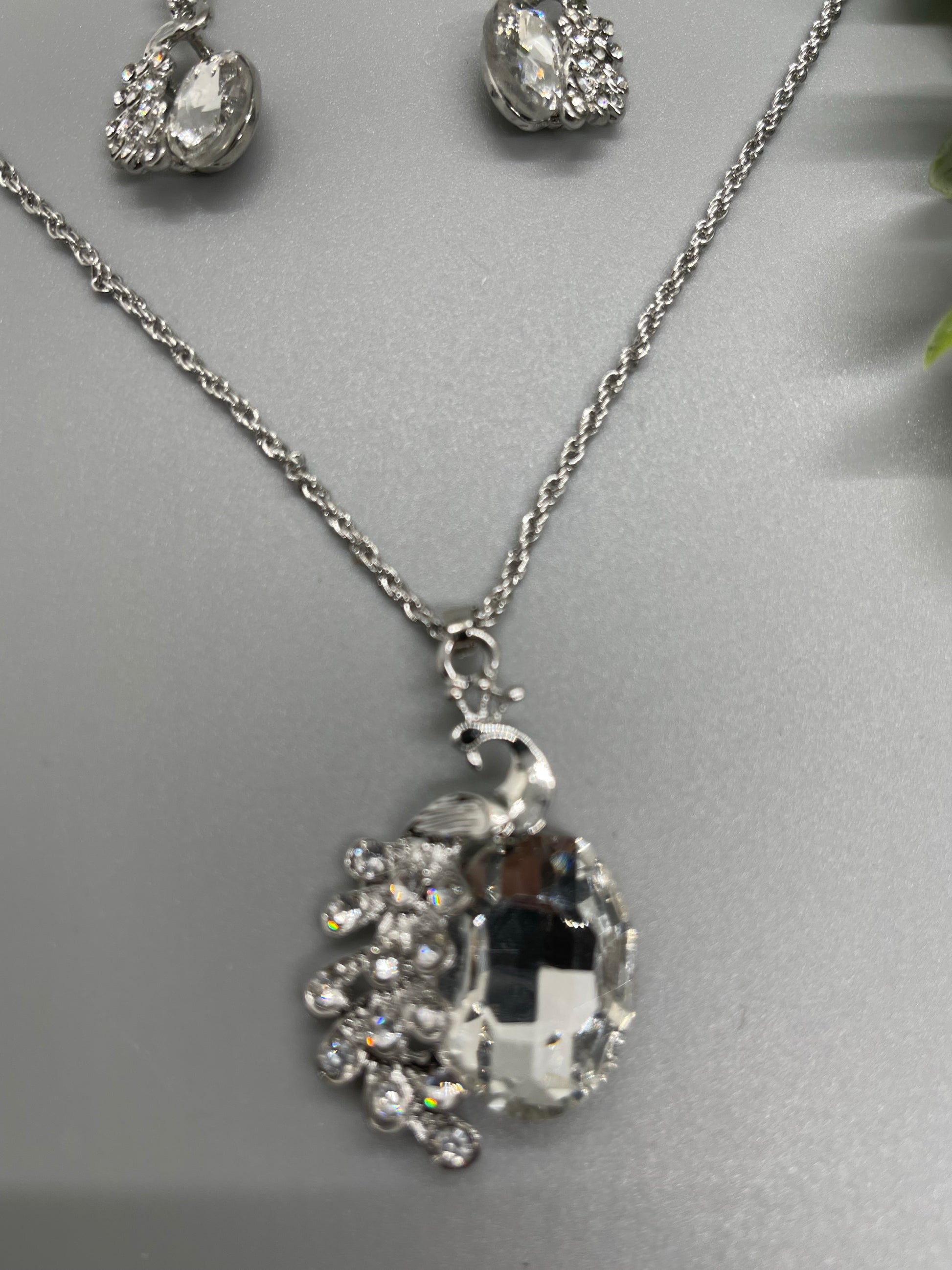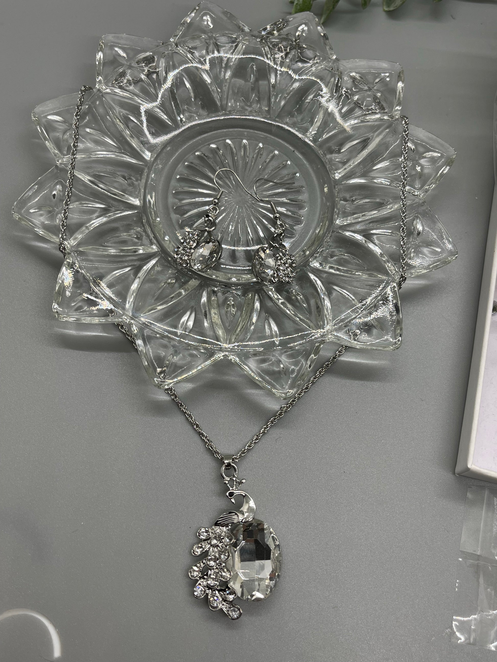 Crystal rhinestone peacock silver necklace earrings set bridesmaid gifts mother of the bride groom princess birthday gifts