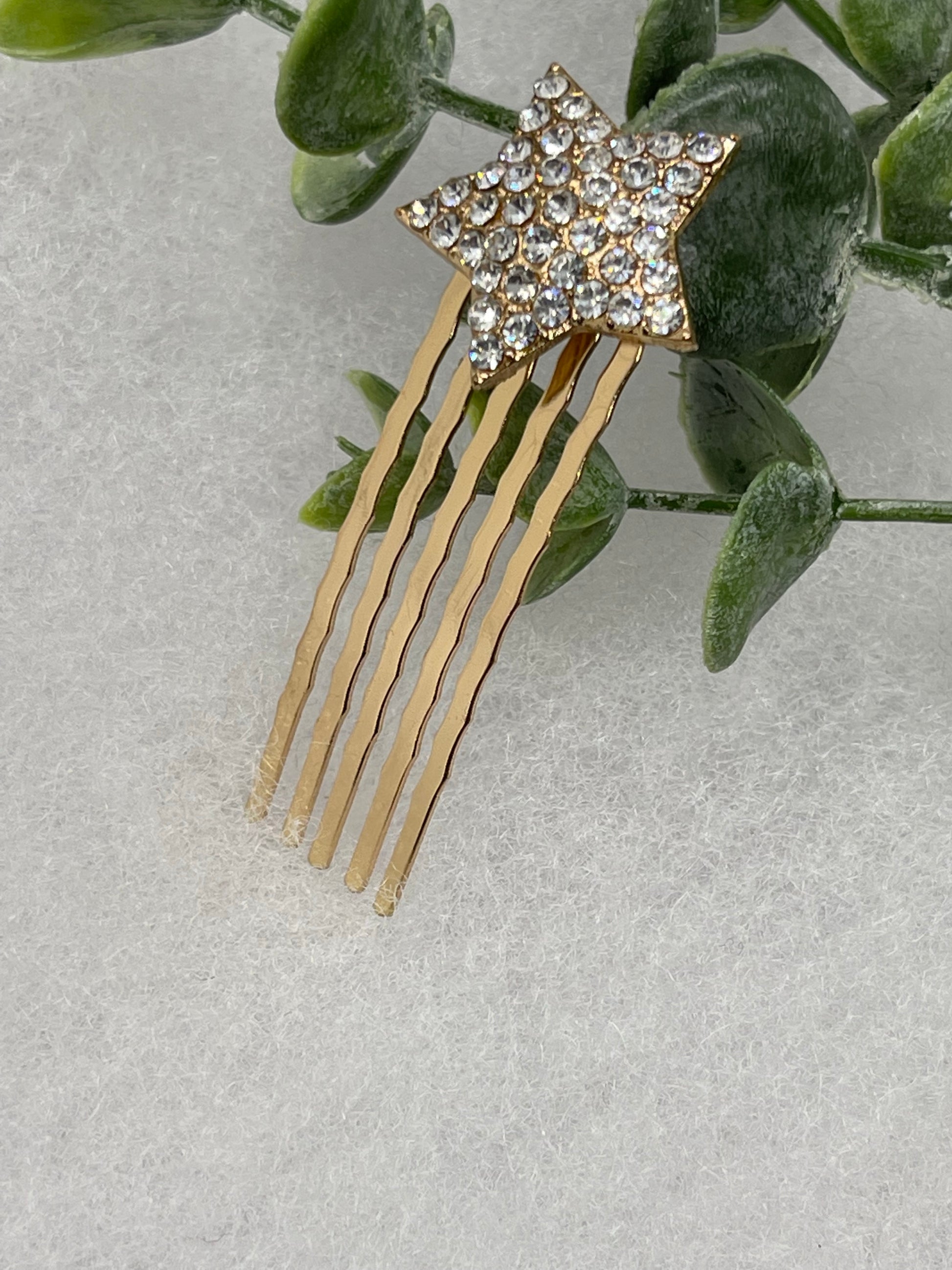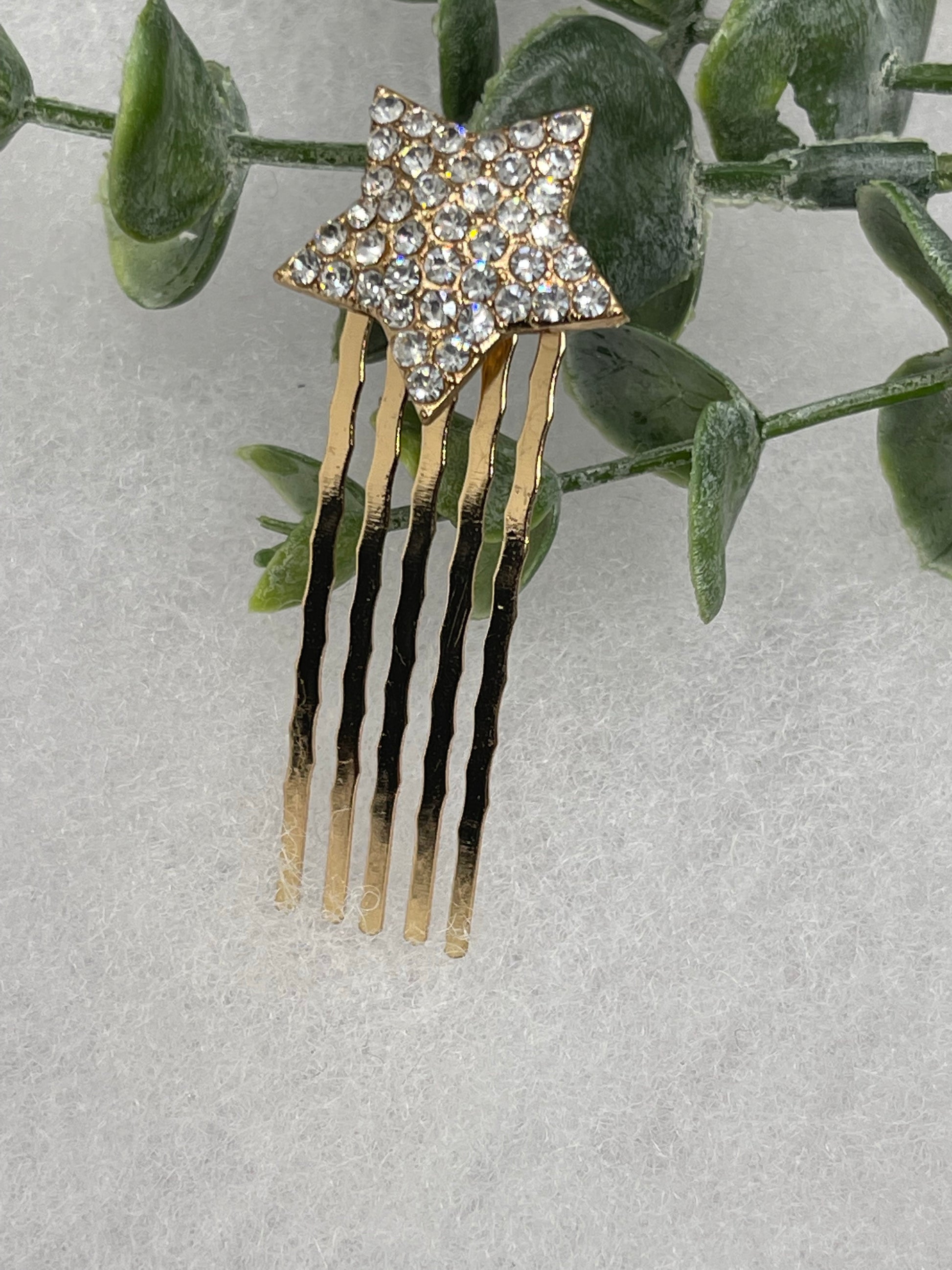 Gold crystal rhinestone star approximately 2.5” hair side comb wedding bridal shower engagement formal princess accessory accessories