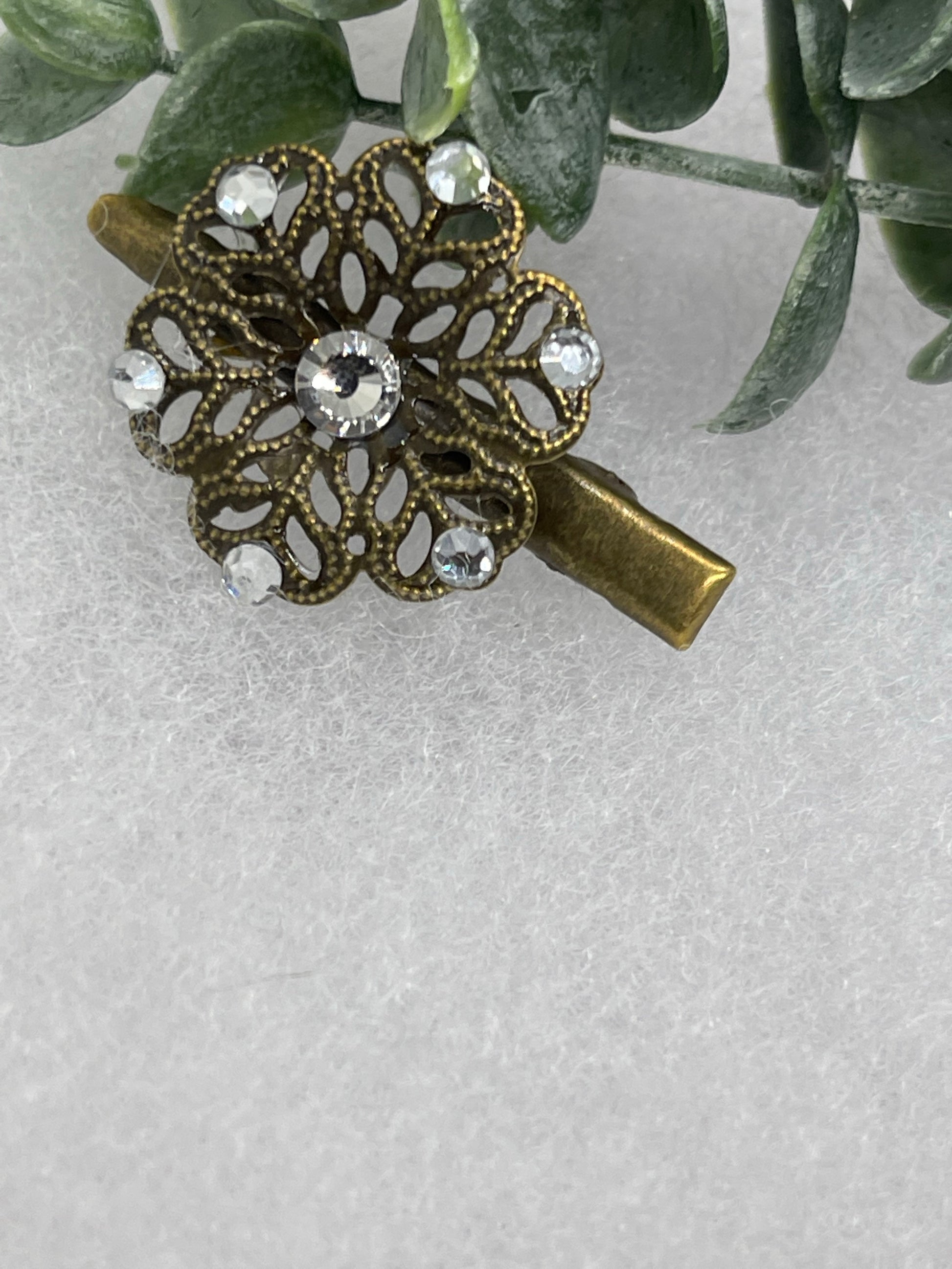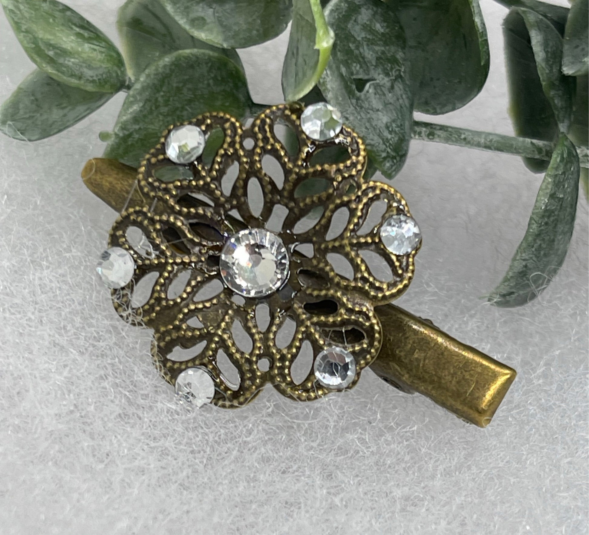 Clear Crystal vintage antique style flower hair alligator clip approximately 2.0” long Handmade hair accessory bridal wedding Retro