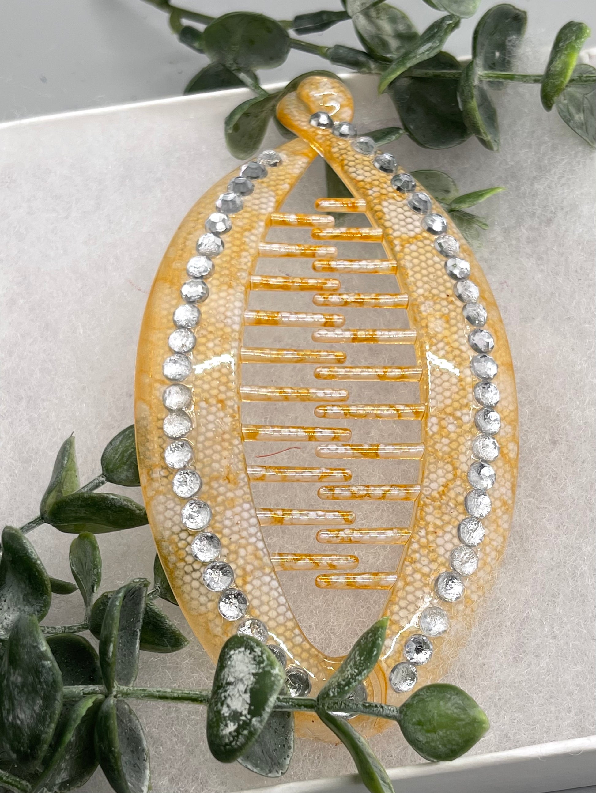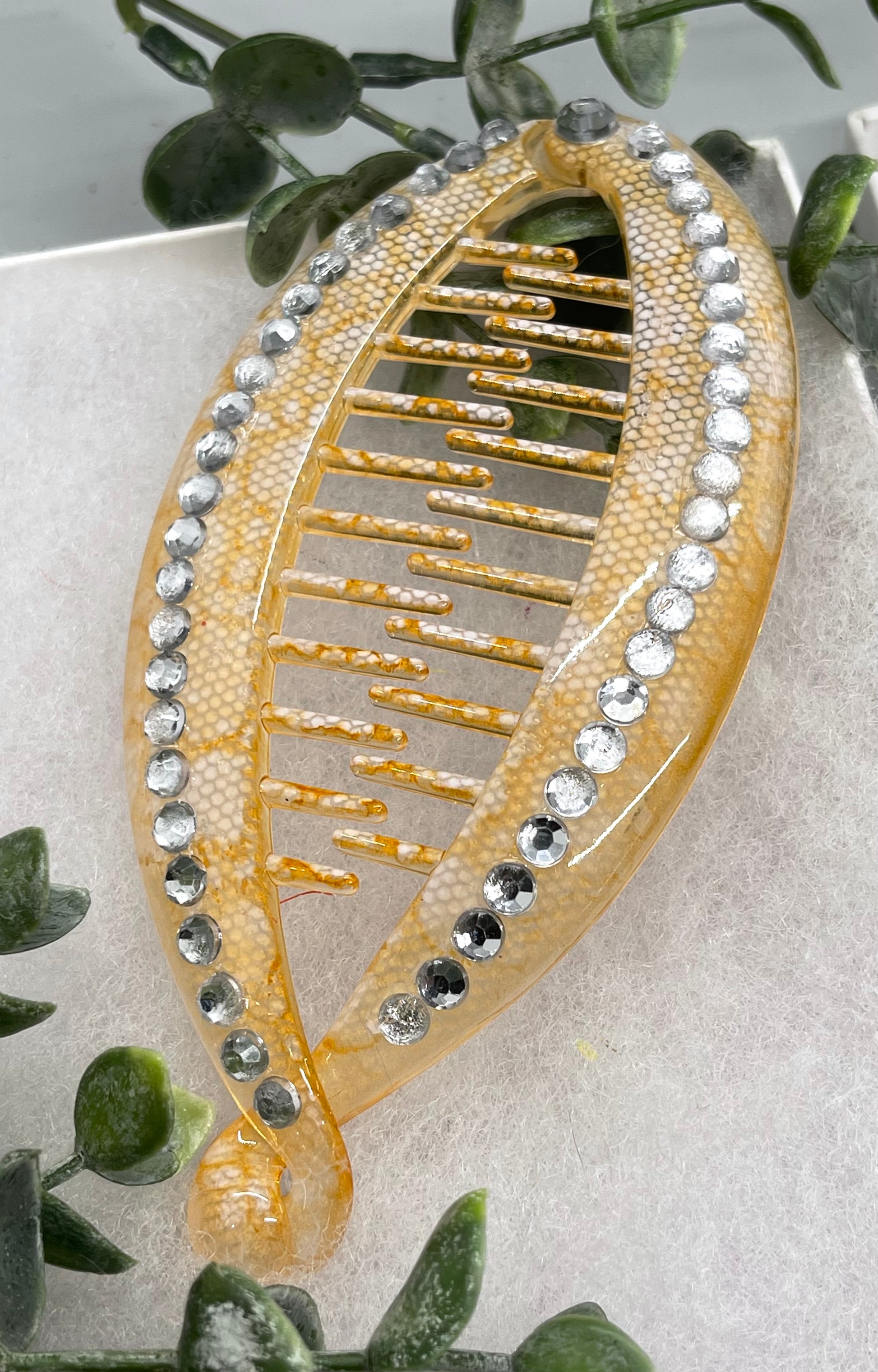 Clear crystal rhinestone hand Embellished 5” L 3”W Cream banana comb clips bridesmaid wedding engagement party formal hair accessories
