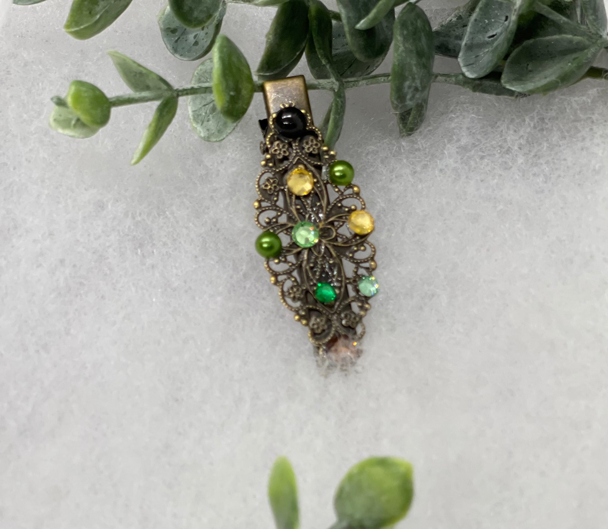 Camouflage Pearl Crystal vintage antique style leaf hair alligator clip approximately 2.5” long Handmade hair accessory bridal wedding Retro