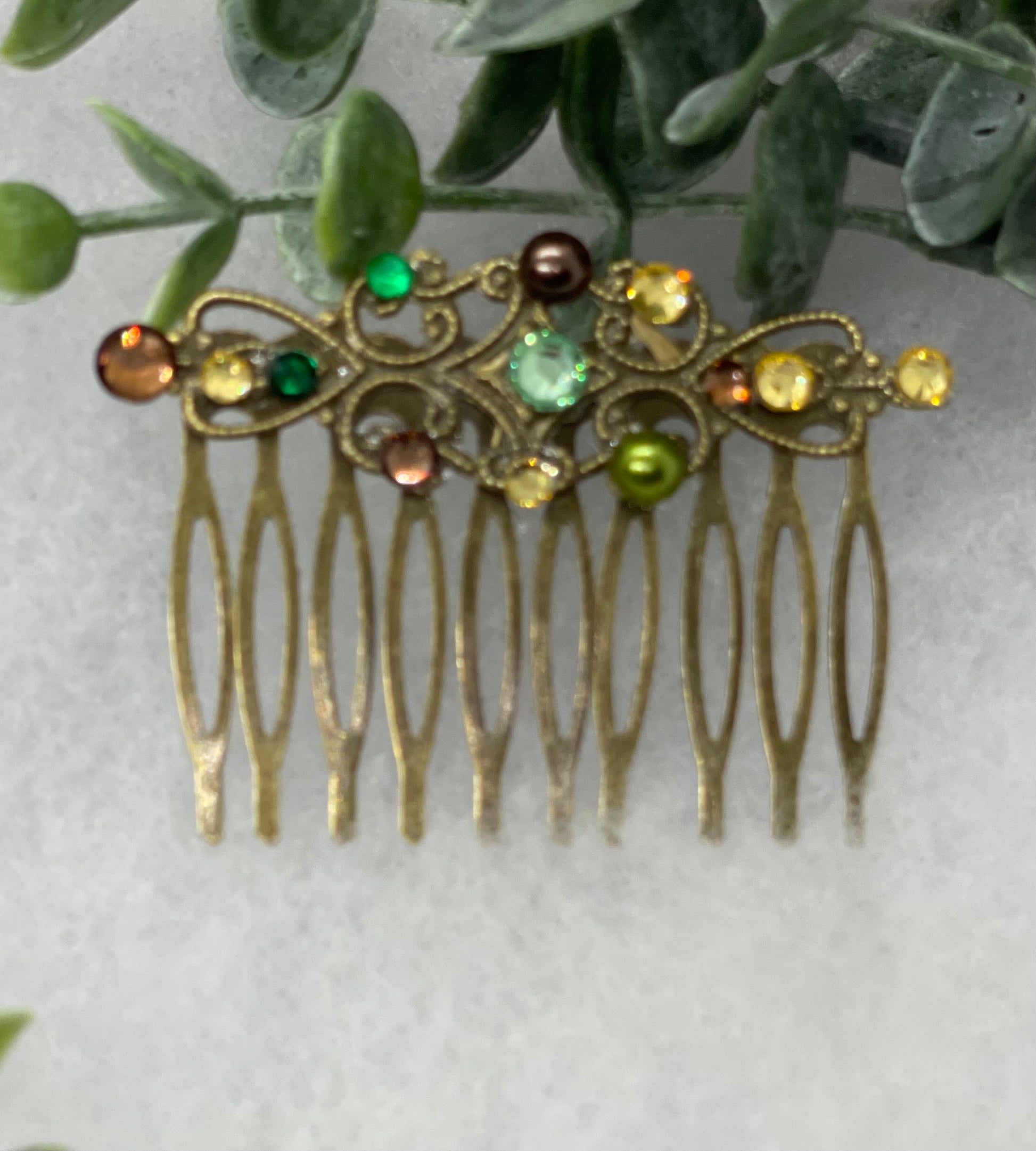 Camouflage crystal rhinestone pearl vintage style antique hair accessories gift birthday event formal bridesmaid 2.5” Metal side Comb #809
