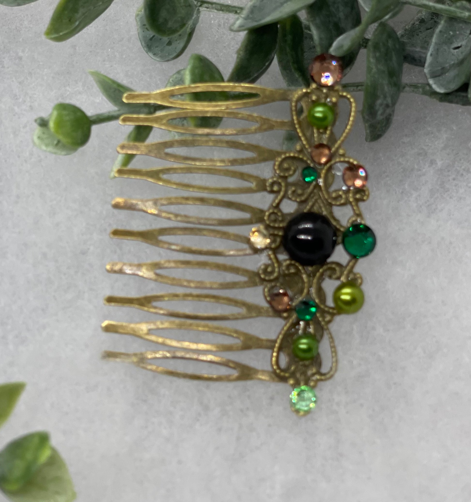Camouflage crystal rhinestone pearl vintage style antique hair accessories gift birthday event formal bridesmaid 2.5” Metal side Comb #899