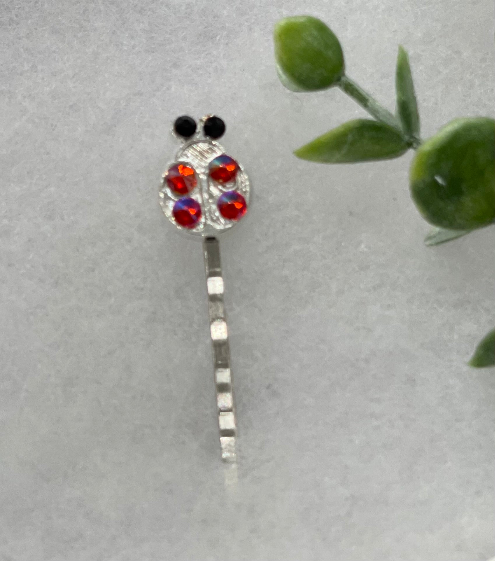 Ladybug red crystal rhinestone Silver2.5” long hair hair pin hair Accessories gifts