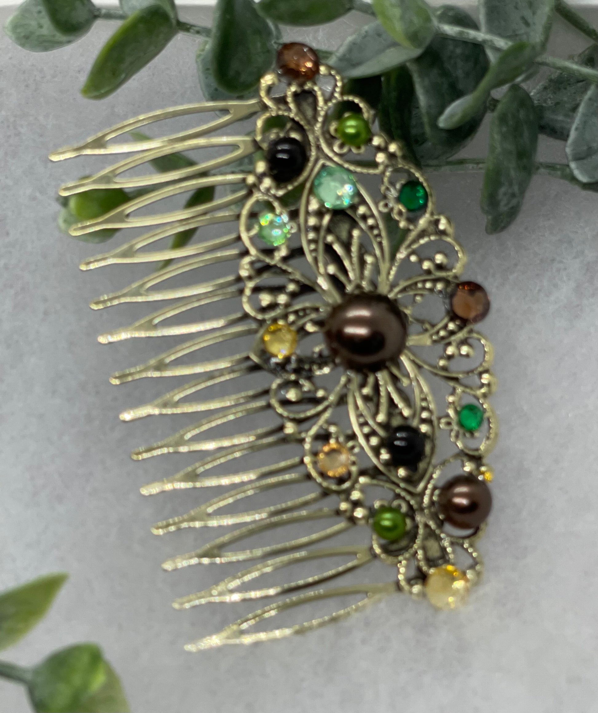 Camouflage crystal rhinestone pearl vintage style antique hair accessories gift birthday event formal bridesmaid 3.5” Metal side Comb ##925