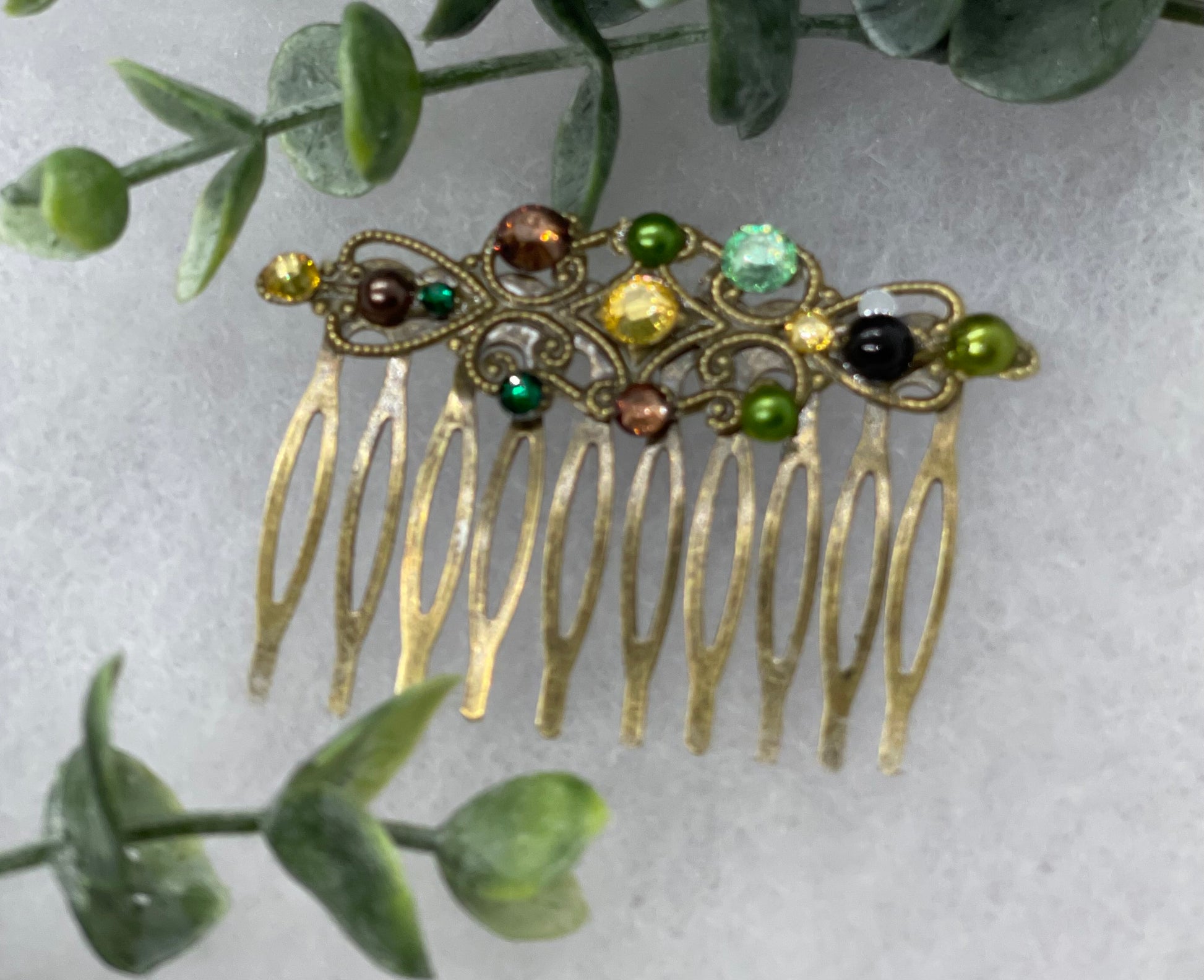 Camouflage crystal rhinestone pearl vintage style antique hair accessories gift birthday event formal bridesmaid 2.5” Metal side Comb #158