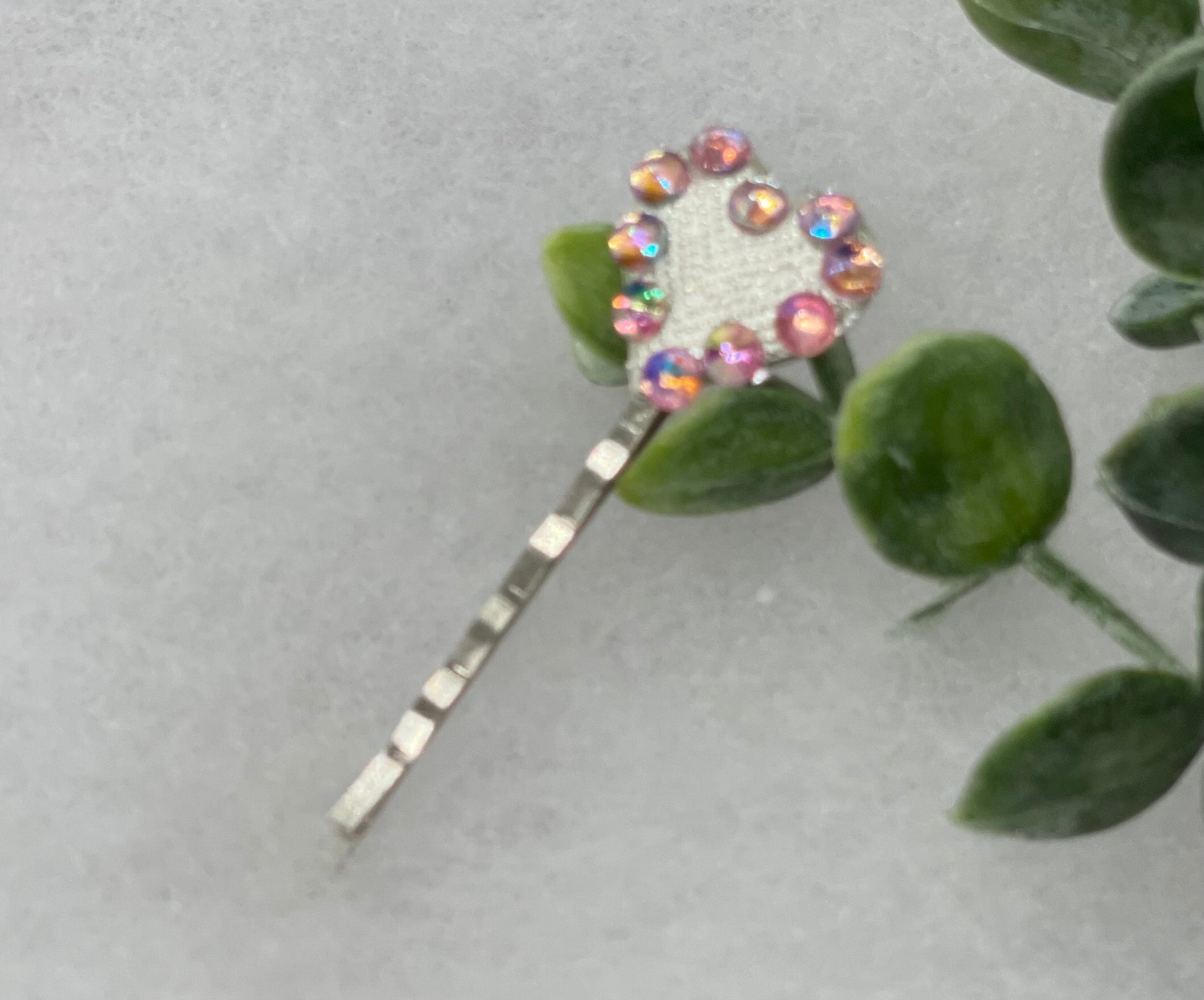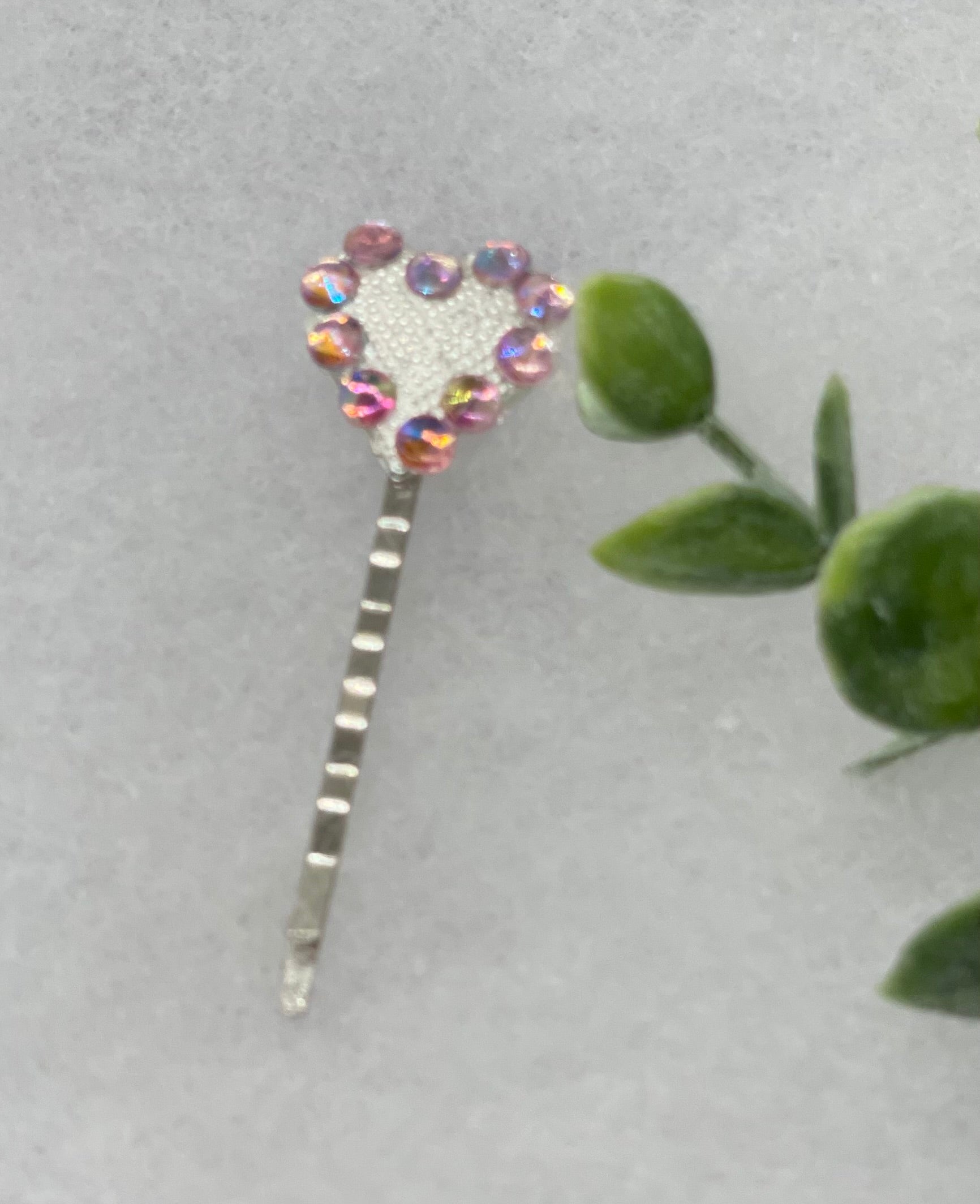 Pink iridescent heart crystal rhinestone silver 2.5” hair pin hair accessories gift birthday