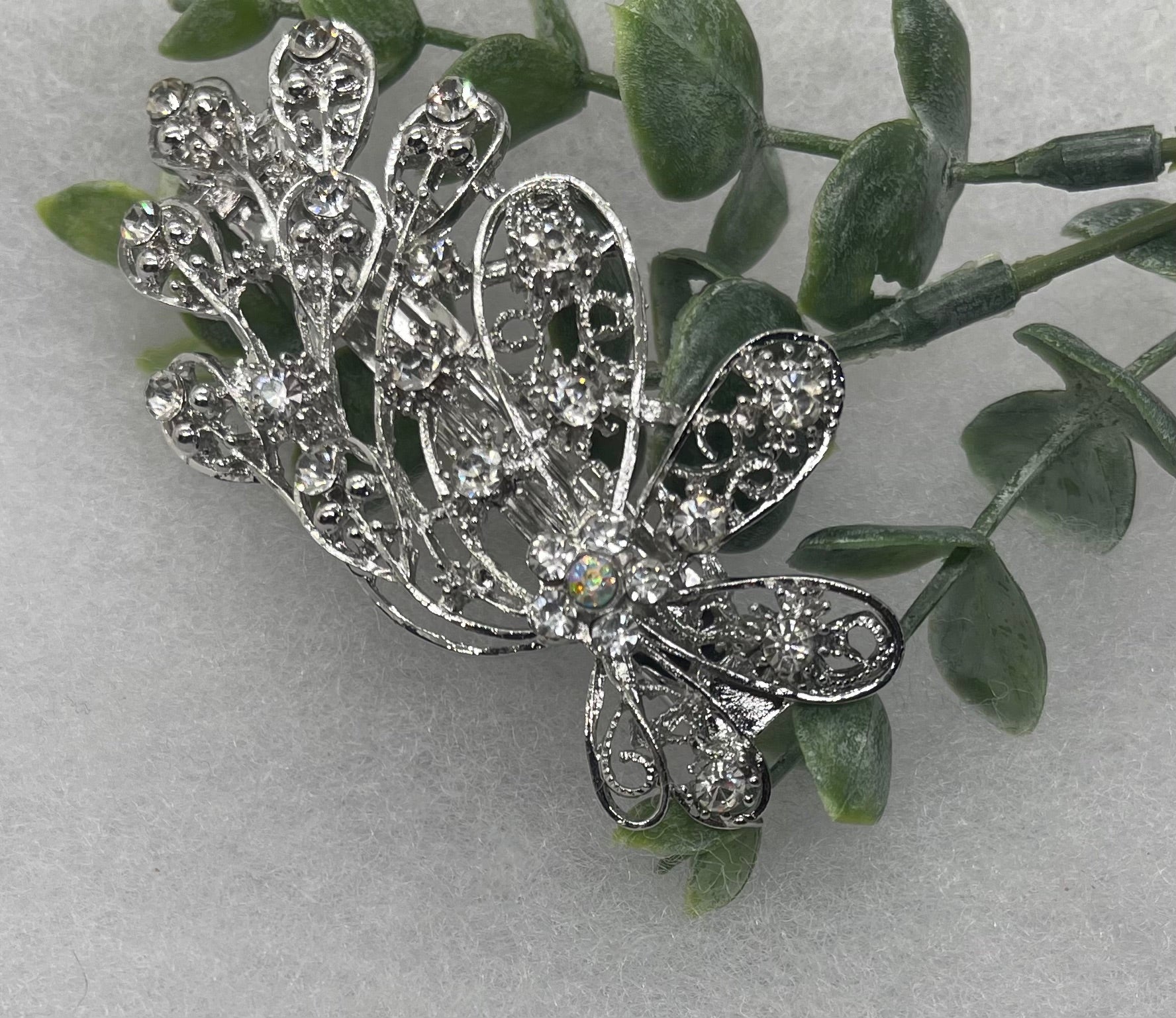 Elegant flower Clear Crystal Rhinestone Barrette approximately 3.0”Metal silver tone formal hair accessory gift wedding bridal shower accessories