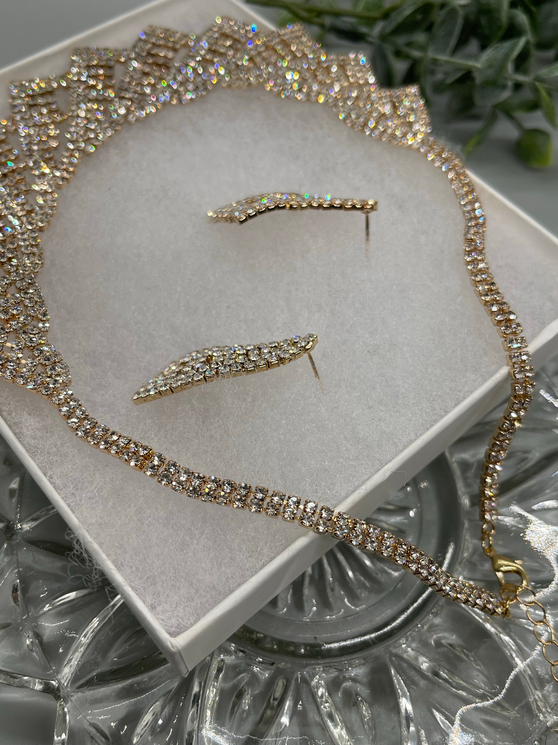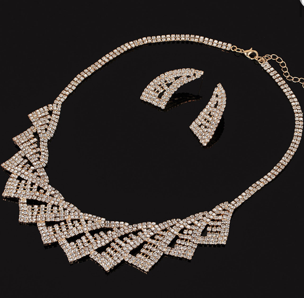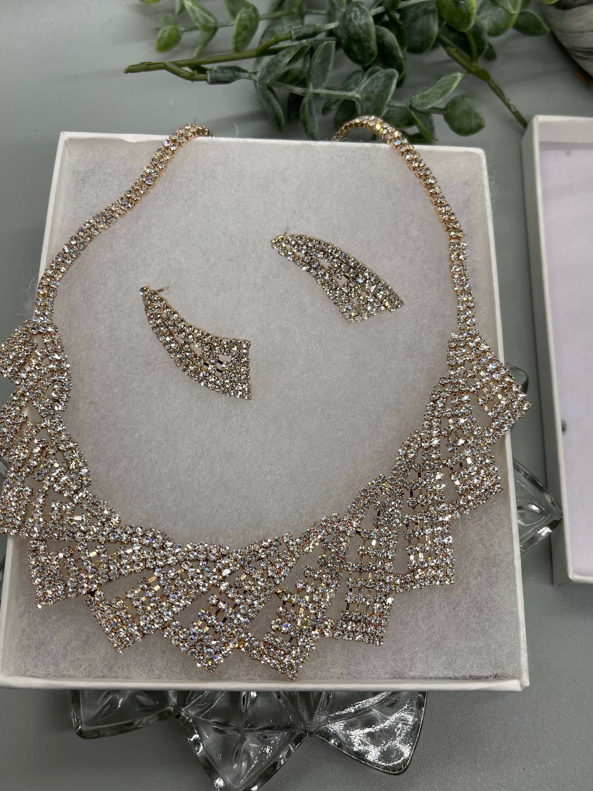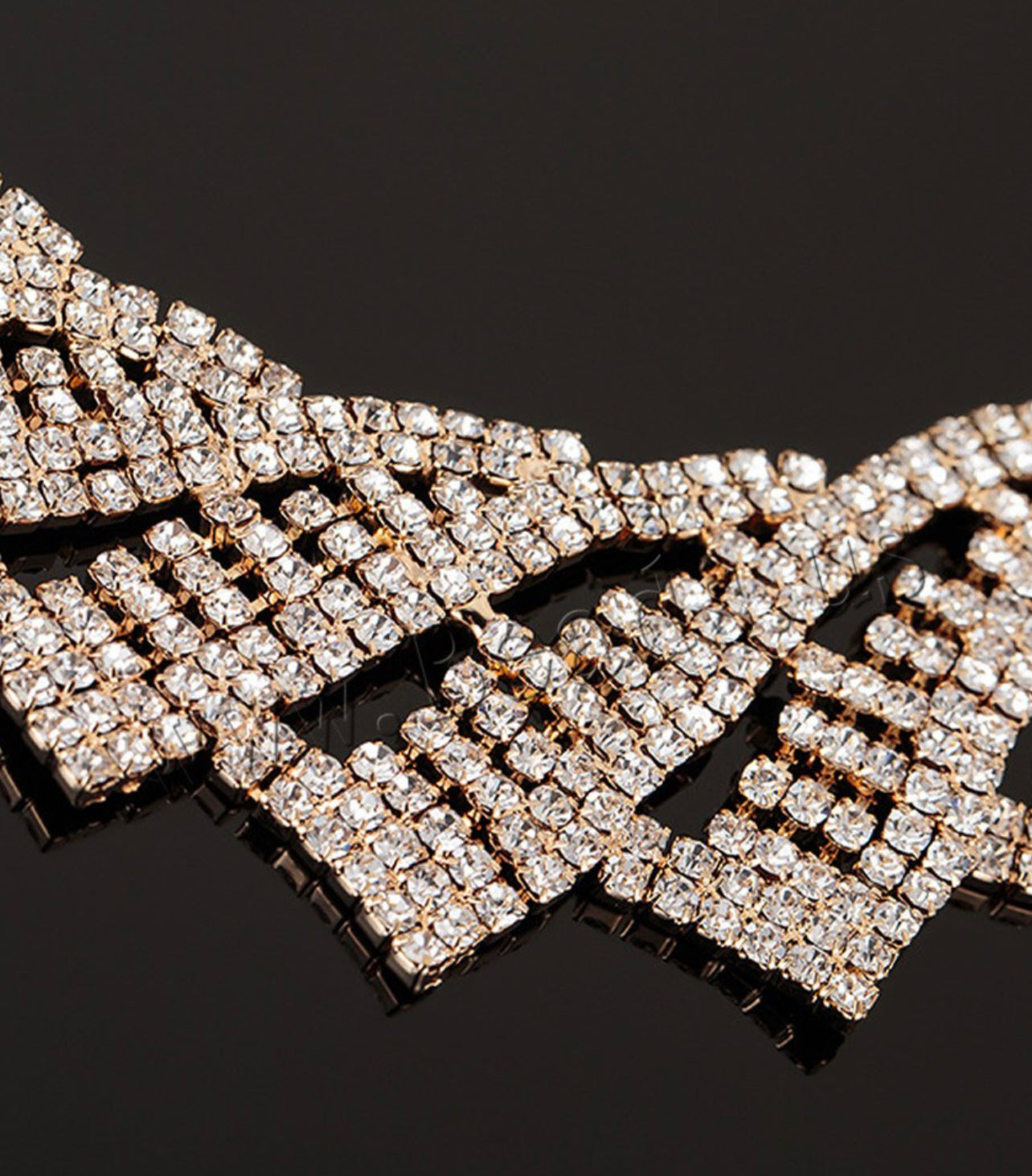 Elegant crystal rhinestone gold necklace Rhinestone Jewelry Sets earring necklace wedding engagement Length:Approx 17.5 “