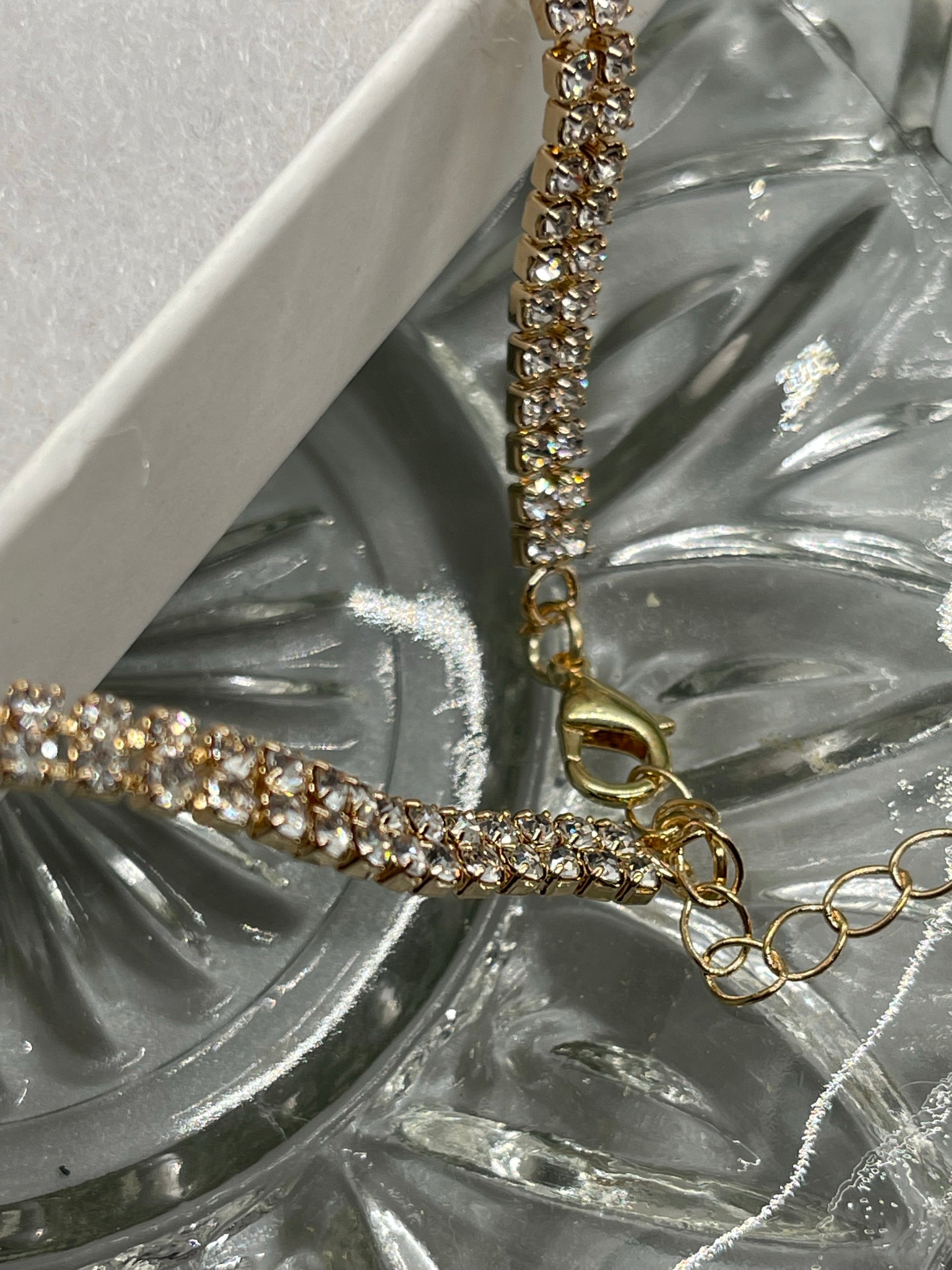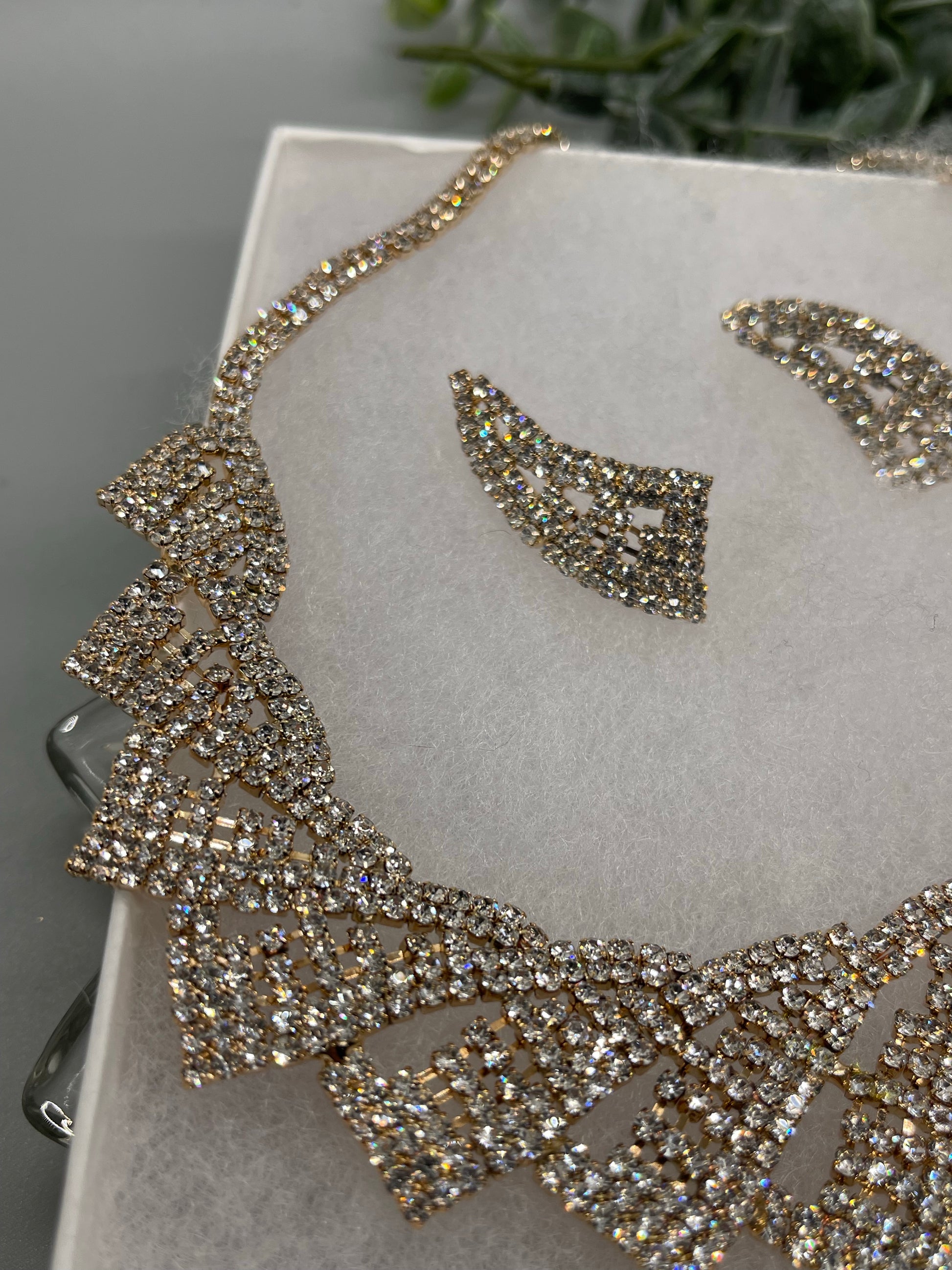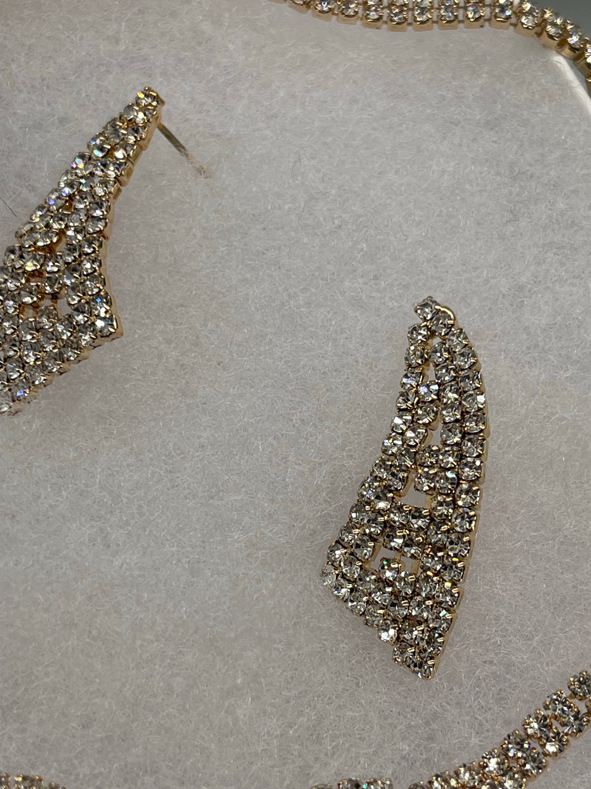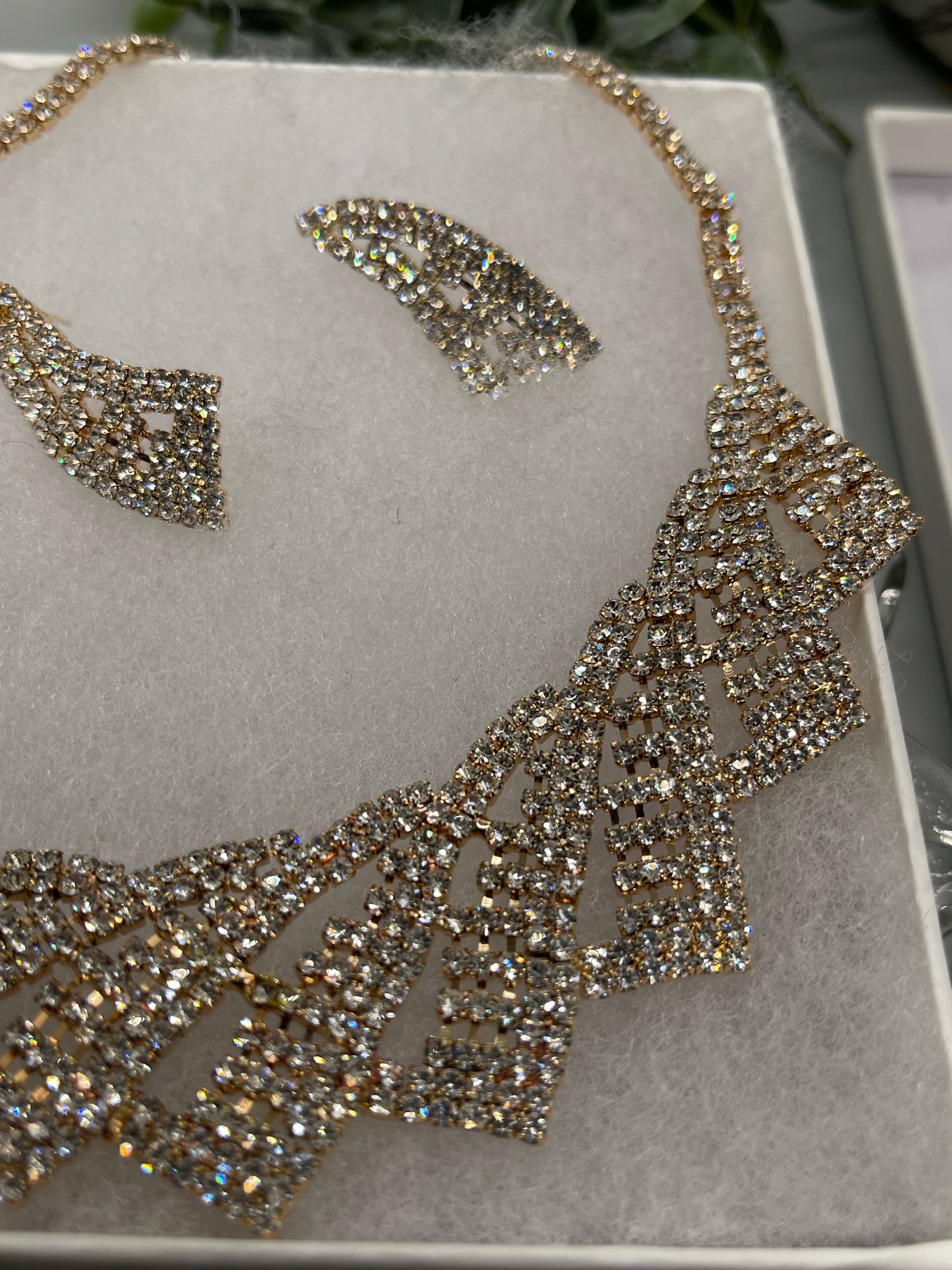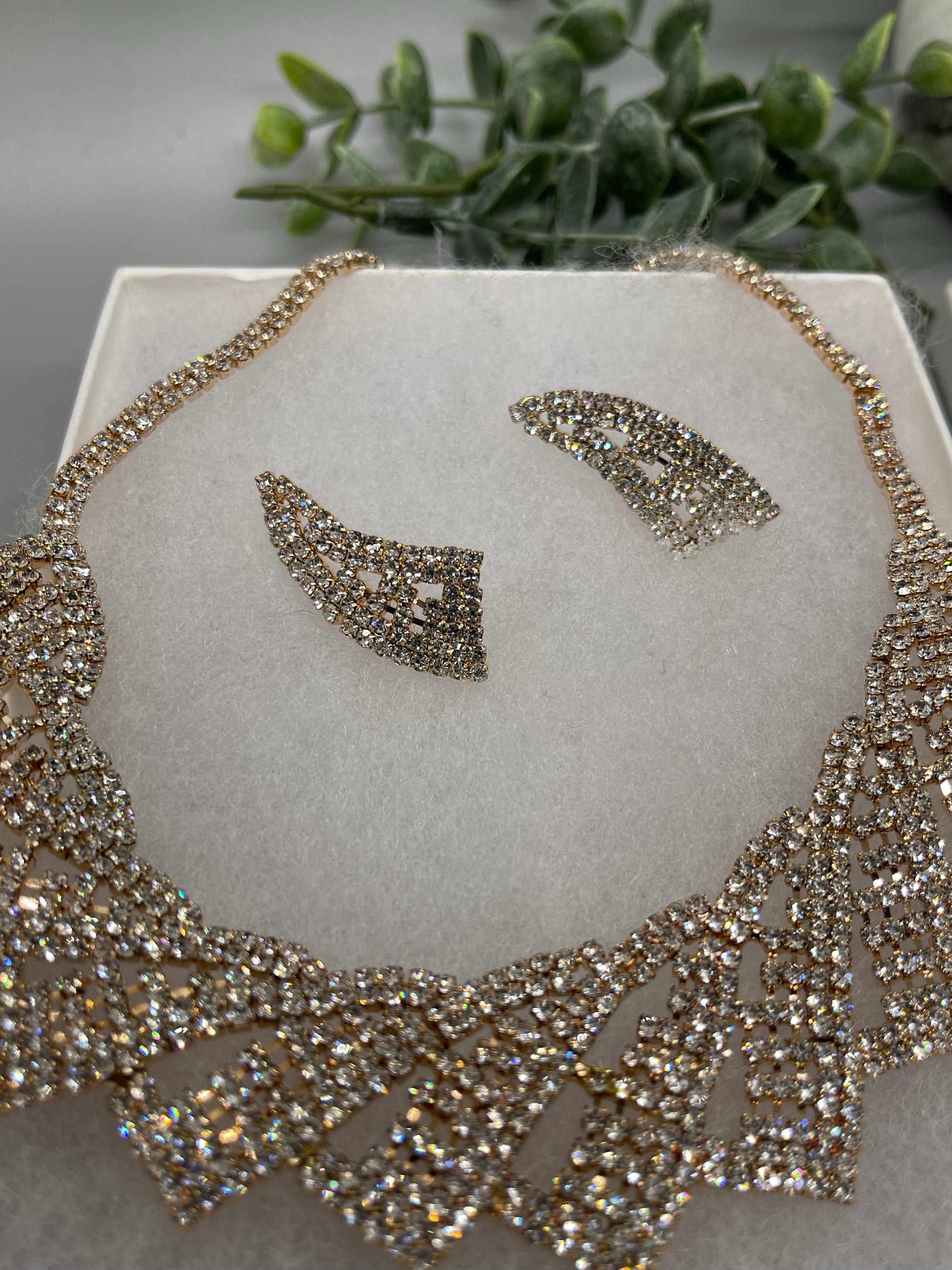 Elegant crystal rhinestone gold necklace Rhinestone Jewelry Sets earring necklace wedding engagement Length:Approx 17.5 “