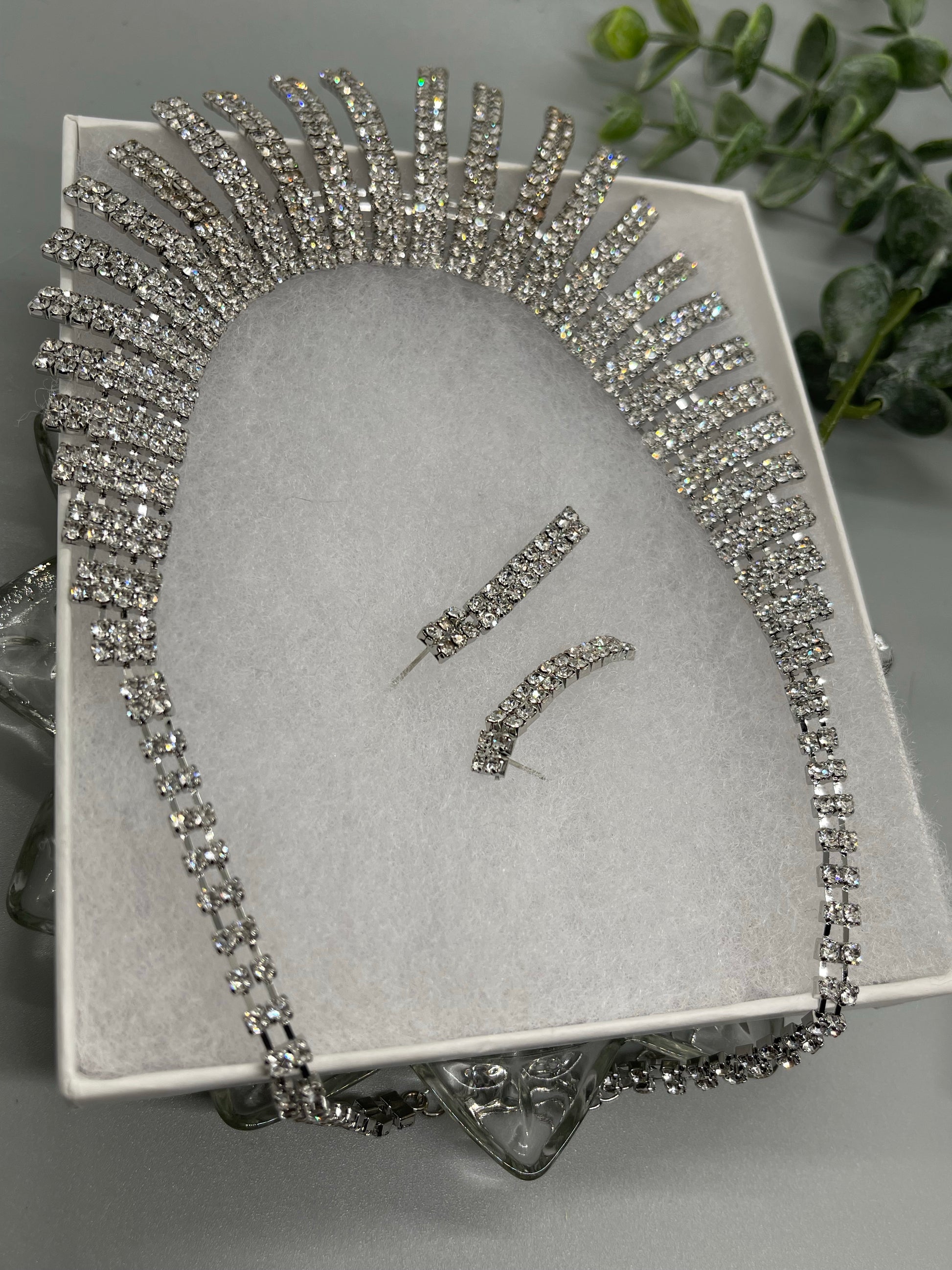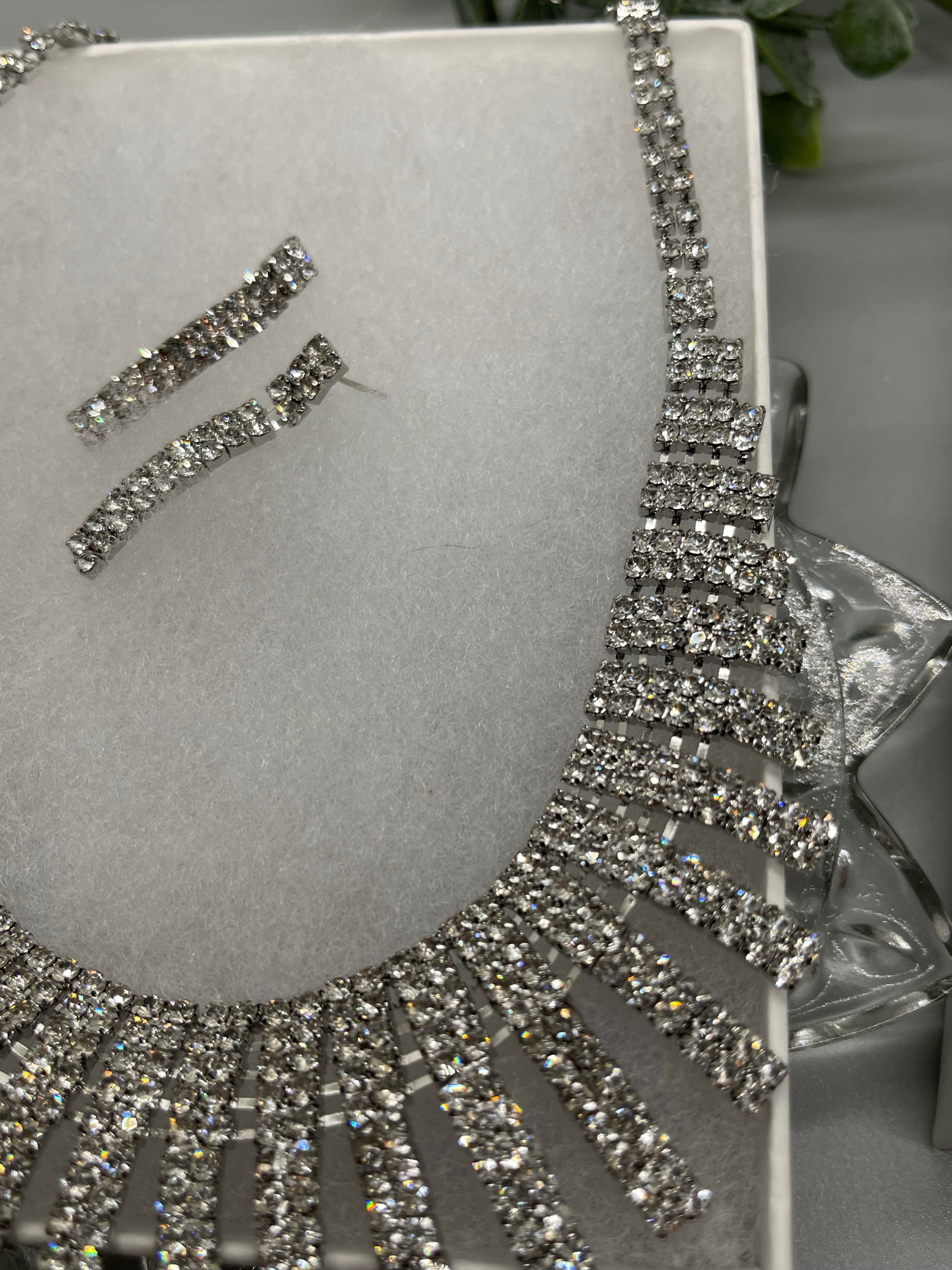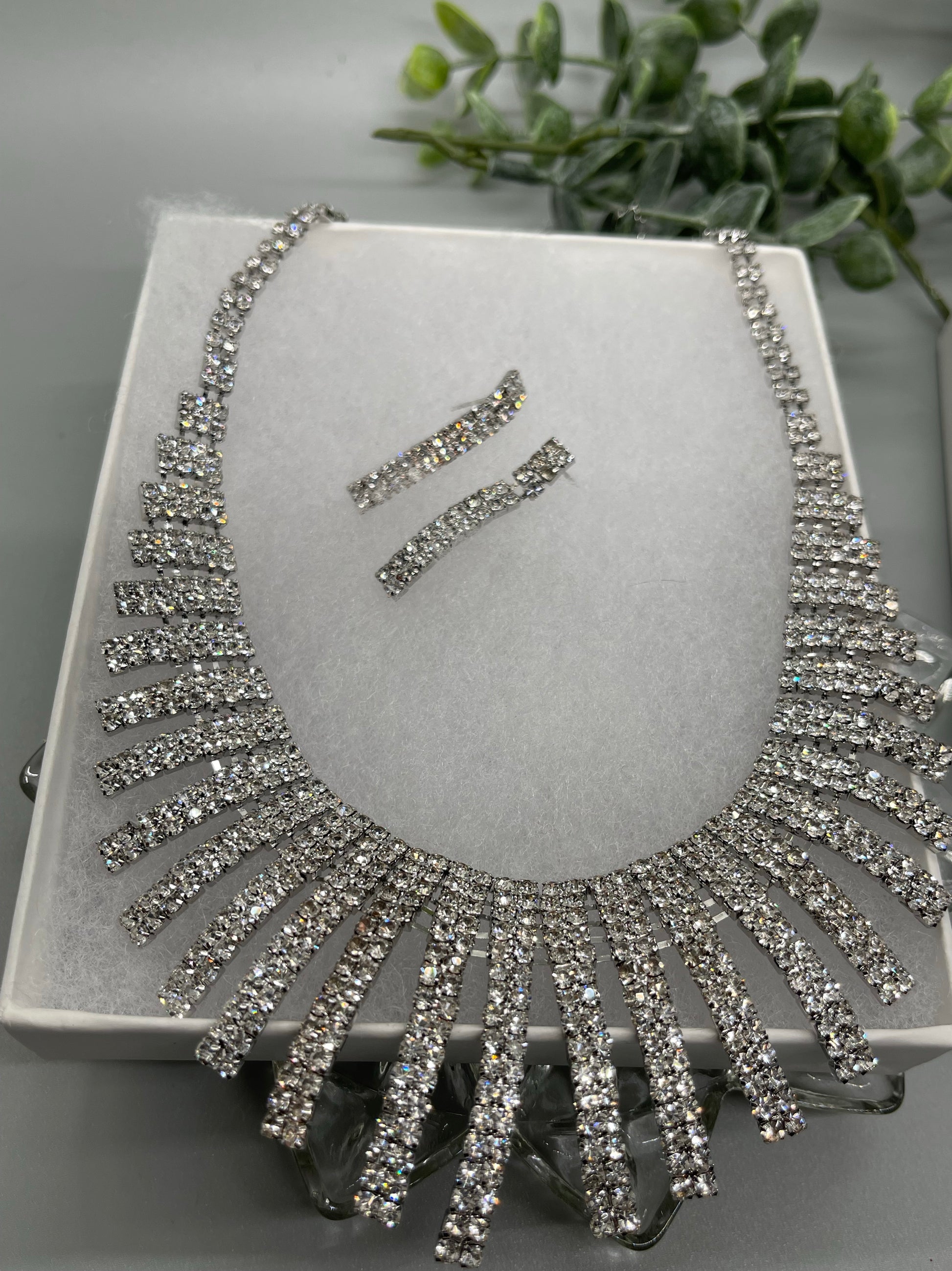 Elegant silver rhinestone crystal necklace earrings set Rhinestone Jewelry Sets earring necklace wedding engagement party