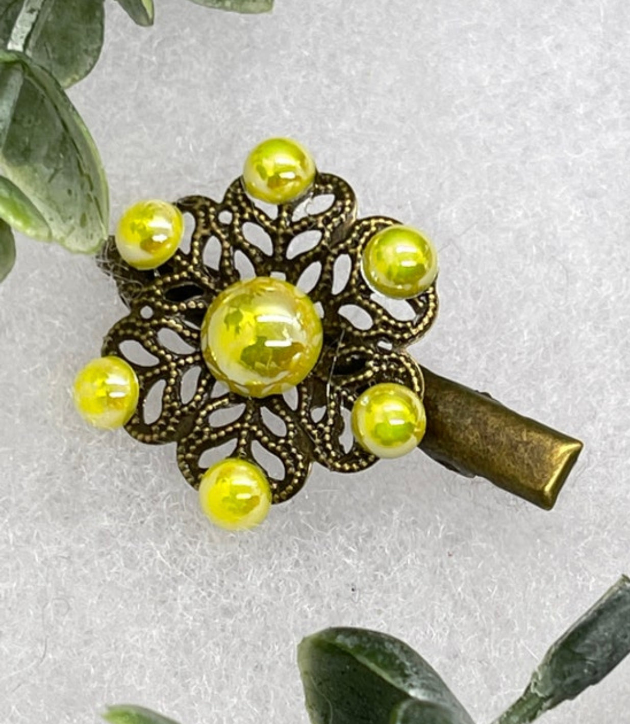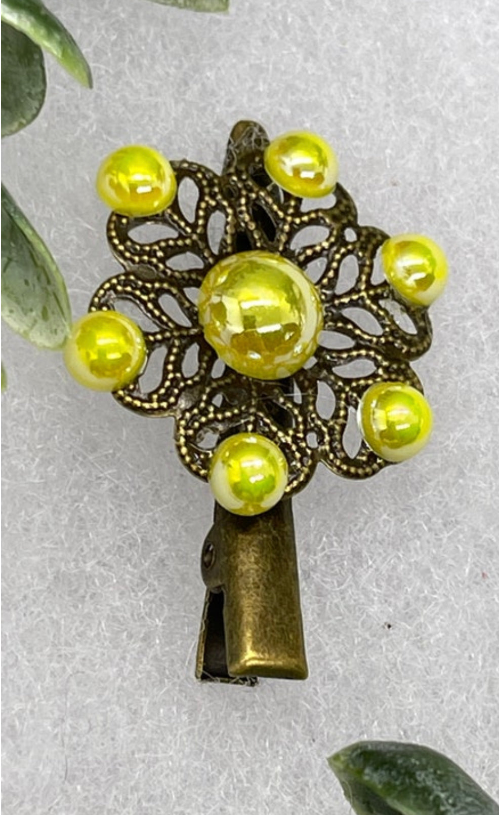 Yellow Flower vintage antique style alligator clip approximately 2.0” long hair accessory bridal wedding Retro