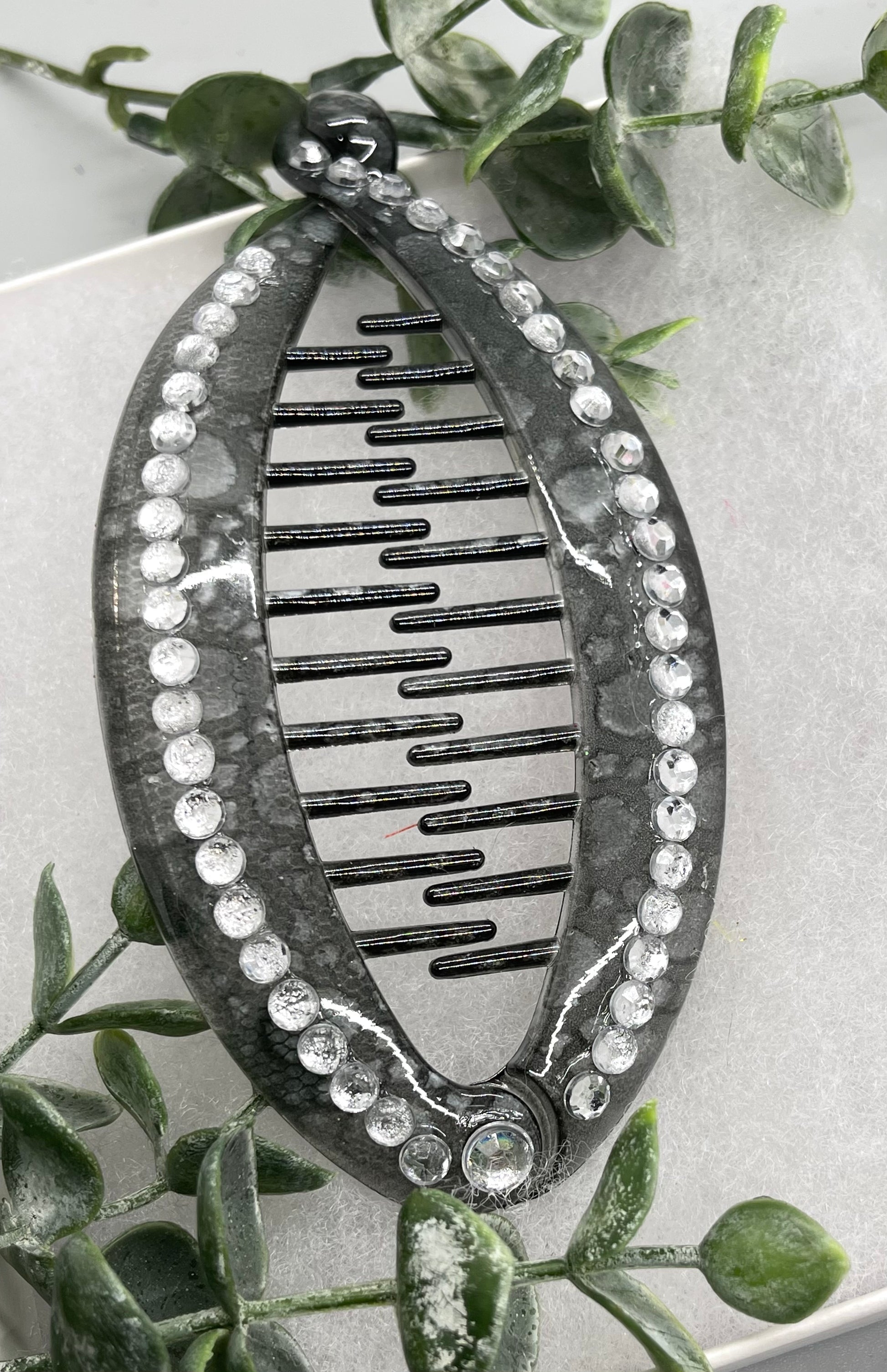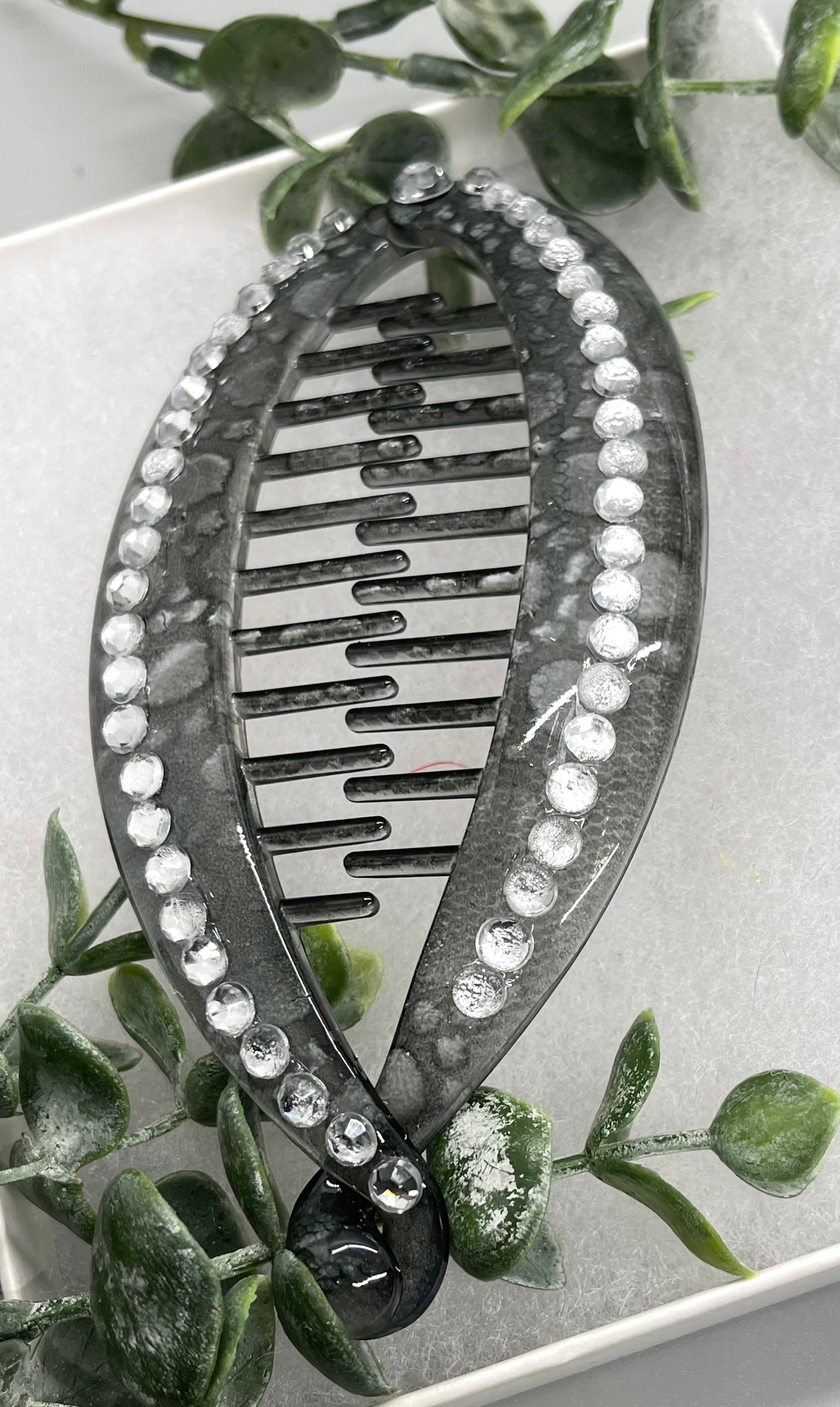 Clear crystal rhinestone hand Embellished 5” L 3”W Gray banana comb clips bridesmaid wedding engagement party formal hair accessories