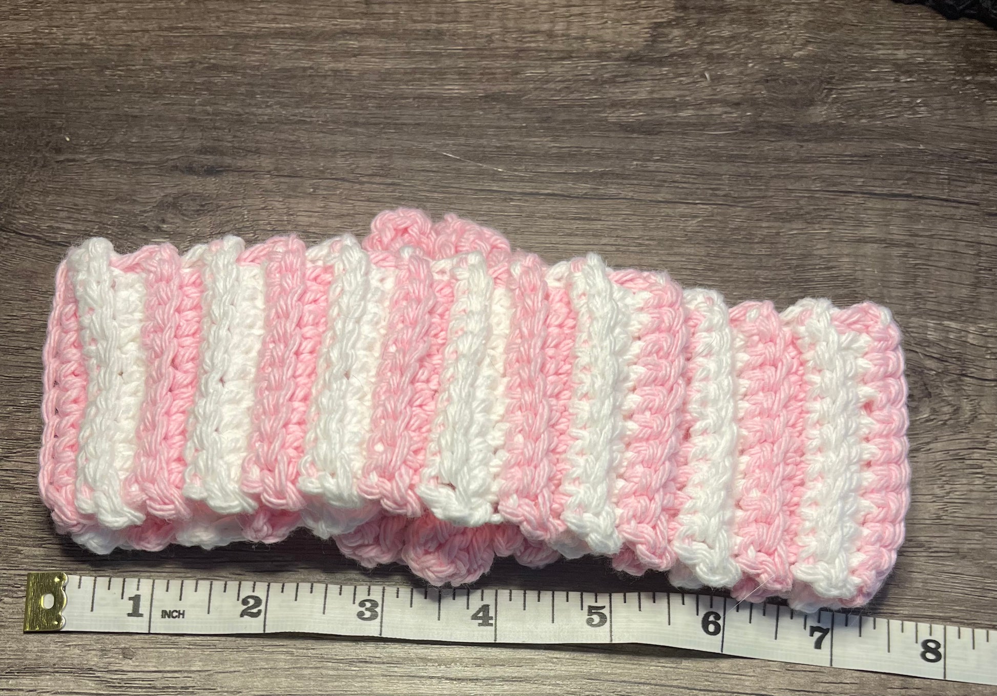 Handmade crochet pink white stripe flower headband 100% cotton girls headband gift soft gentle headband 18” stretchable cotton