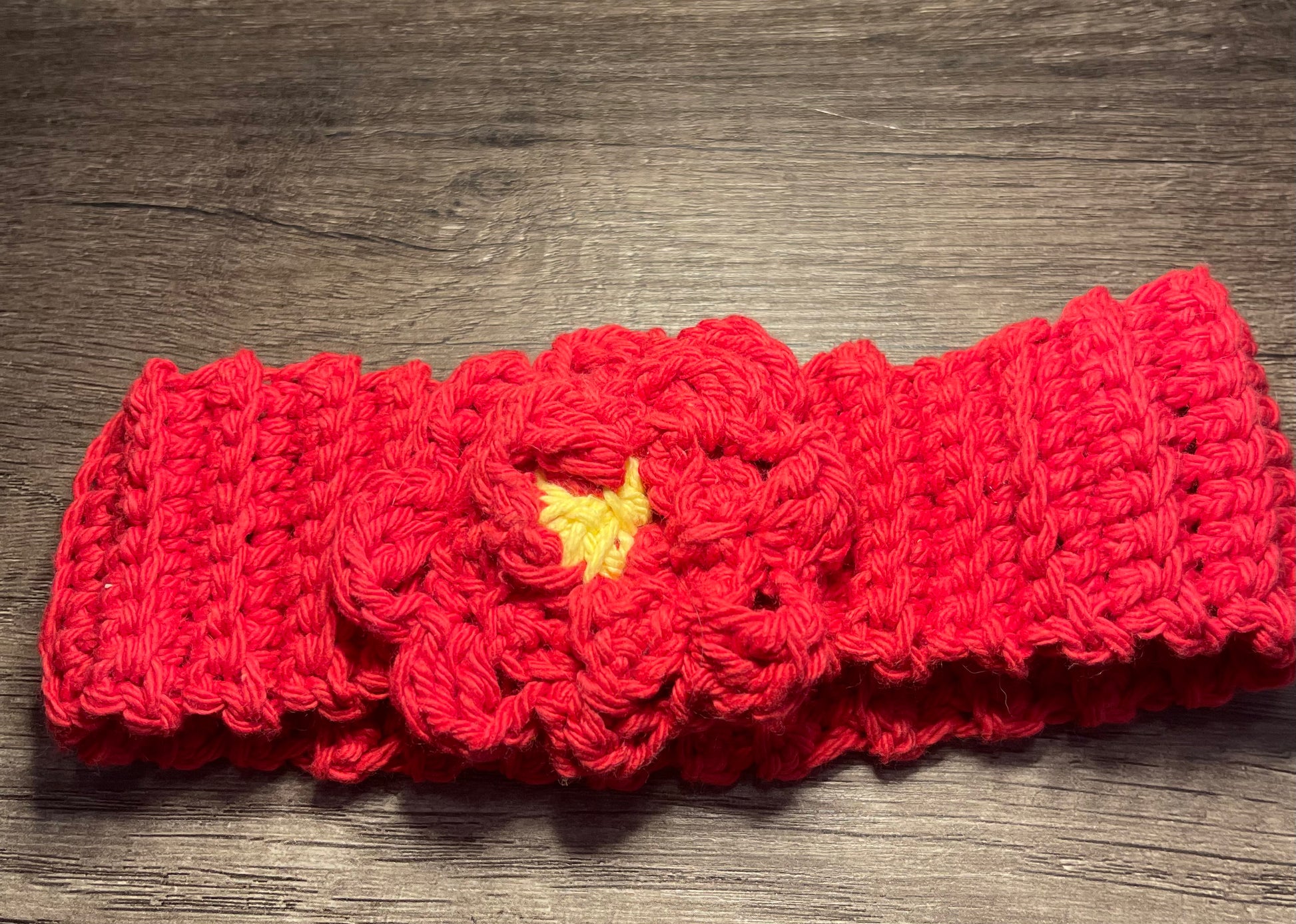 Handmade crochet Red yellow flower headband 100% cotton girls headband gift soft gentle headband 18” stretchable cotton