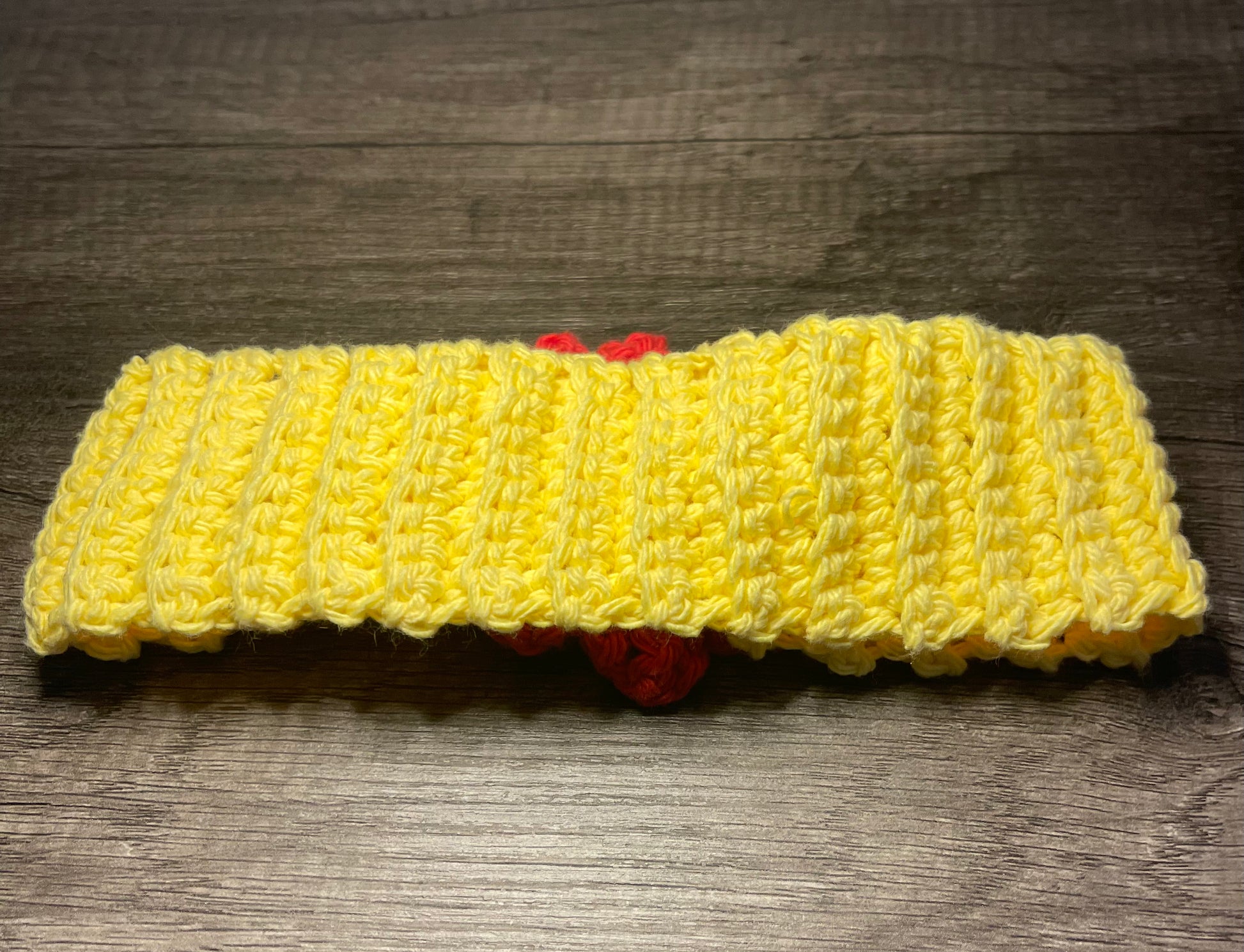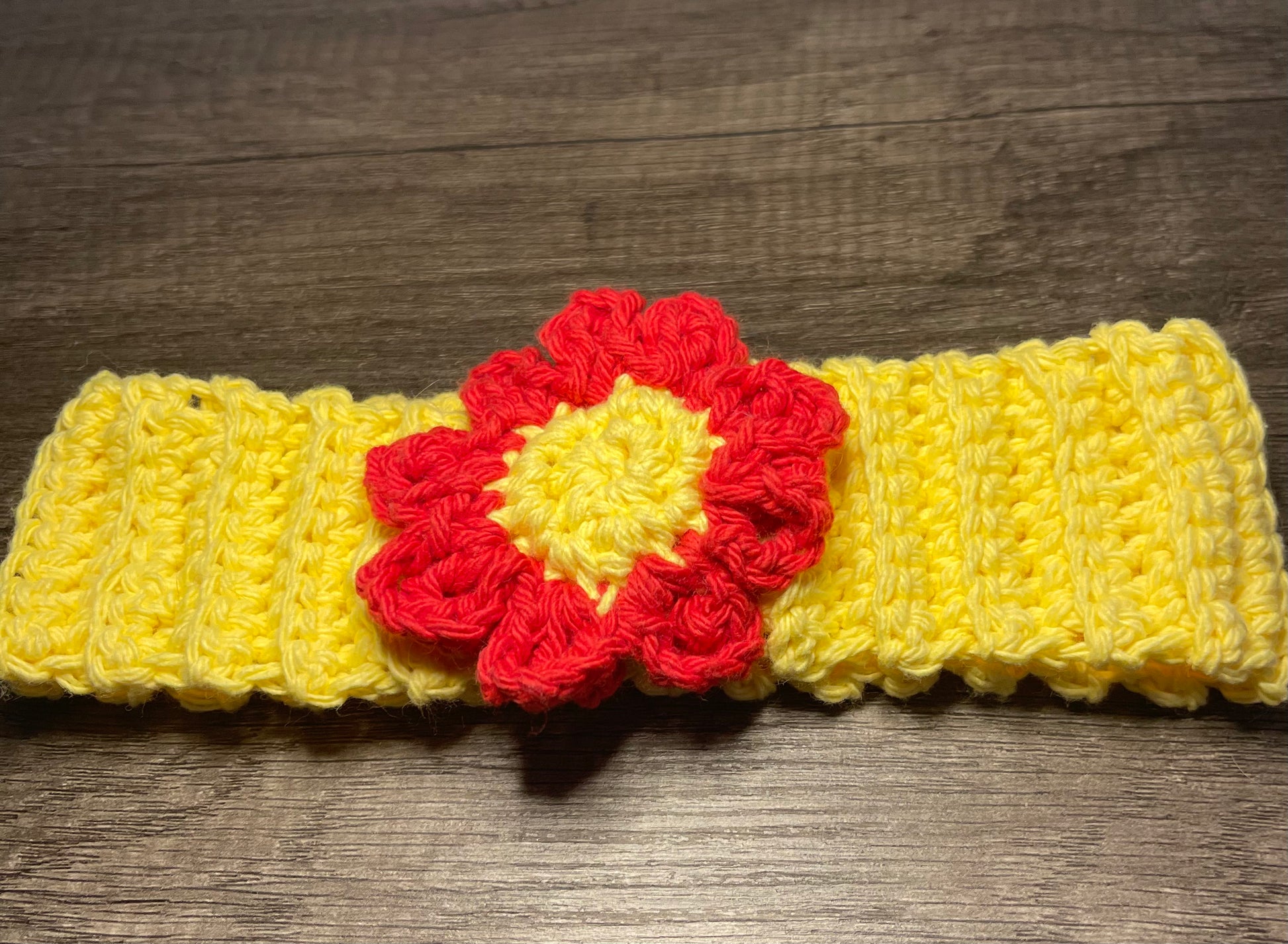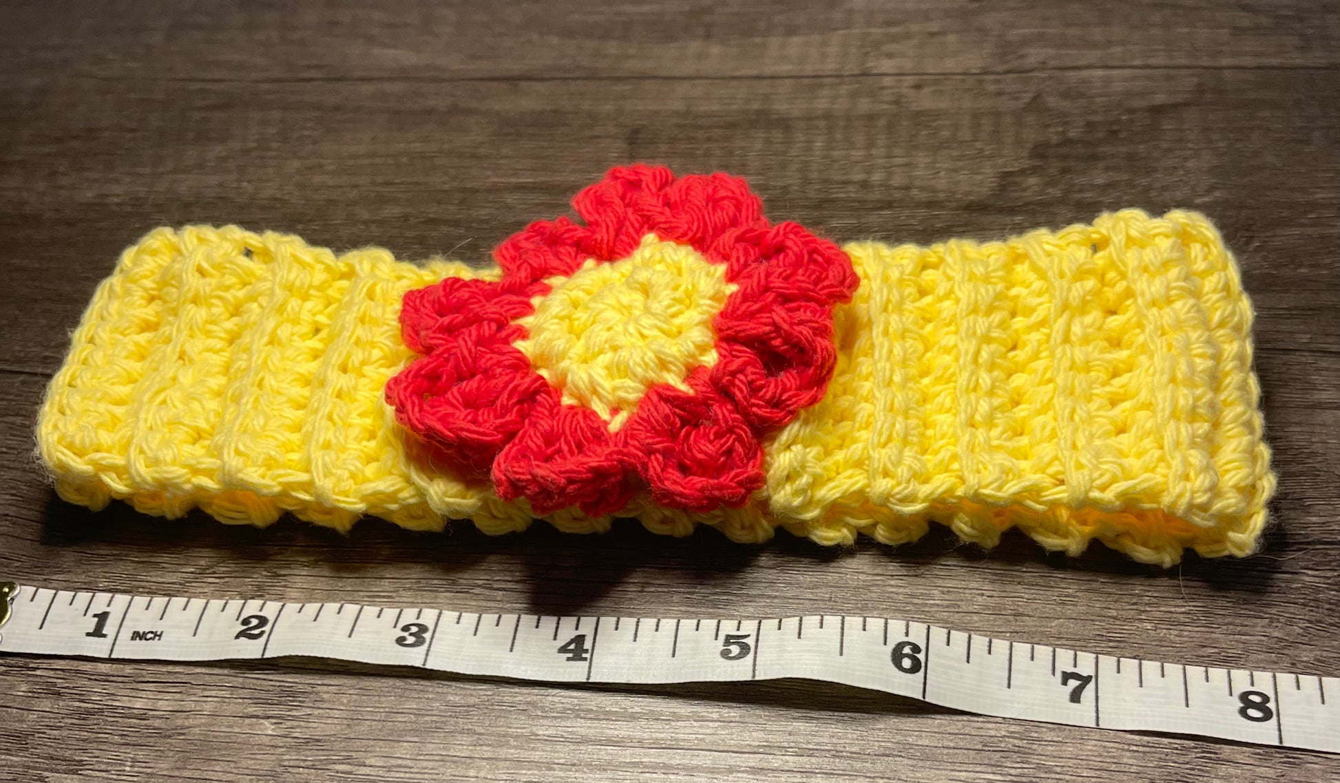 Handmade crochet yellow red flower headband 100% cotton girls headband gift soft gentle headband 18” stretchable cotton