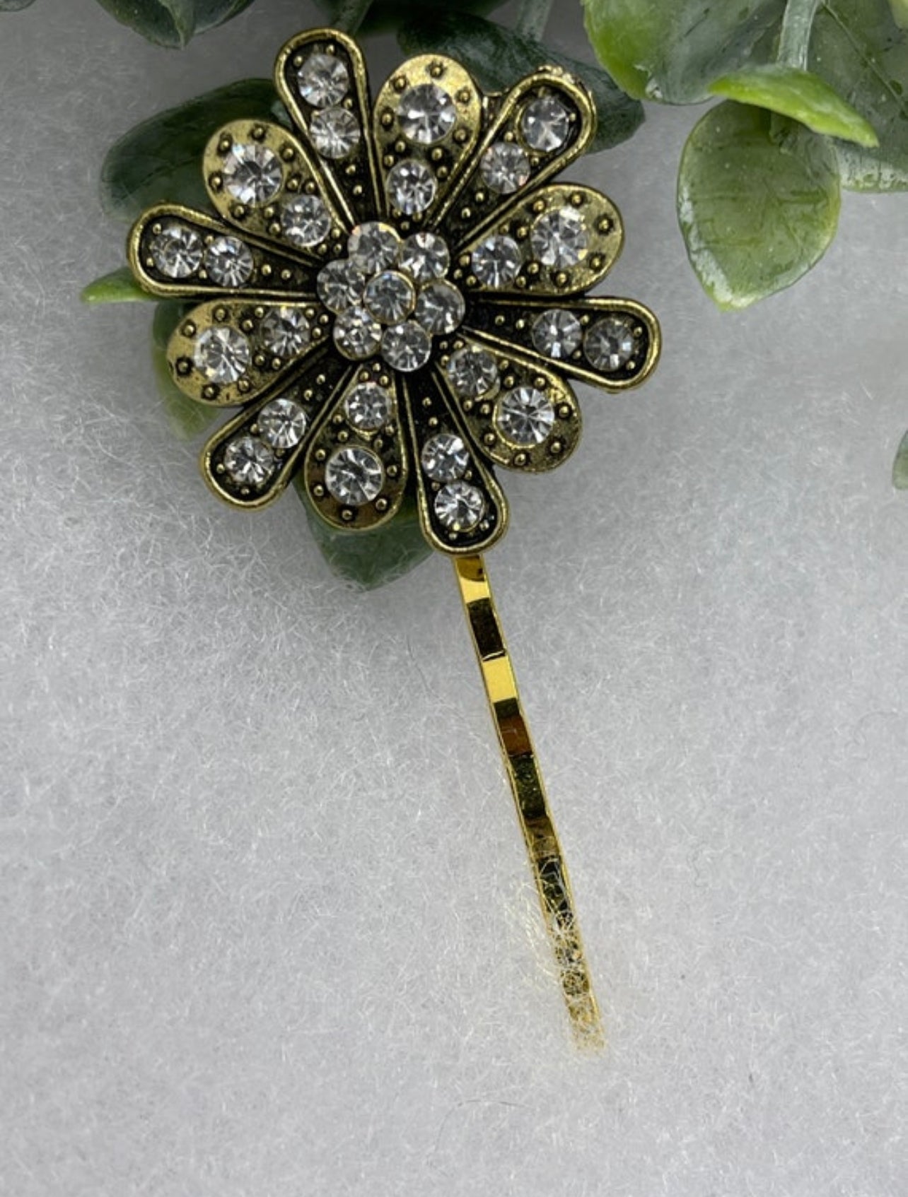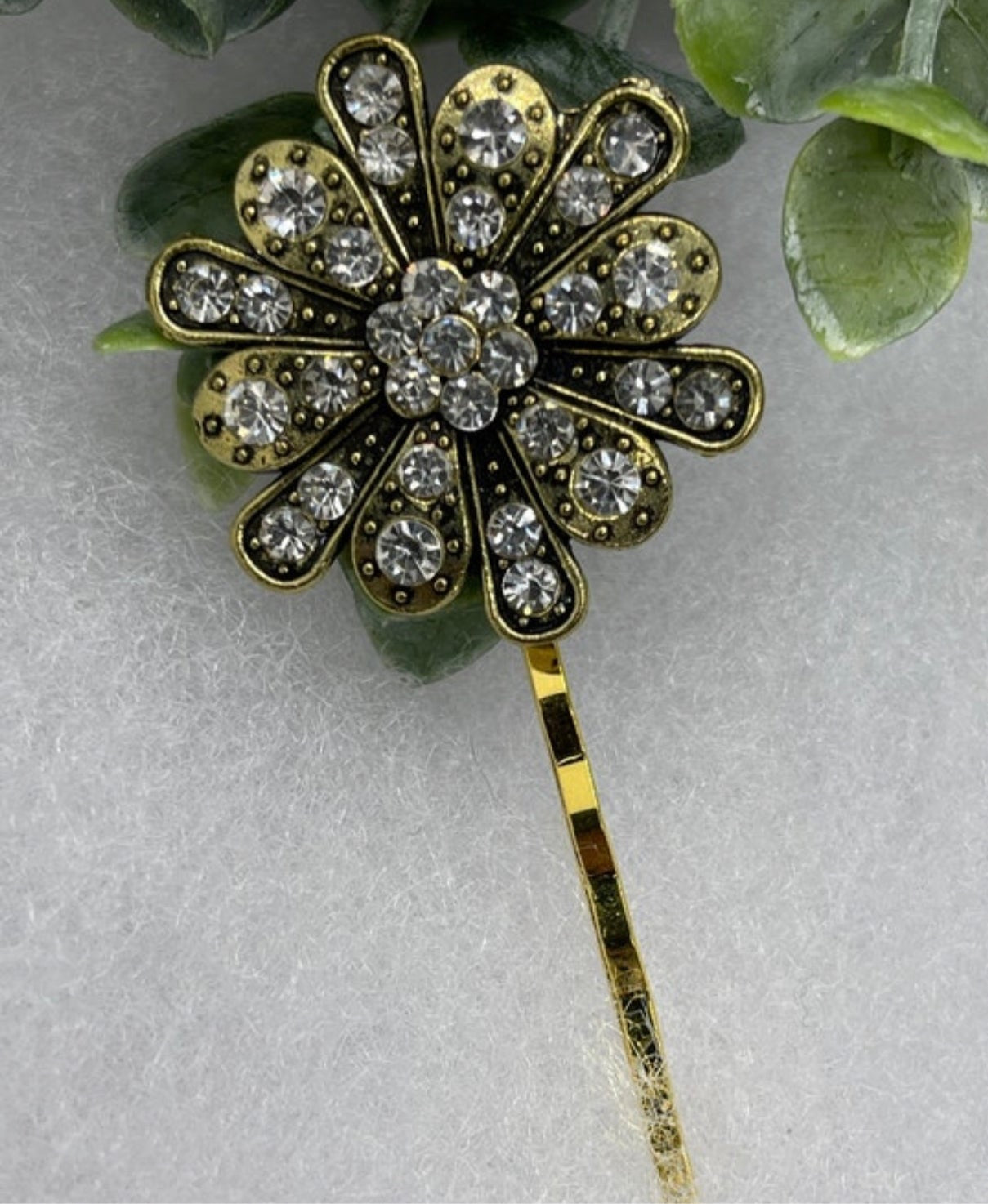 Gold crystal vintage antique style hair pin approximately 2.5” long Handmade hair accessory bridal wedding Retro