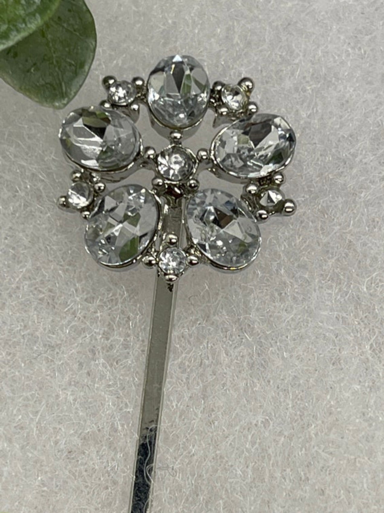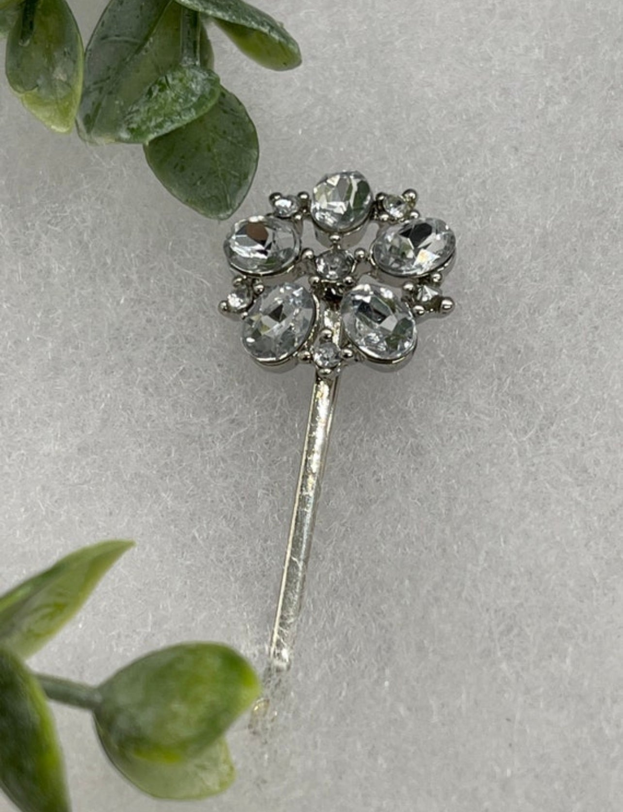 Silver crystal vintage antique style hair pin approximately 2.5” long Handmade hair accessory bridal wedding Retro