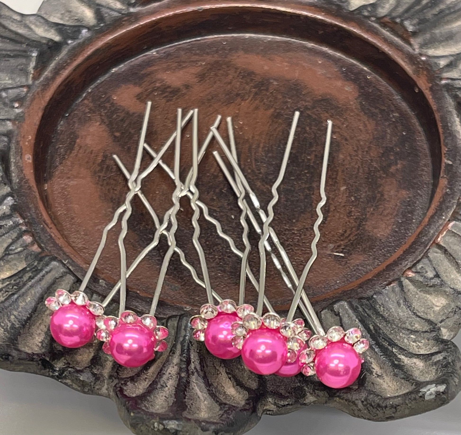 Hot pink Pearl crystal hair pins 6pc set hair accessory accessories Jewelry hair accessory wedding bridesmaids shower accessories