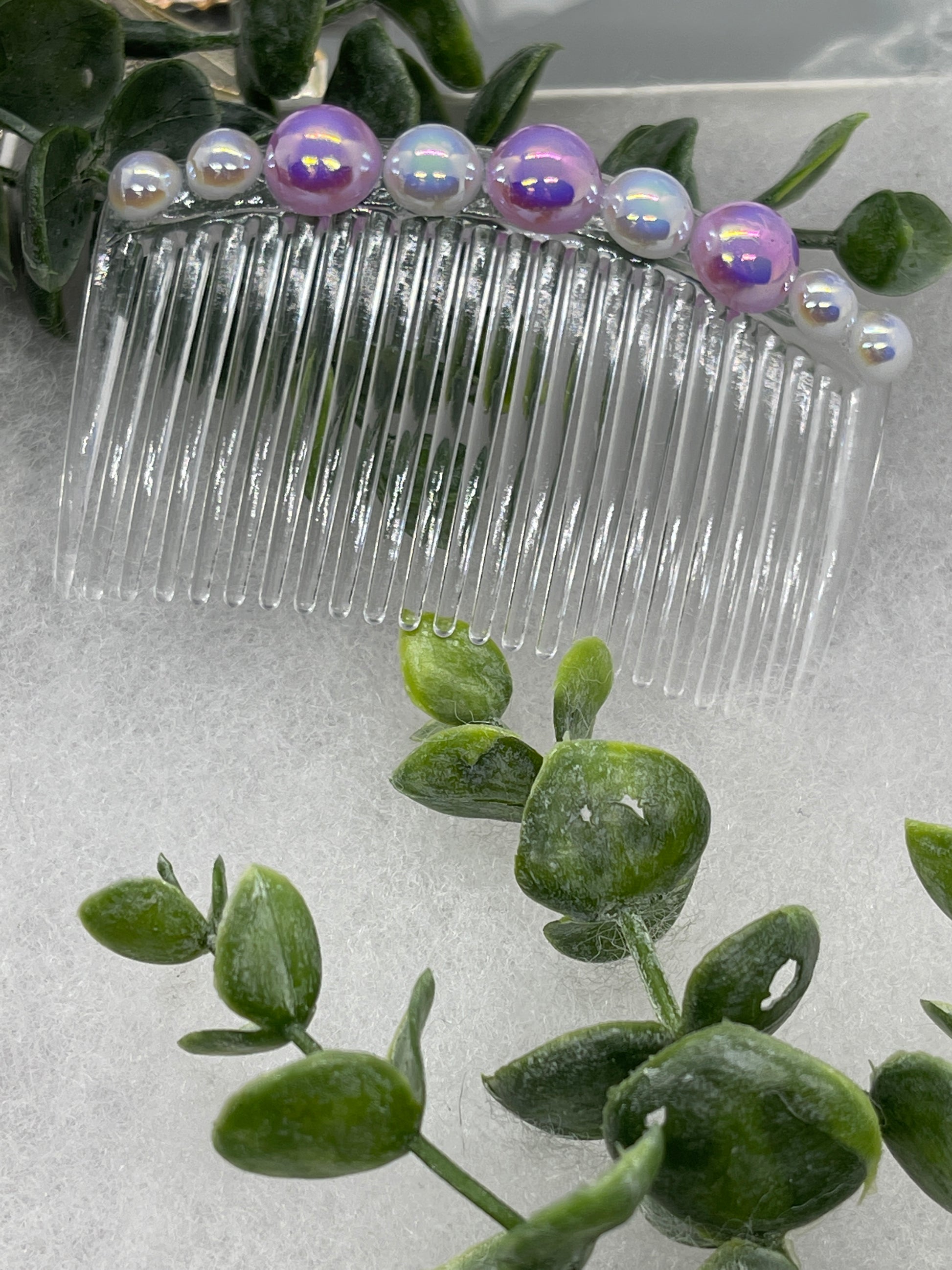 Iridescent Lavender white faux pearl side comb 3.5” clear plastic hair accessory bridal wedding Retro Bridal Party Prom Birthday gifts