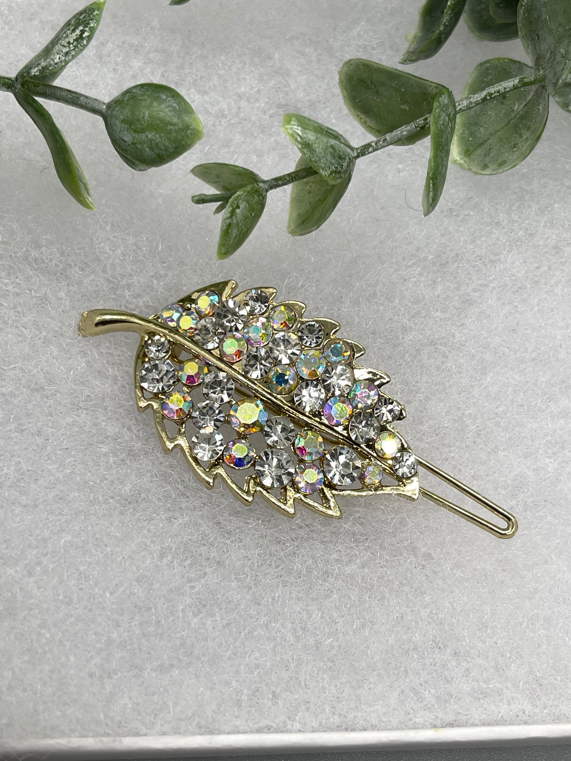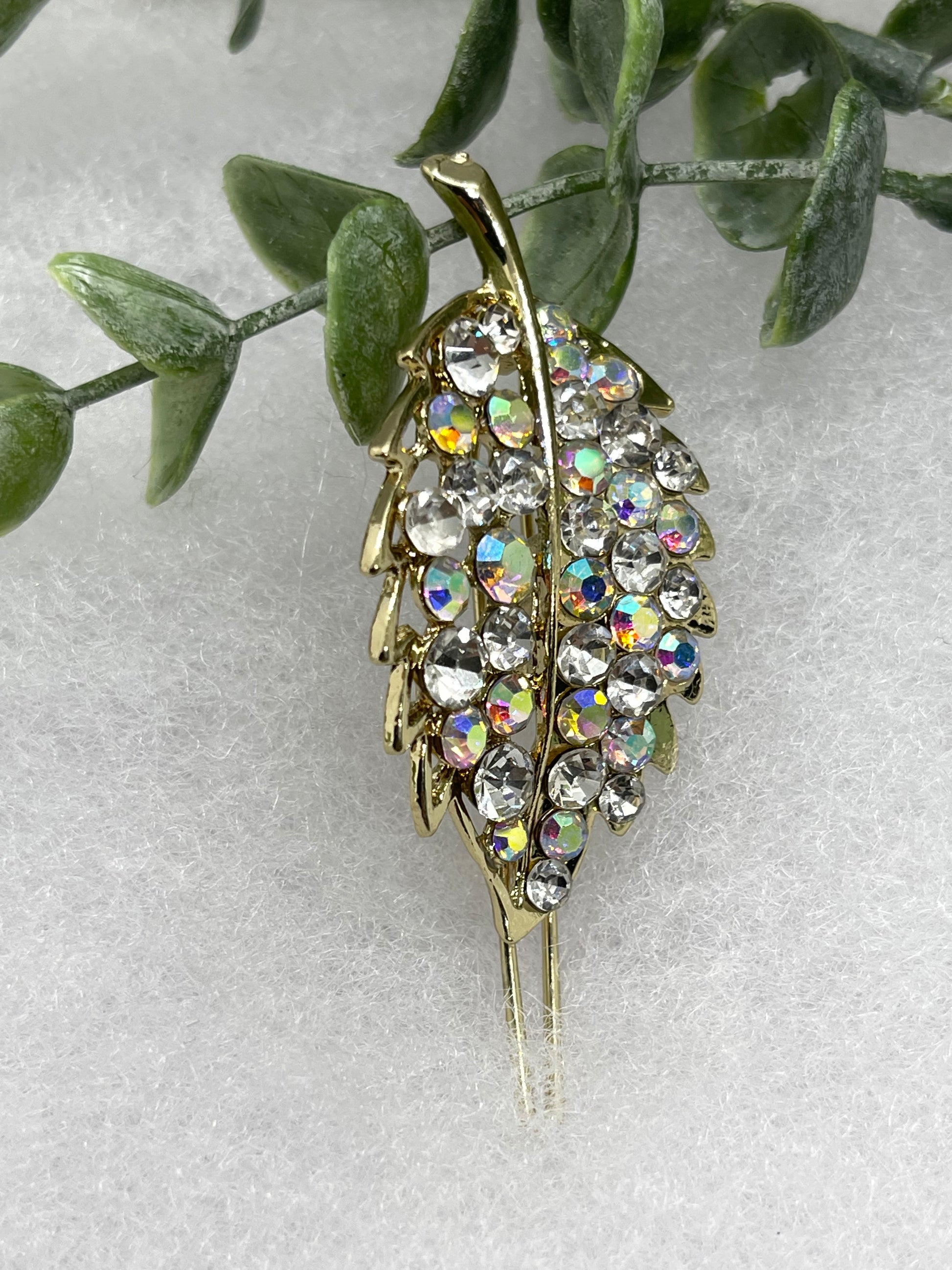 leaf silver Crystal Rhinestone hair clip approximately 3.0”Metal gold tone formal hair accessory gift wedding bridal engagement