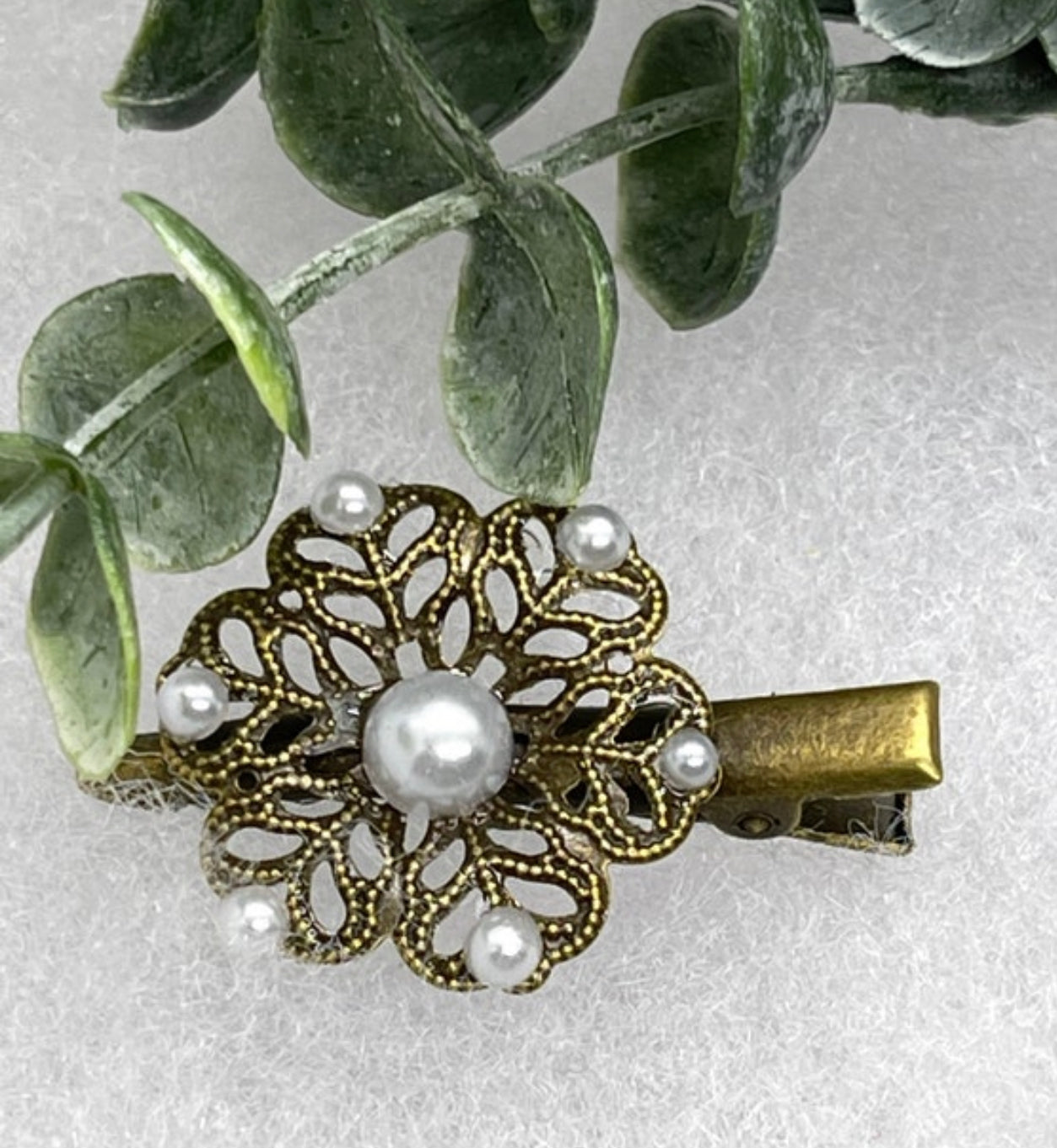 White Pearl Flower vintage antique style alligator clip approximately 2.0” long hair accessory bridal wedding Retro