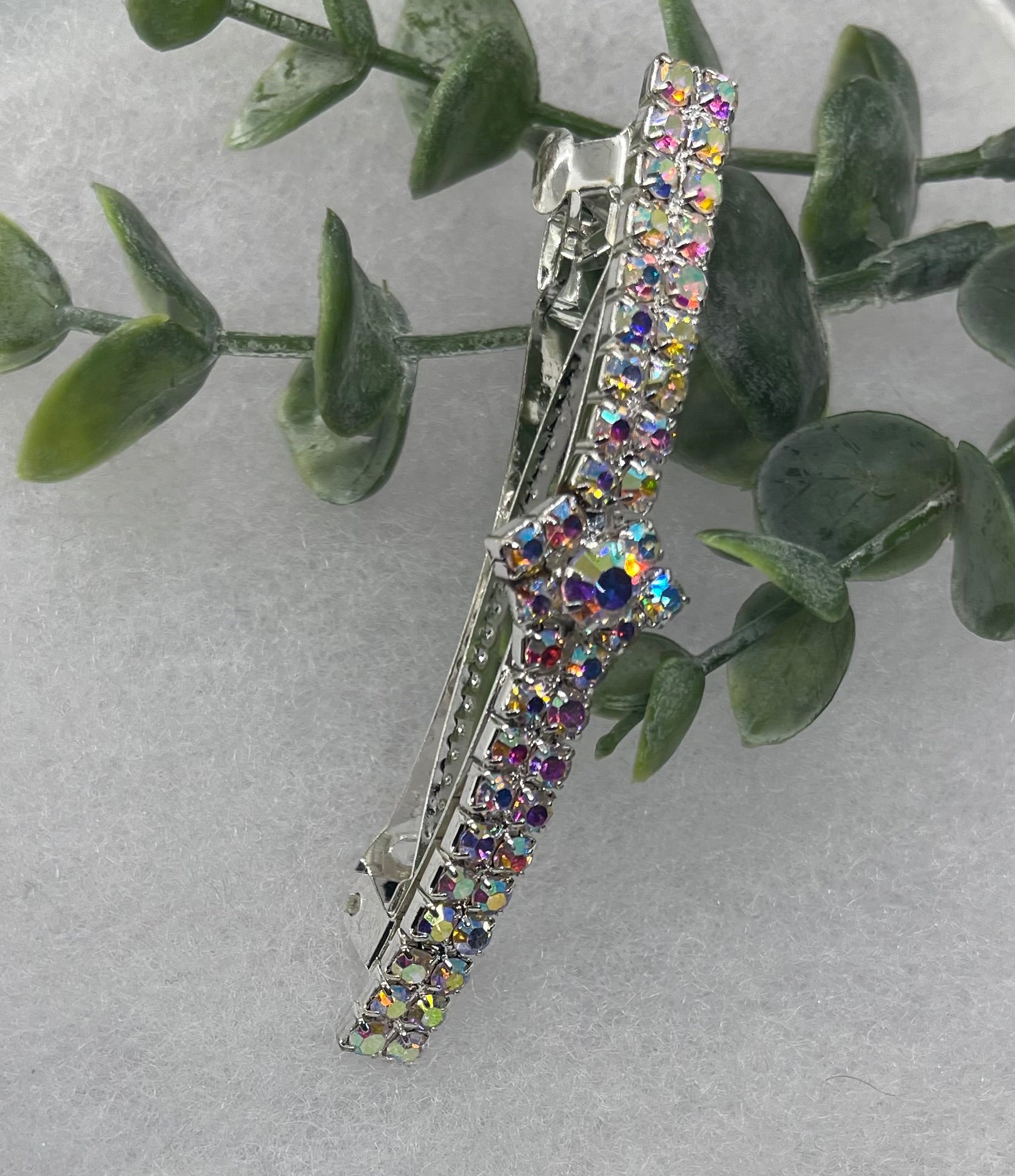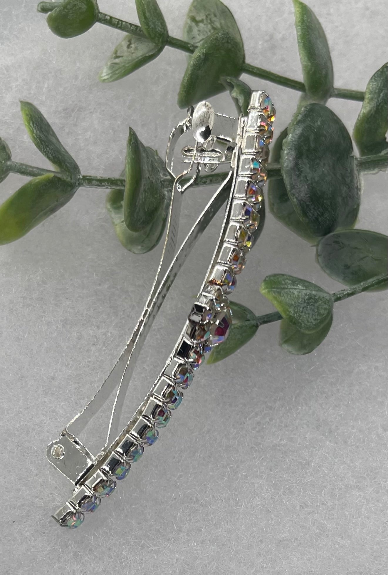 Iridescent Crystal Rhinestone Barrette approximately 3.0”Metal silver tone formal hair accessory gift wedding bridal shower accessories