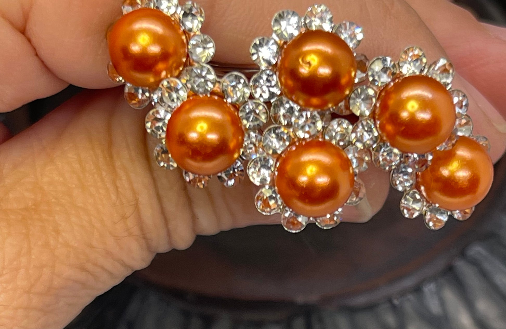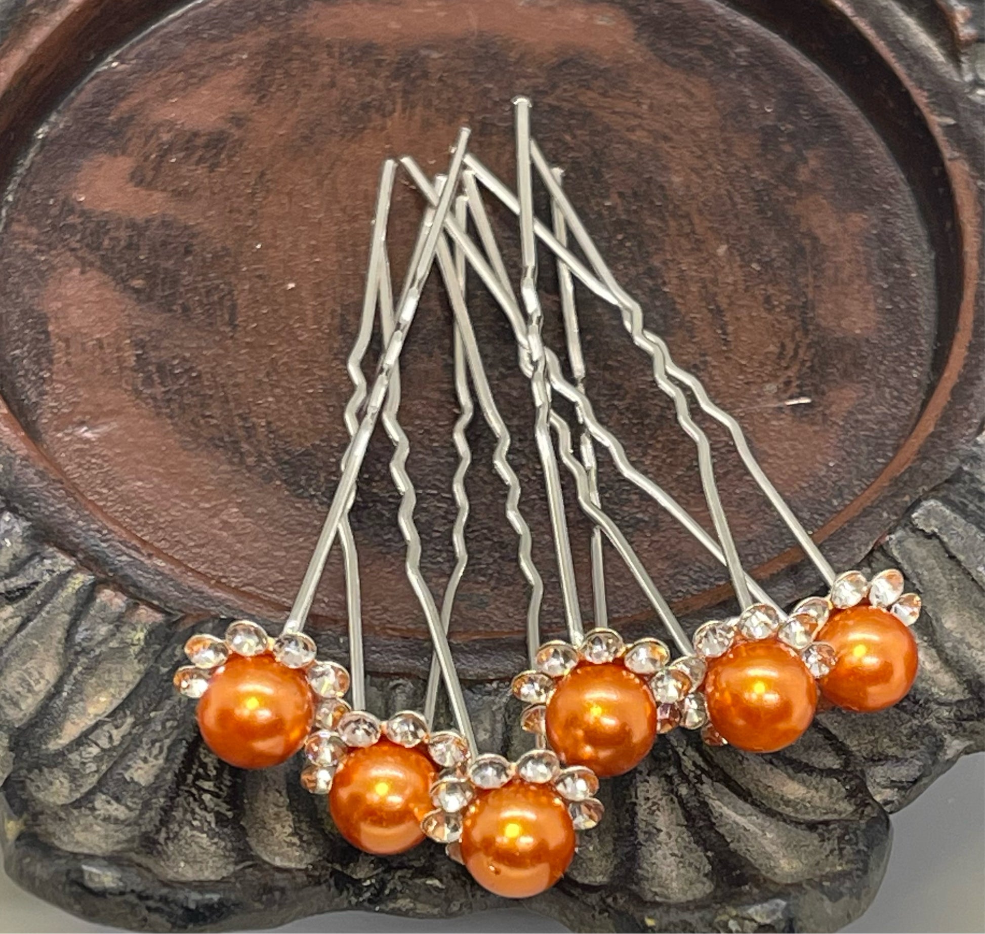 Orange Pearl crystal hair pins 6pc set hair accessory accessories Jewelry hair accessory wedding bridesmaids shower accessories