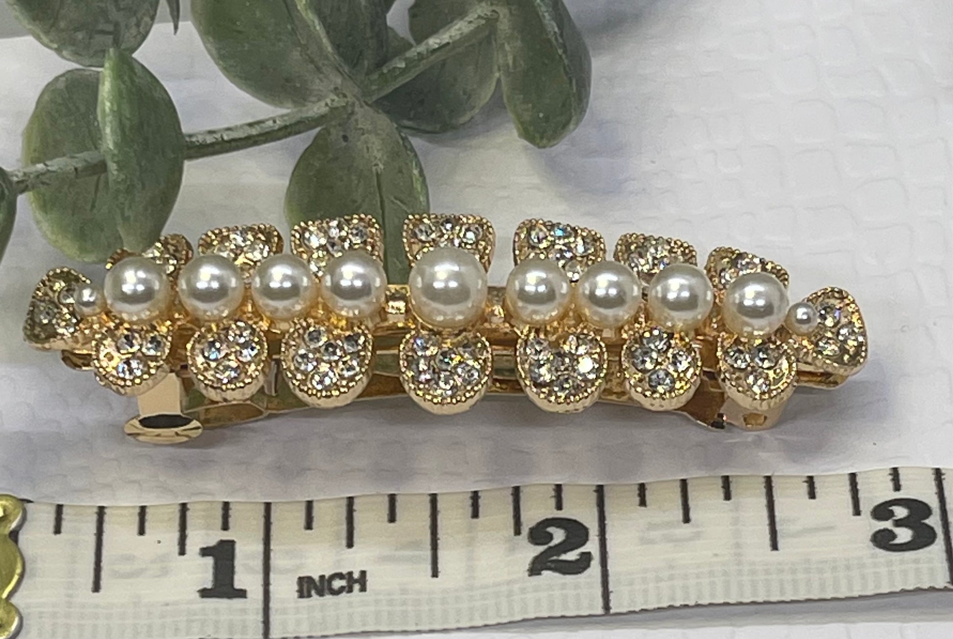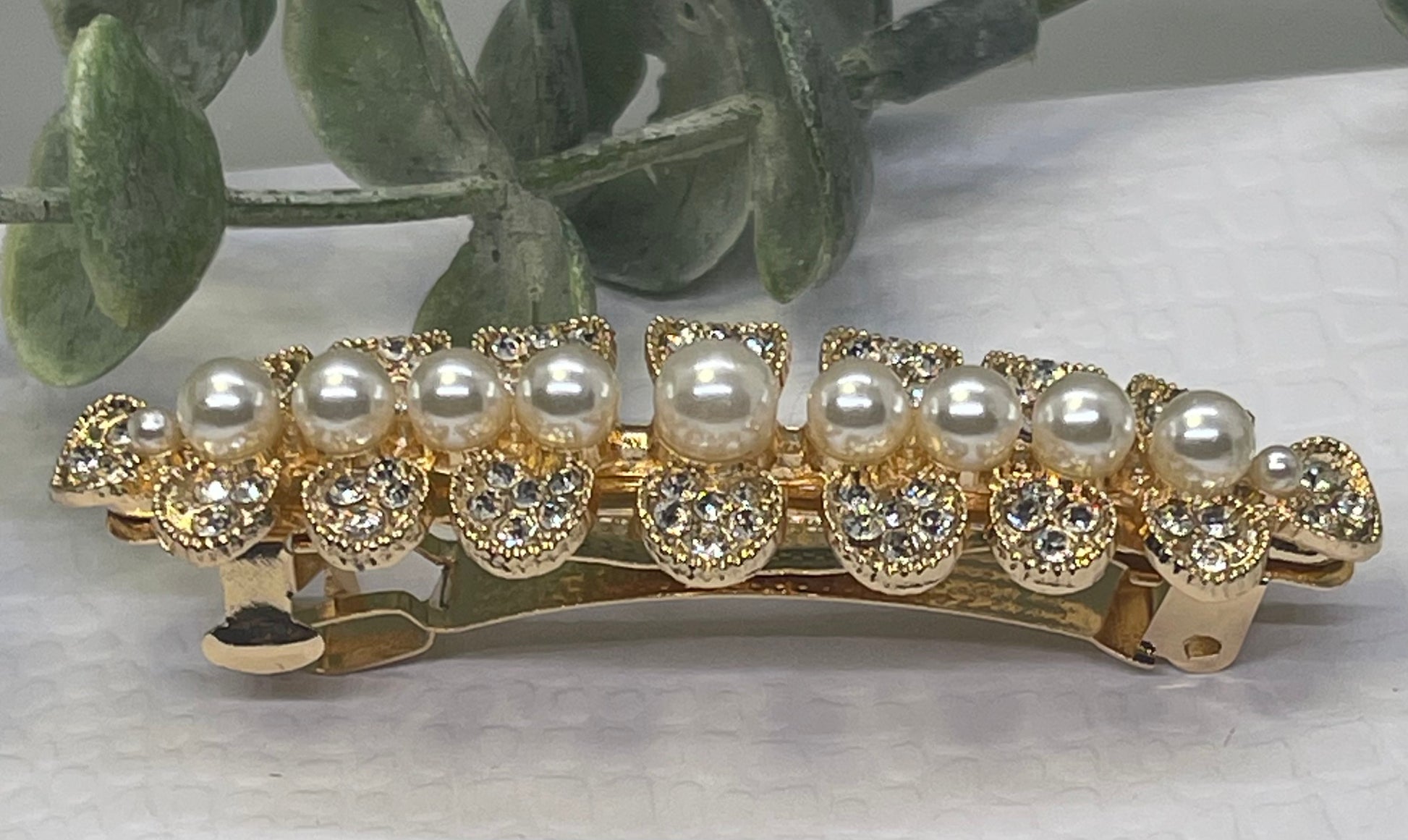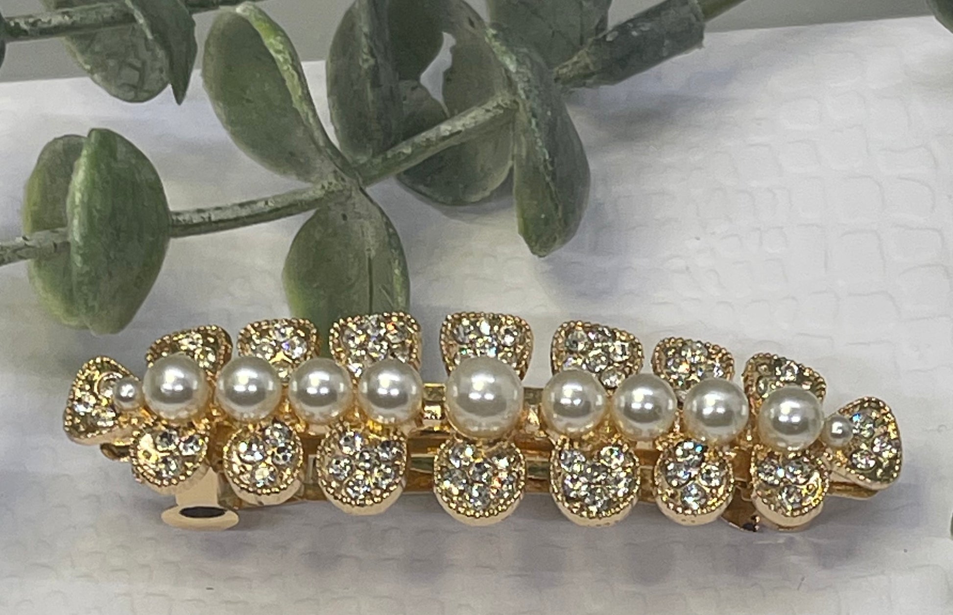 Pearl Crystal rhinestone barrette approximately 3.0” gold tone formal hair accessories gift wedding bridesmaid