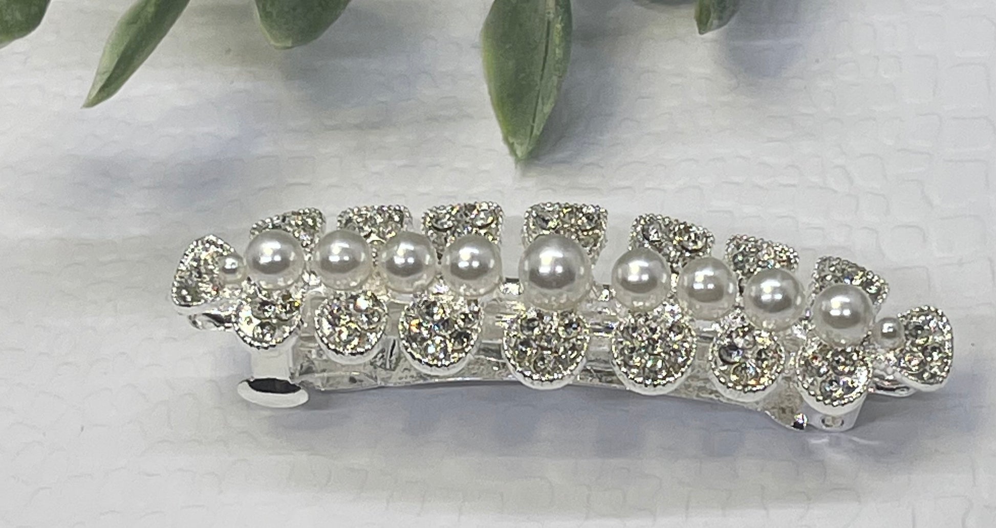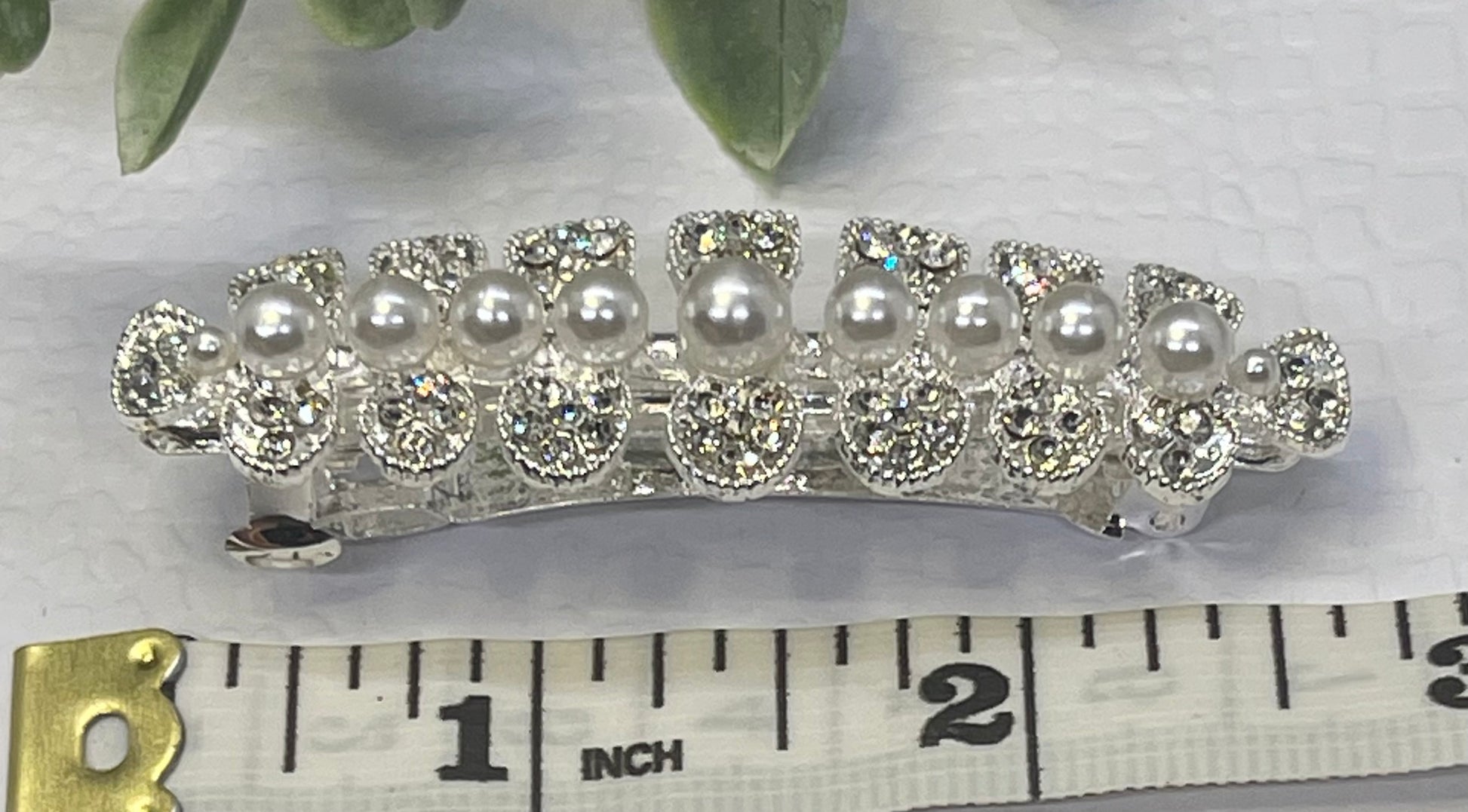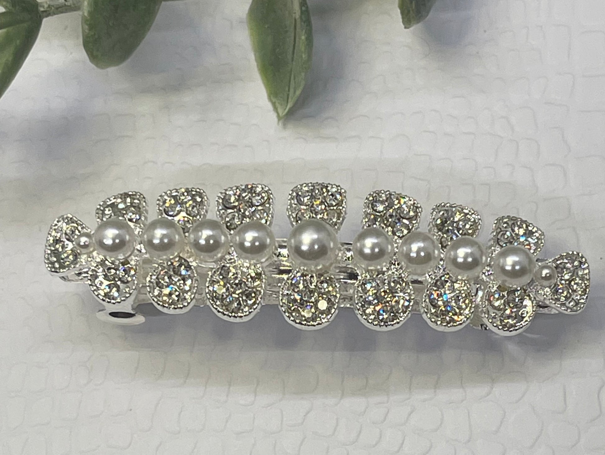 Pearl Crystal rhinestone barrette approximately 3.0” silver tone formal hair accessories gift wedding bridesmaid